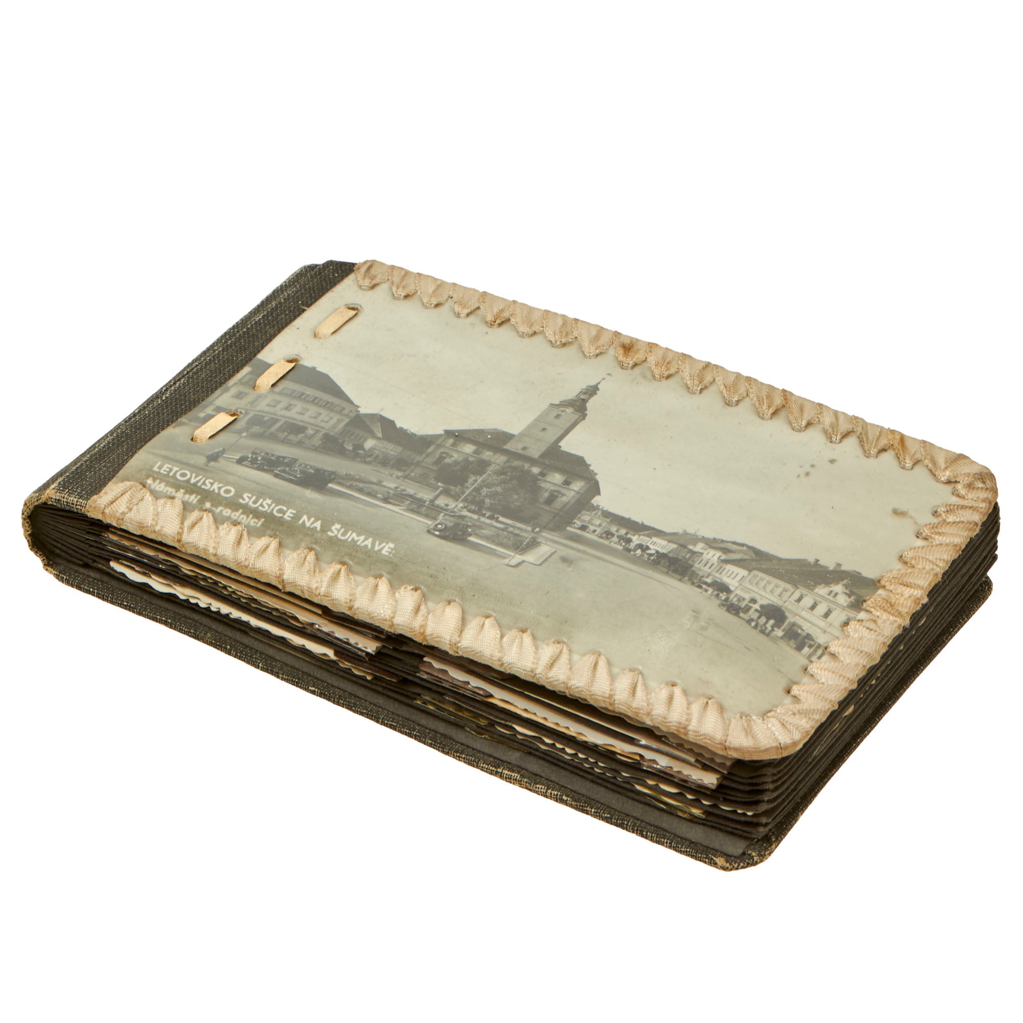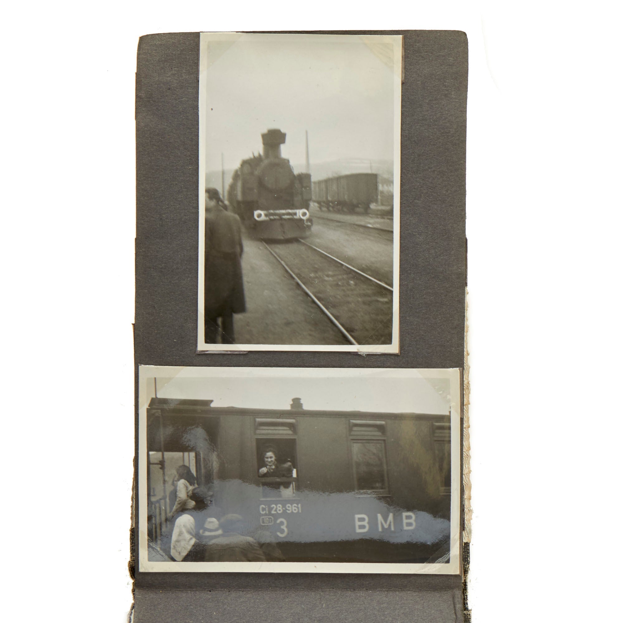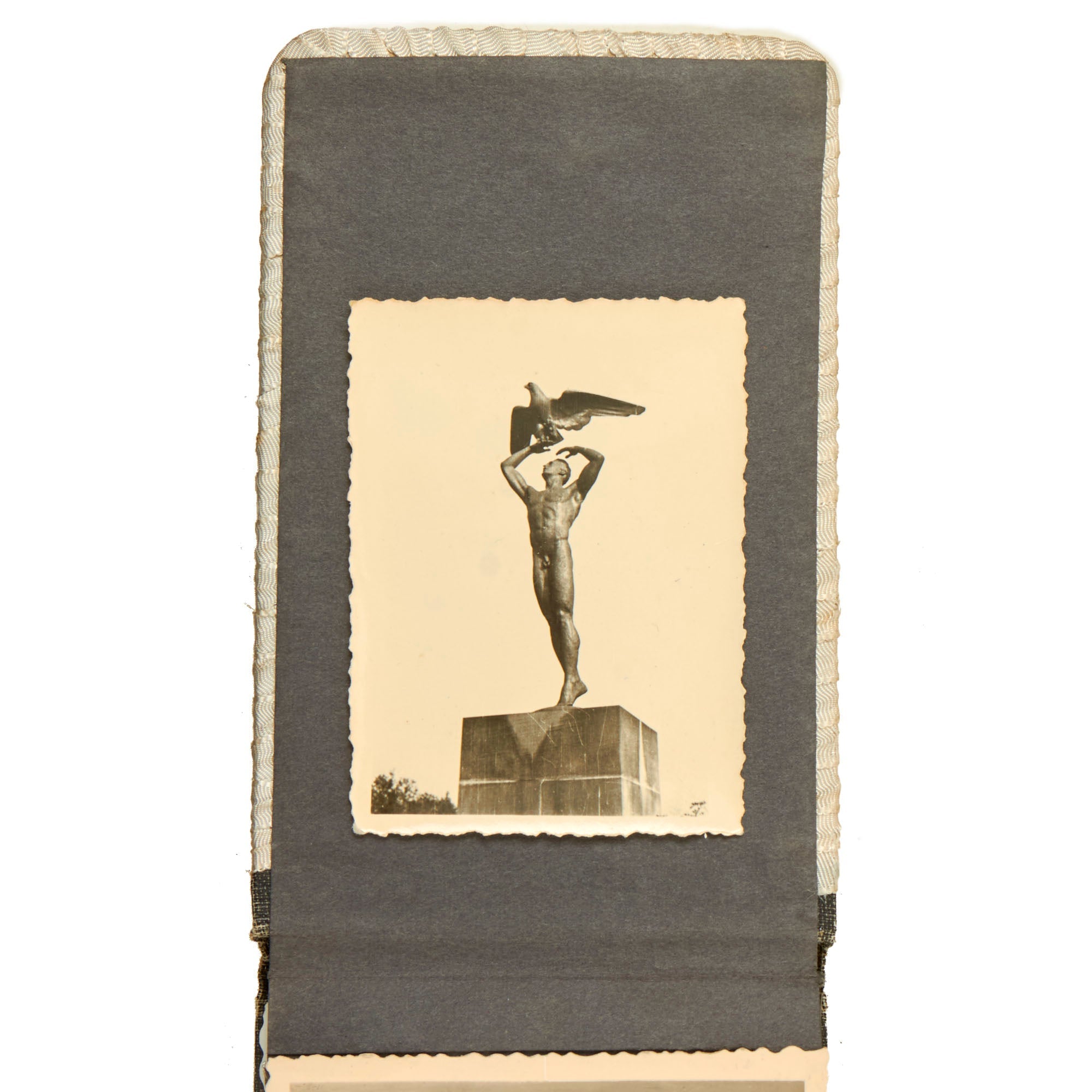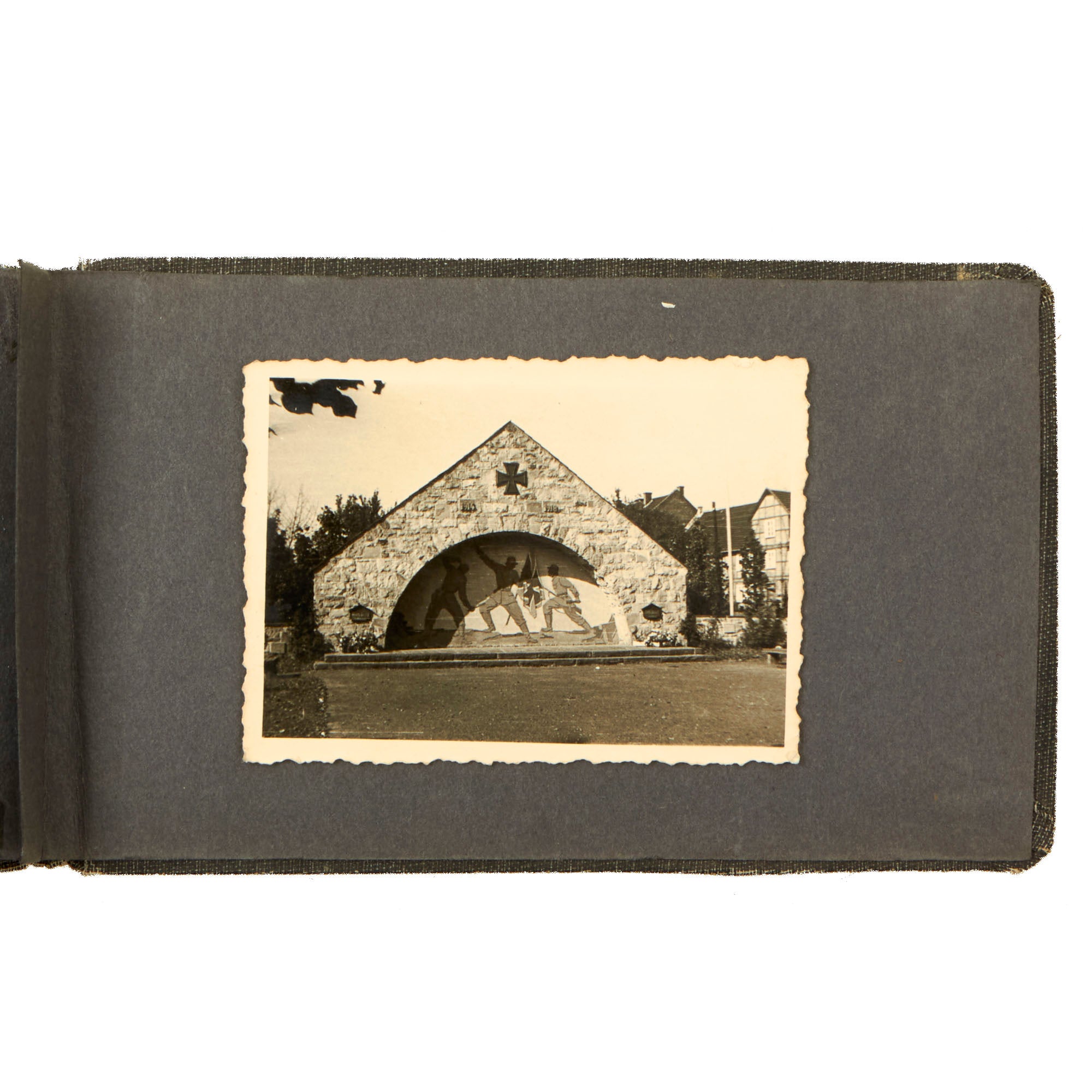Original Item: One-Of-A-Kind. This is a wonderful personal photo album from a Leader in the HJ National Youth Organization, showing pictures from his time in service, as well as many pictures of the places he visited. The album is covered with black fabric, however it has had a piece of plastic laced to the front, under which is a picture of the Czech resort LETOVISKO SUŠICE NA ŠUMAVĚ (Sušice resort in the Šumava Mountains). It is a relatively small album compared to most we handle, measuring approximately 6" x 3 5/8", and is a bit worn around the edge, so this is not an album that spent its live in a closet.