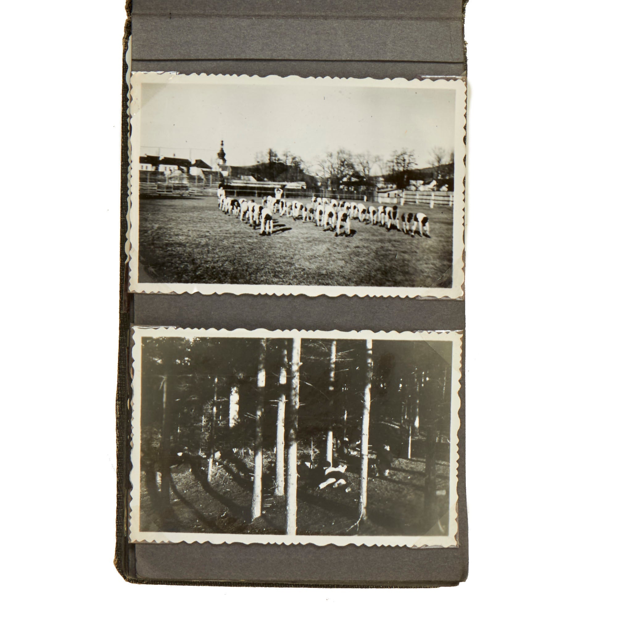 A total of 39 photographs fill this album, making it a treasure-trove of images taken during youth sporting activities during the war. These are contained on 10 pages, and all of the photos are held in place with period corner tabs or adhesive, some of which has failed over time. We can see pictures of HJ members marching, meetings, and such in the early part of the album, while the later pages are more personal and landscape photos.