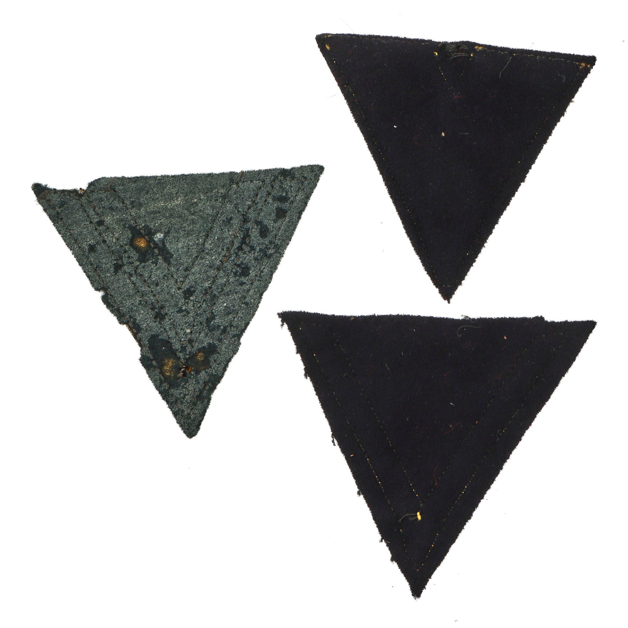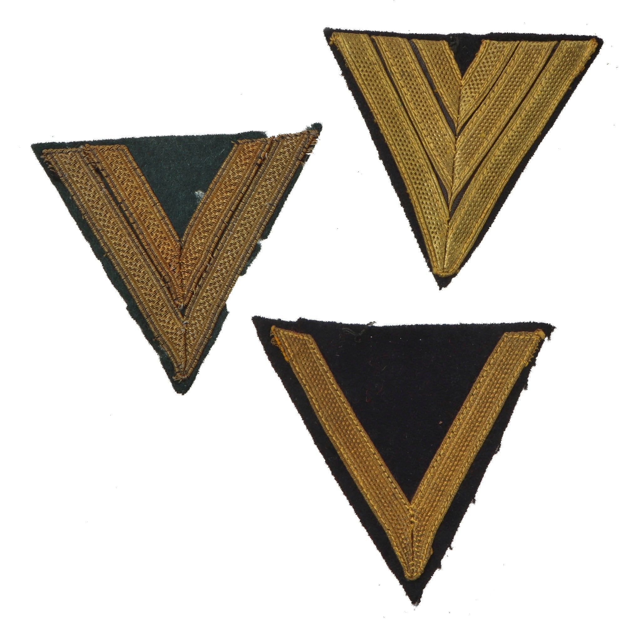 - One German WWII Kriegsmarine Navy Hauptgefreiter Sleeve Triple Chevron Patch. This is made from the correct gold tresse on a navy blue background for the Navy Blue uniform.