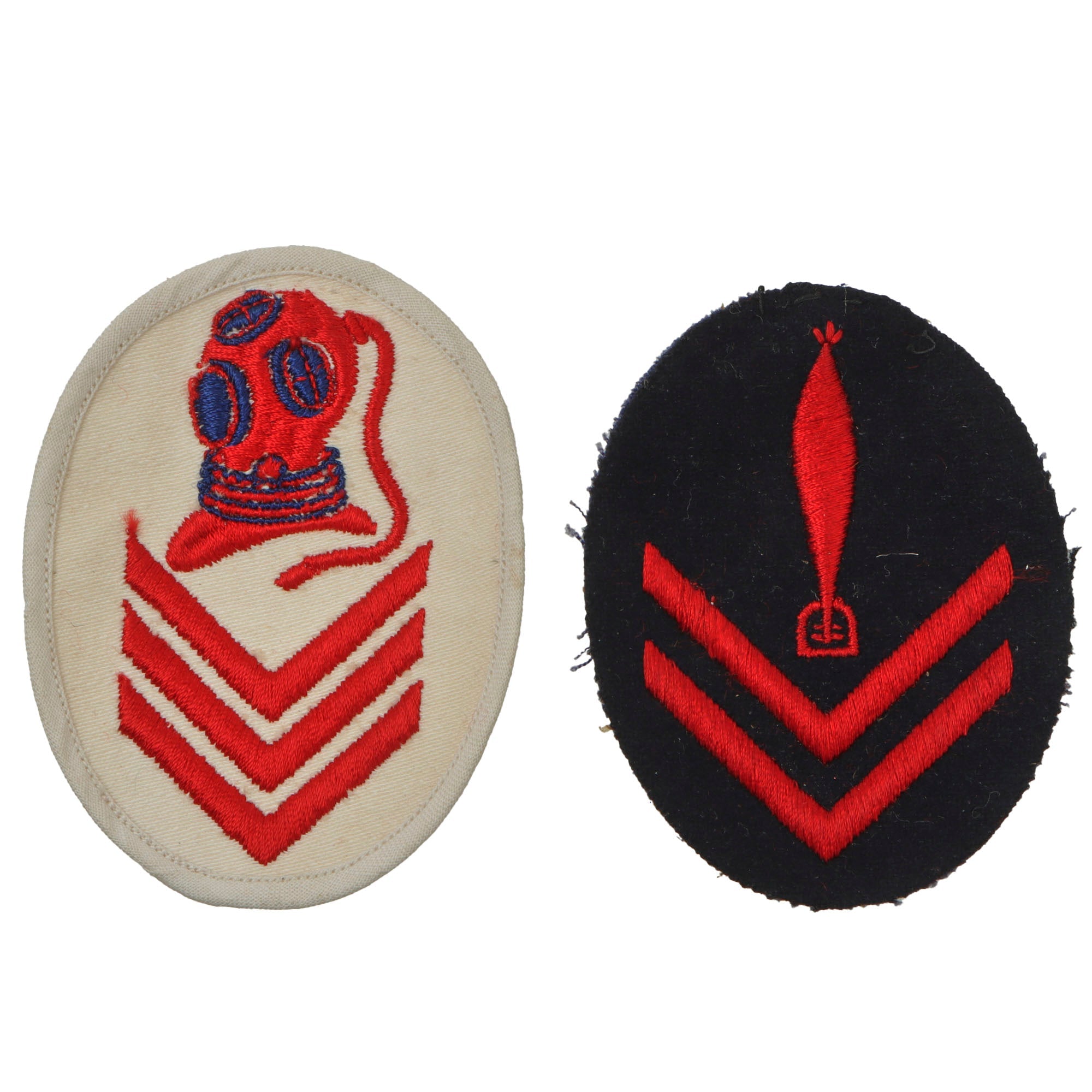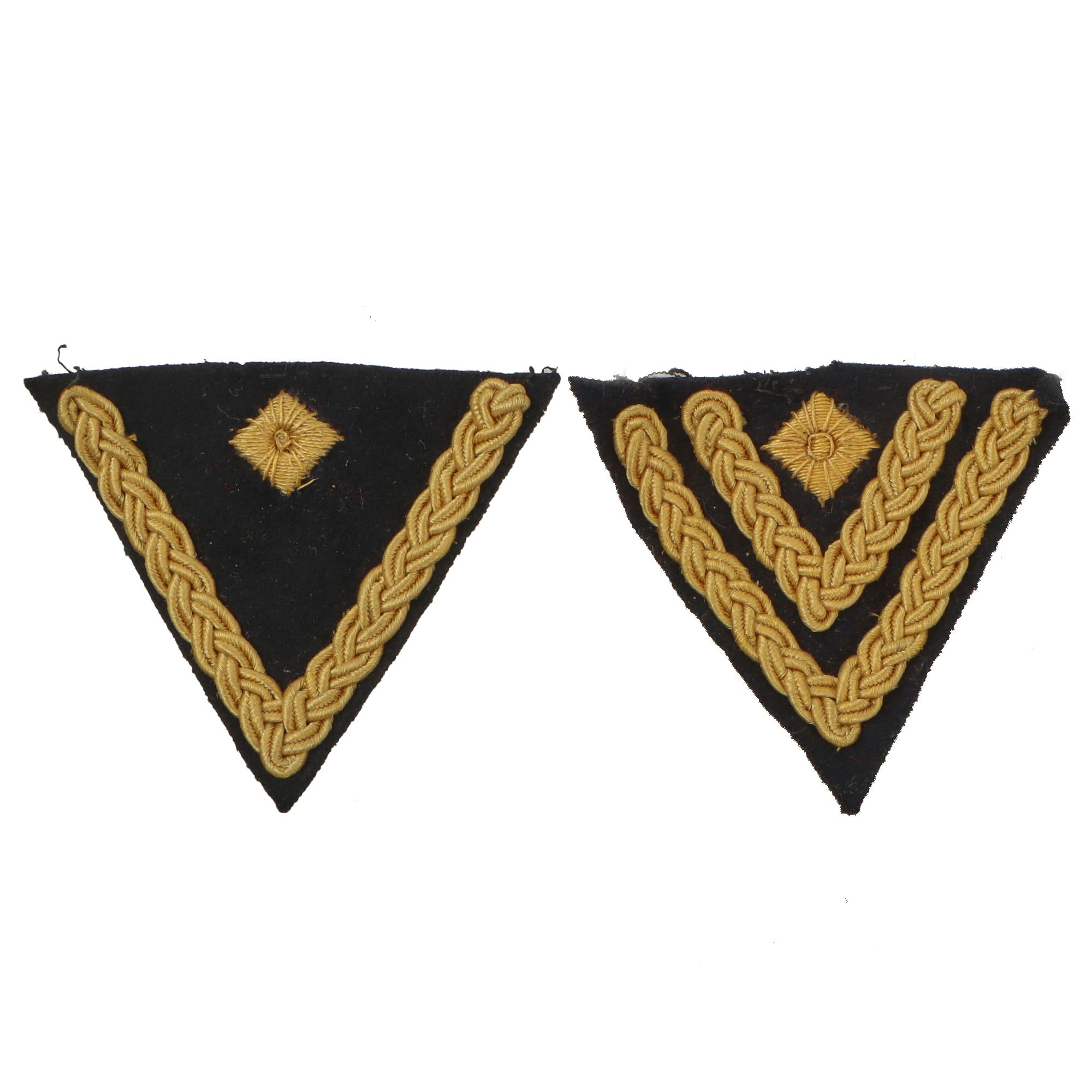 - One German WWII Kriegsmarine Navy Oberstabsgefreiter Sleeve Double Chevron Patch. This is made from the correct gold tresse around a single pip on a navy blue background for the Navy Blue uniform.