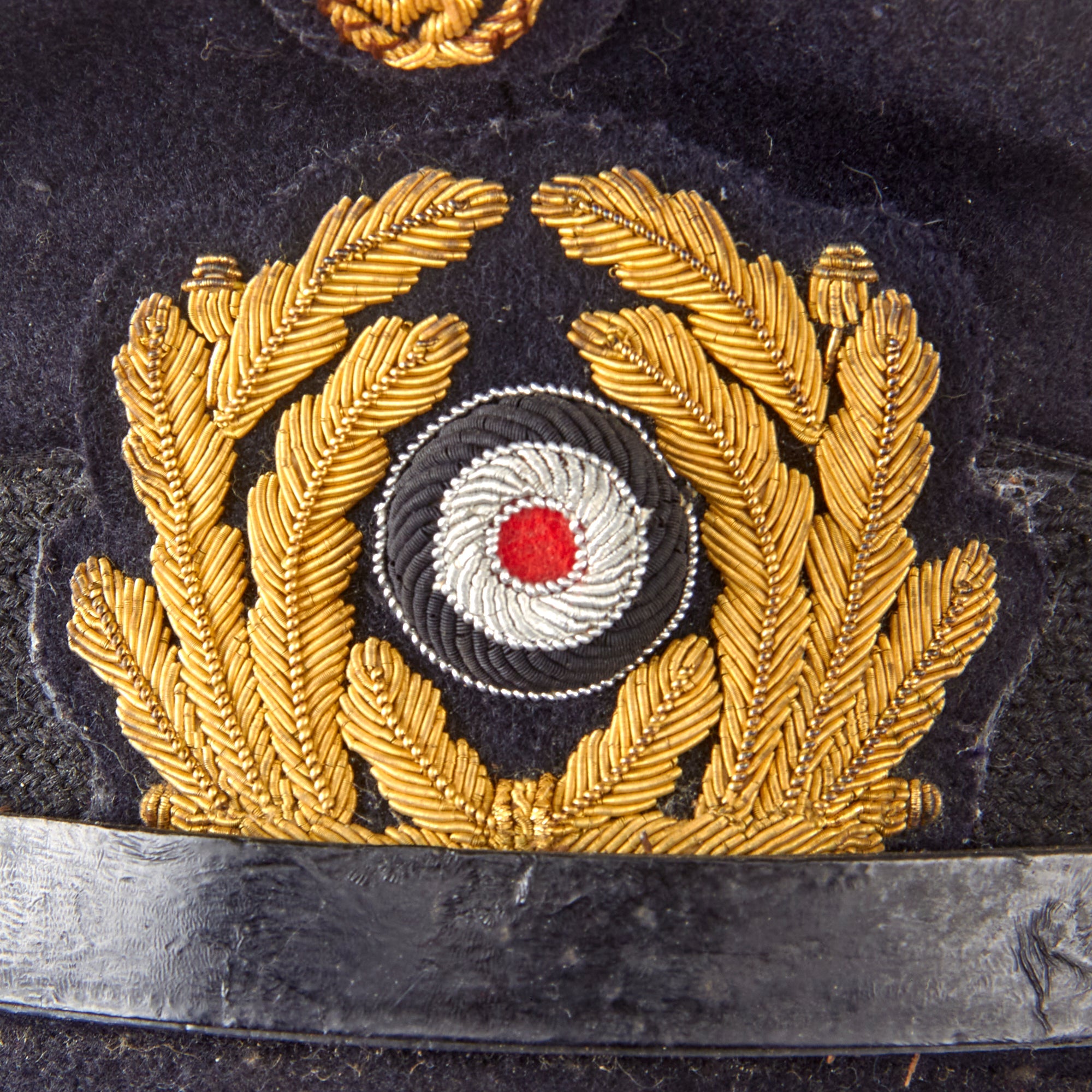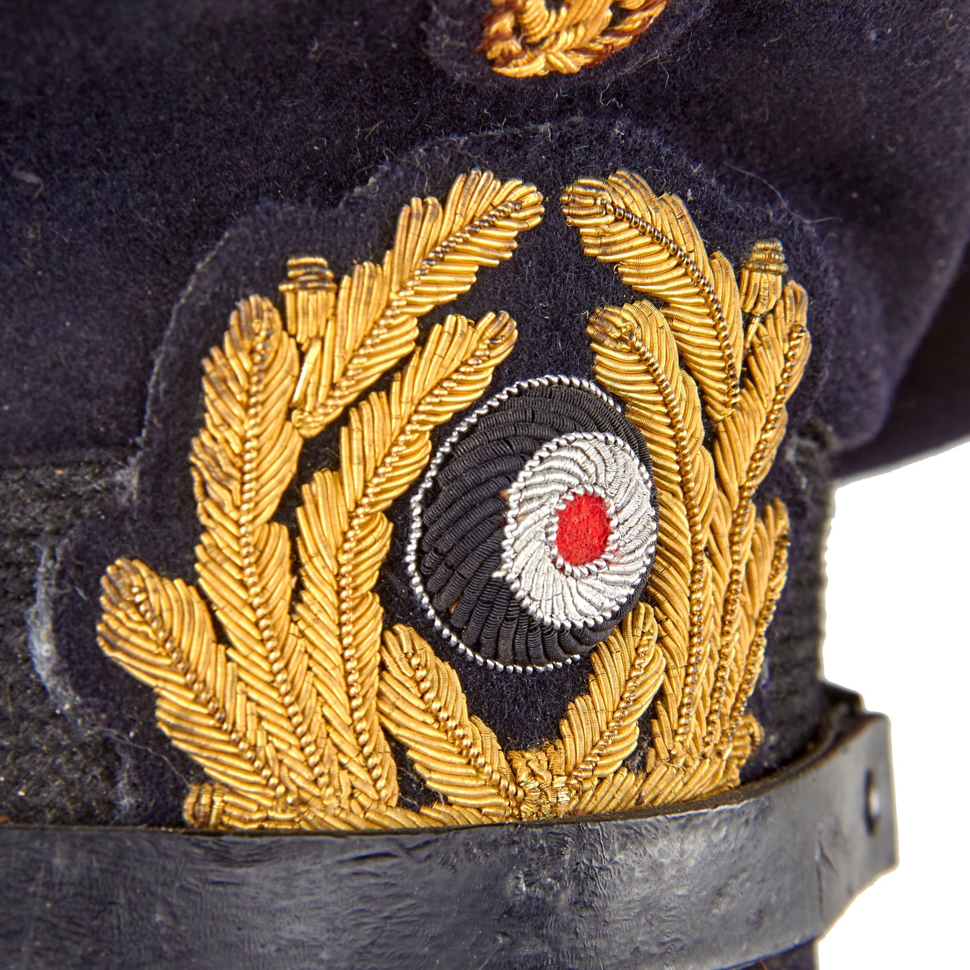 The visor cap (Schirmmütze) was an important part of the headgear worn by German uniformed military, civil, paramilitary and political organizations during the Third Reich. This was the standard cloth headgear worn as a part of the service uniform. Visor caps were worn outdoors as well as indoors, and were often required to be worn by all personnel on duty. Visor caps were made in versions specific to each organization and were often further differentiated through the use of insignia, colored piping, or style of chin cord, to indicate rank, role or branch. The insignia used on these caps ranged from simple stamped metal emblems, to elaborate hand embroidery. Visor caps were issued to enlisted soldiers and NCOs in the military and in some other organizations. Officers had to purchase their own hats, and lower ranks could choose to purchase caps that were of a higher quality than the rather basic, issue examples. The private purchase caps were generally made in very high quality, with fine materials. A wide variety of fabrics were used, from Trikot and doeskin, to heavy wool, or even lightweight white fabric for summer wear. In the military, issue of these caps was generally suspended shortly after the outbreak of the war, but they continued to be worn by some troops until the end of the war.