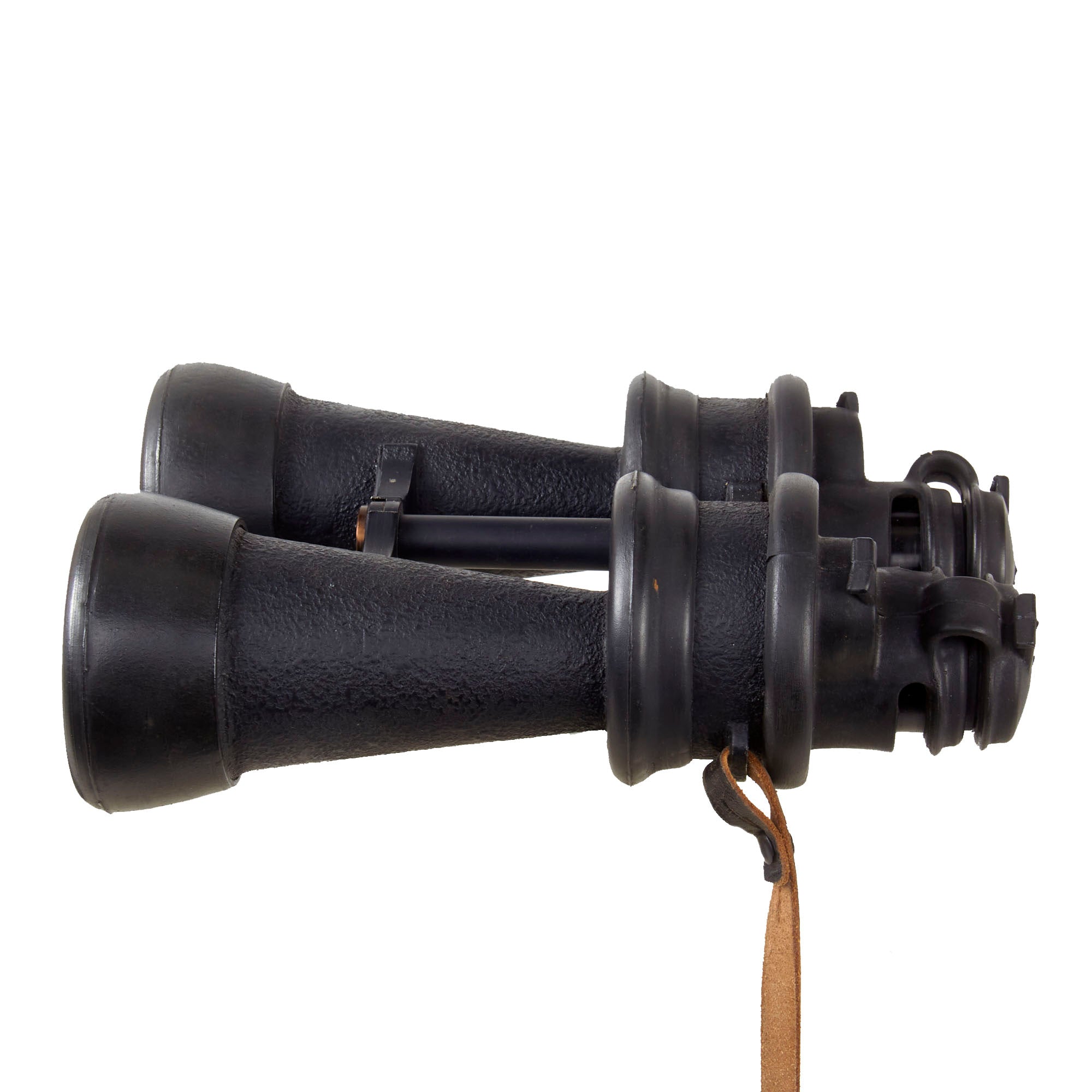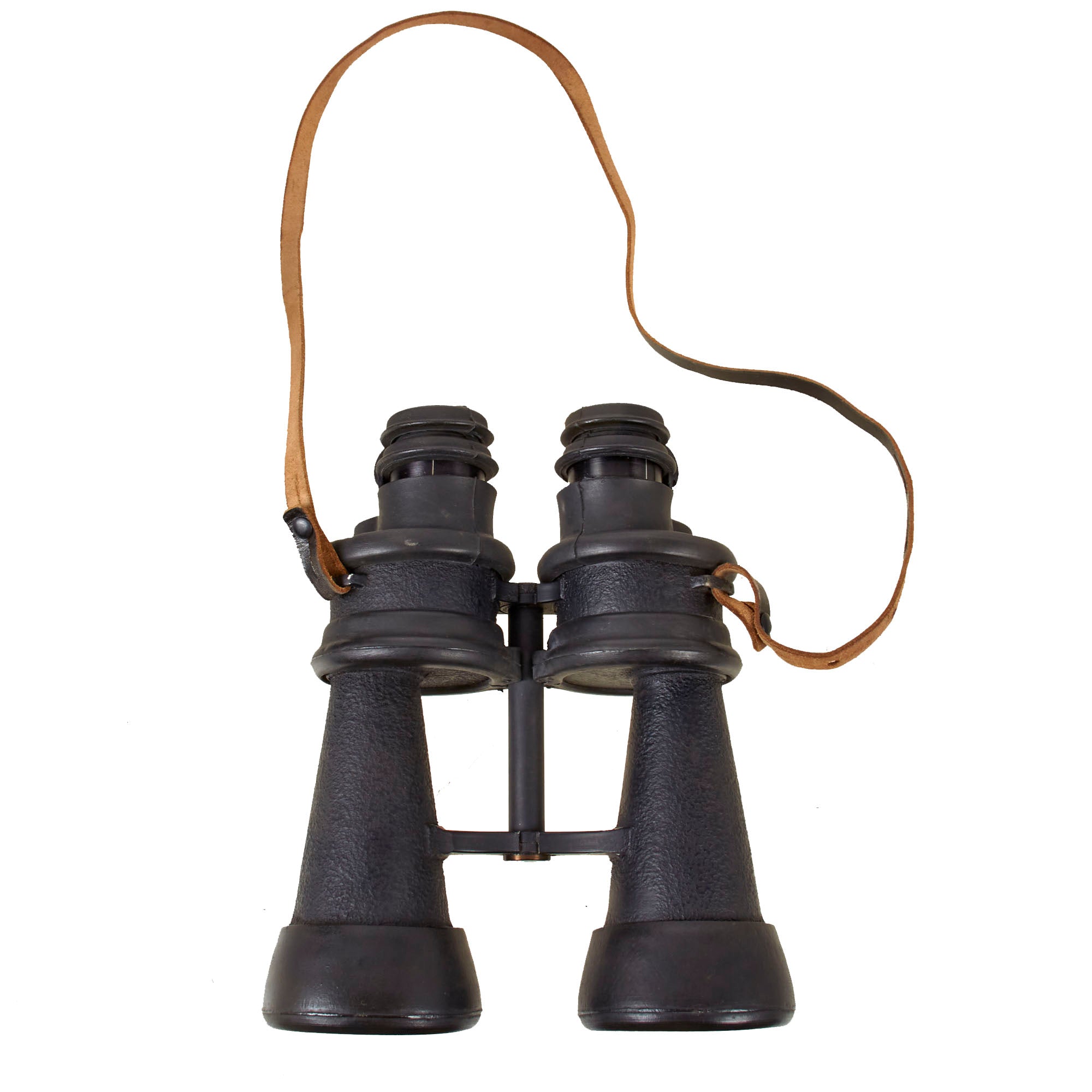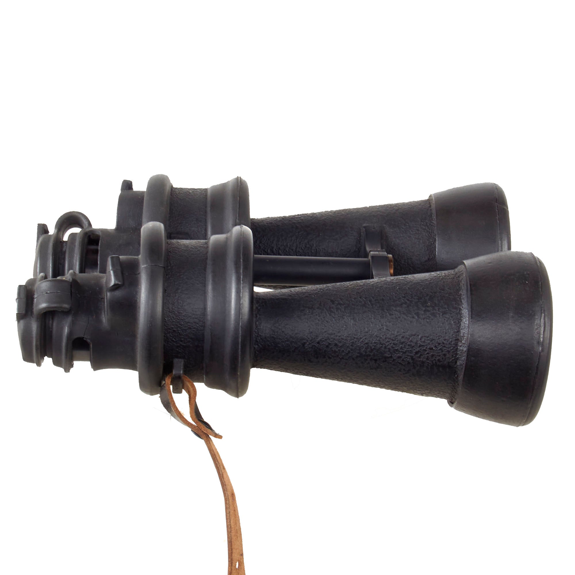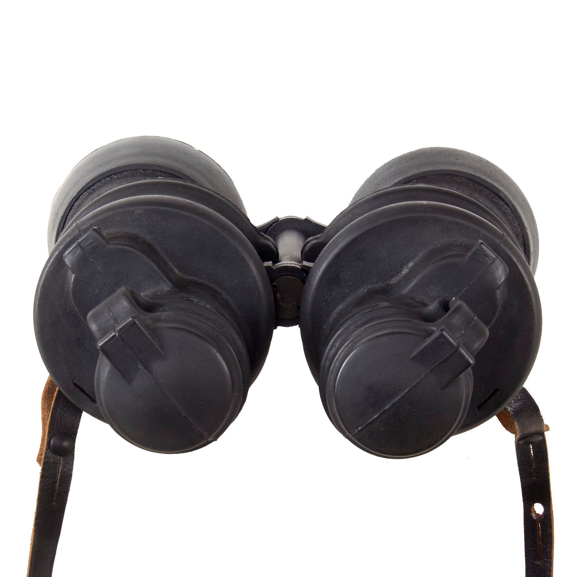 Original Item: Only One Available. This is a very good pair of extremely rare German WWII Kriegsmarine U-boat 7x50 binoculars, made by Ernst Leitz GmbH of Wetzlar, a specialist lens maker, and one of the finest makers of the time. They are equipped with rubber fittings around the eyepieces which have broken off, the objectives, and even around the drum shaped mirror housing. This made them virtually impervious to moisture, possibly even if immersed in water for a short time, definitely a plus on a U-boat! As they have the rubber fittings, the eyepieces do not have bakelite cups, as they are part of the rubber molding. Unlike most examples, this set includes the very scarce original leather straps on the binoculars.