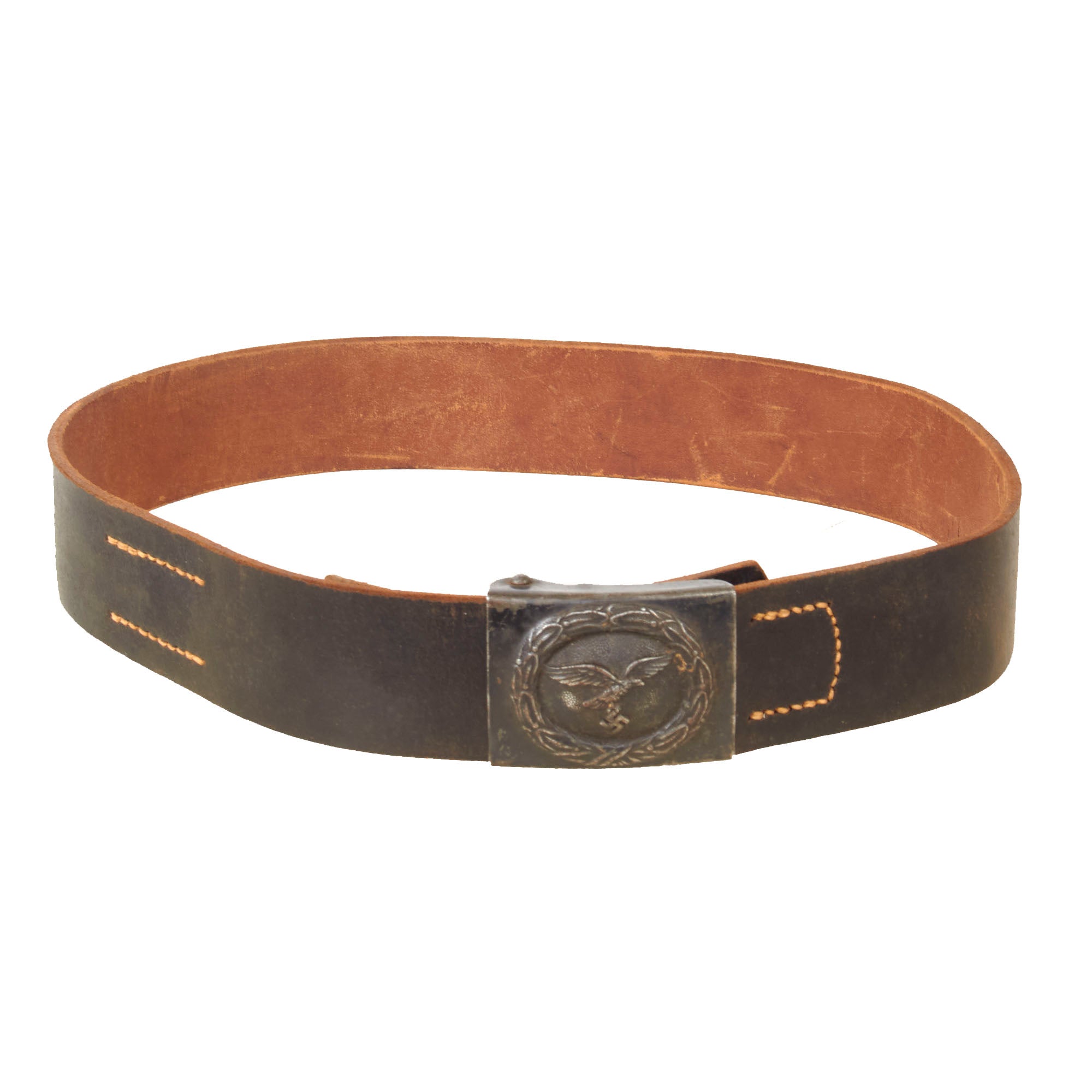 Overall a great example of a wartime issue Luftwaffe leather waist belt with a lovely service used condition painted steel buckle. Ready to display!