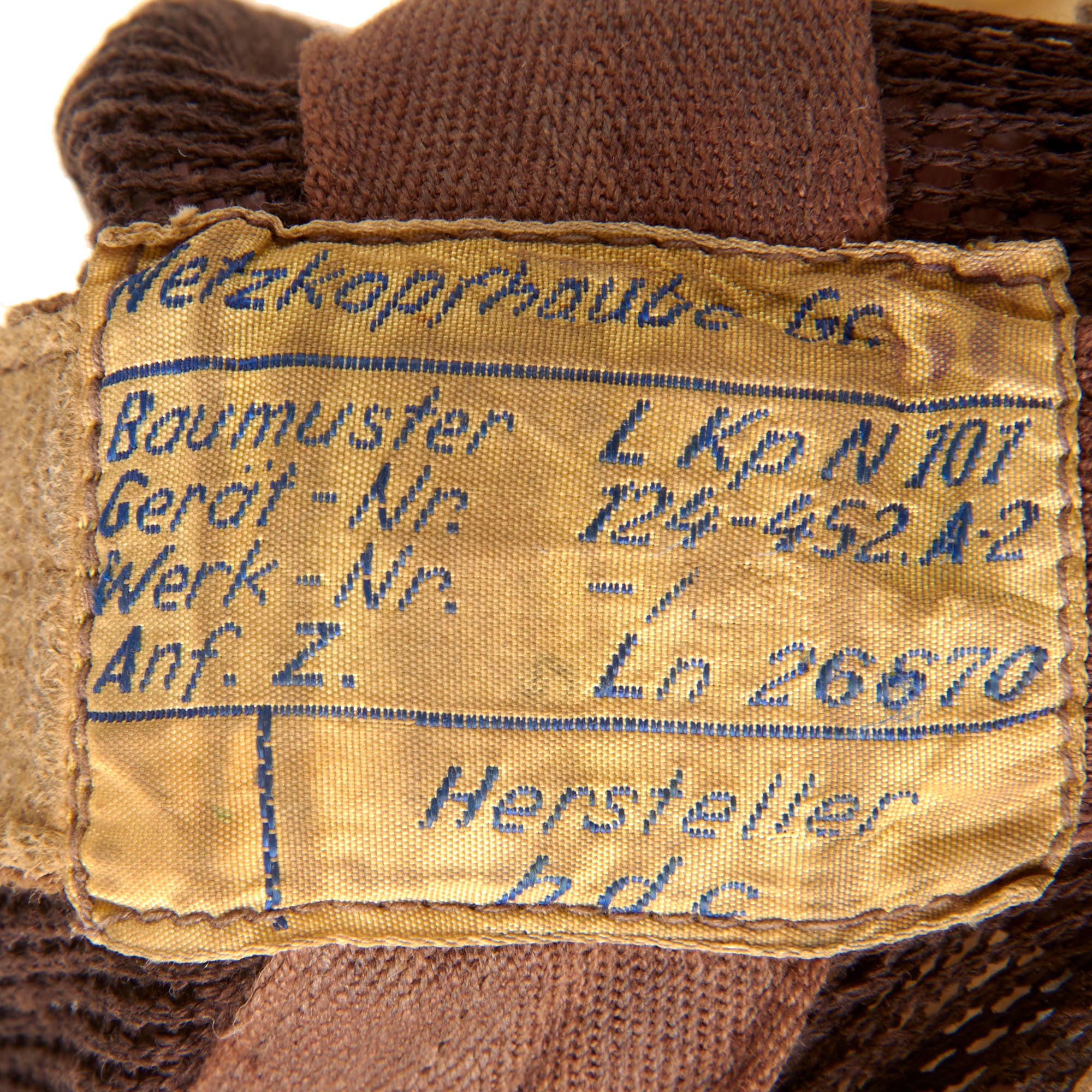 The maker code hdc is for Luftfahrtgeraetewerk Hakenfelde GmbH, Berlin-Spandau. The helmet is in great overall condition though there are definitely some holes in the netting as shown.