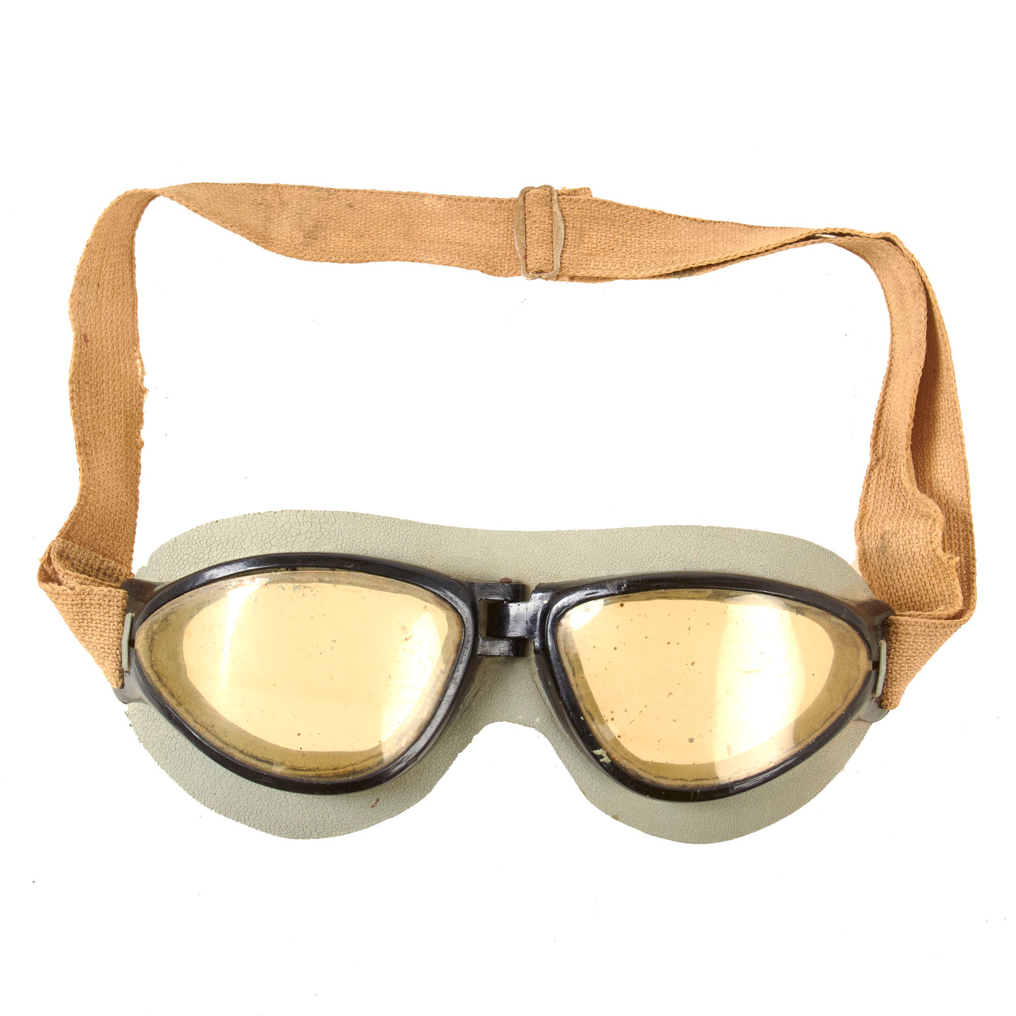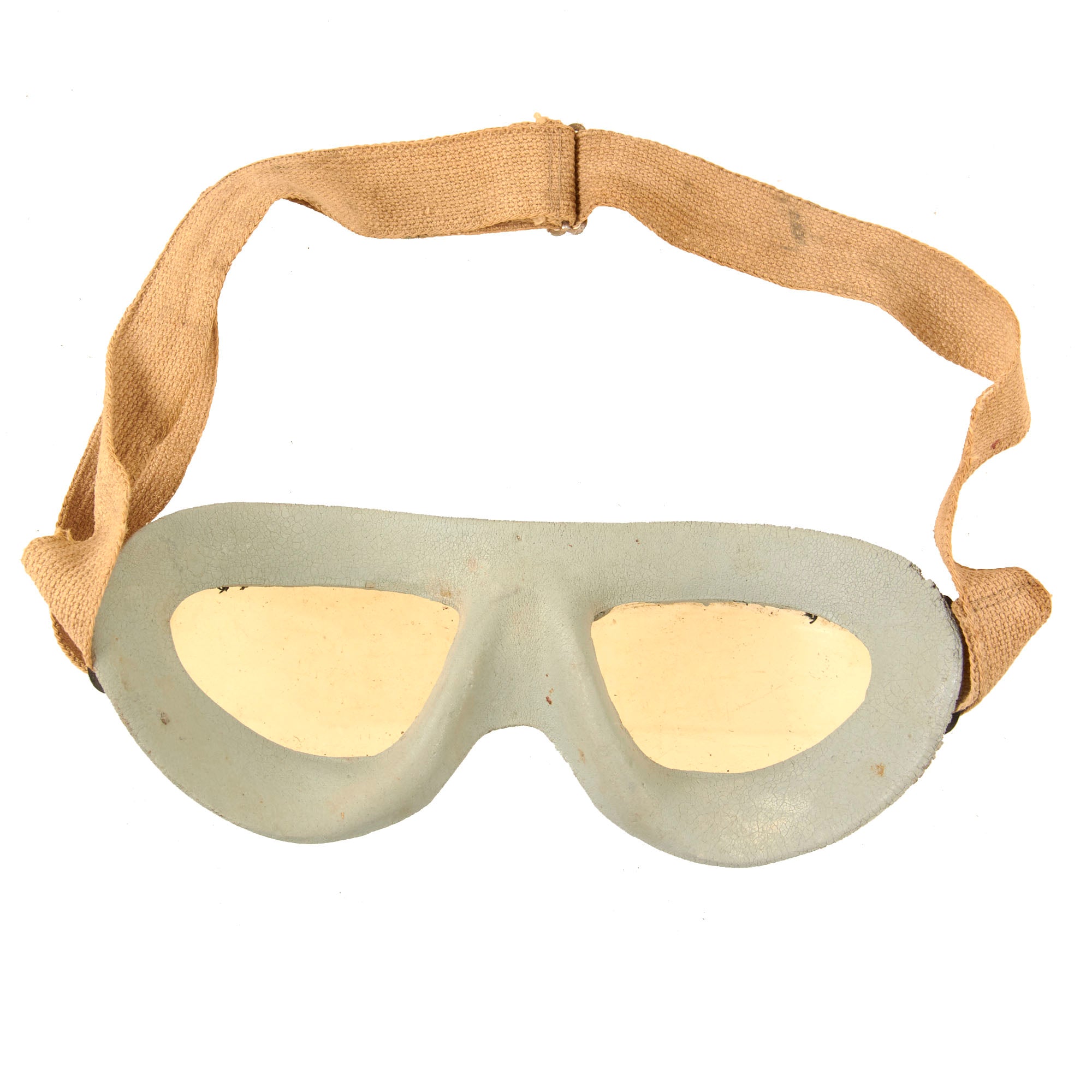 The goggles are in great shape overall and show heavy cracking to the rubber as shown, with wear and warping to the eyepieces. One of the lenses is now loose.