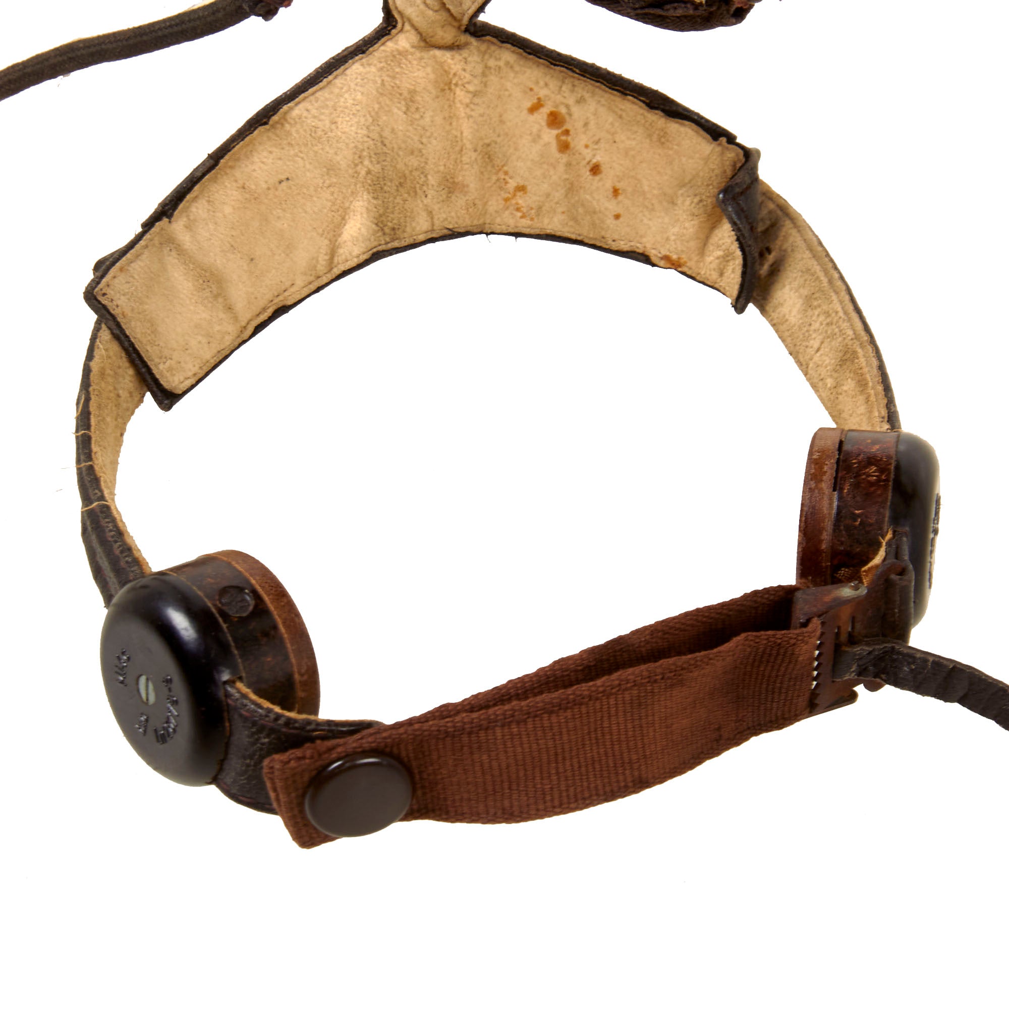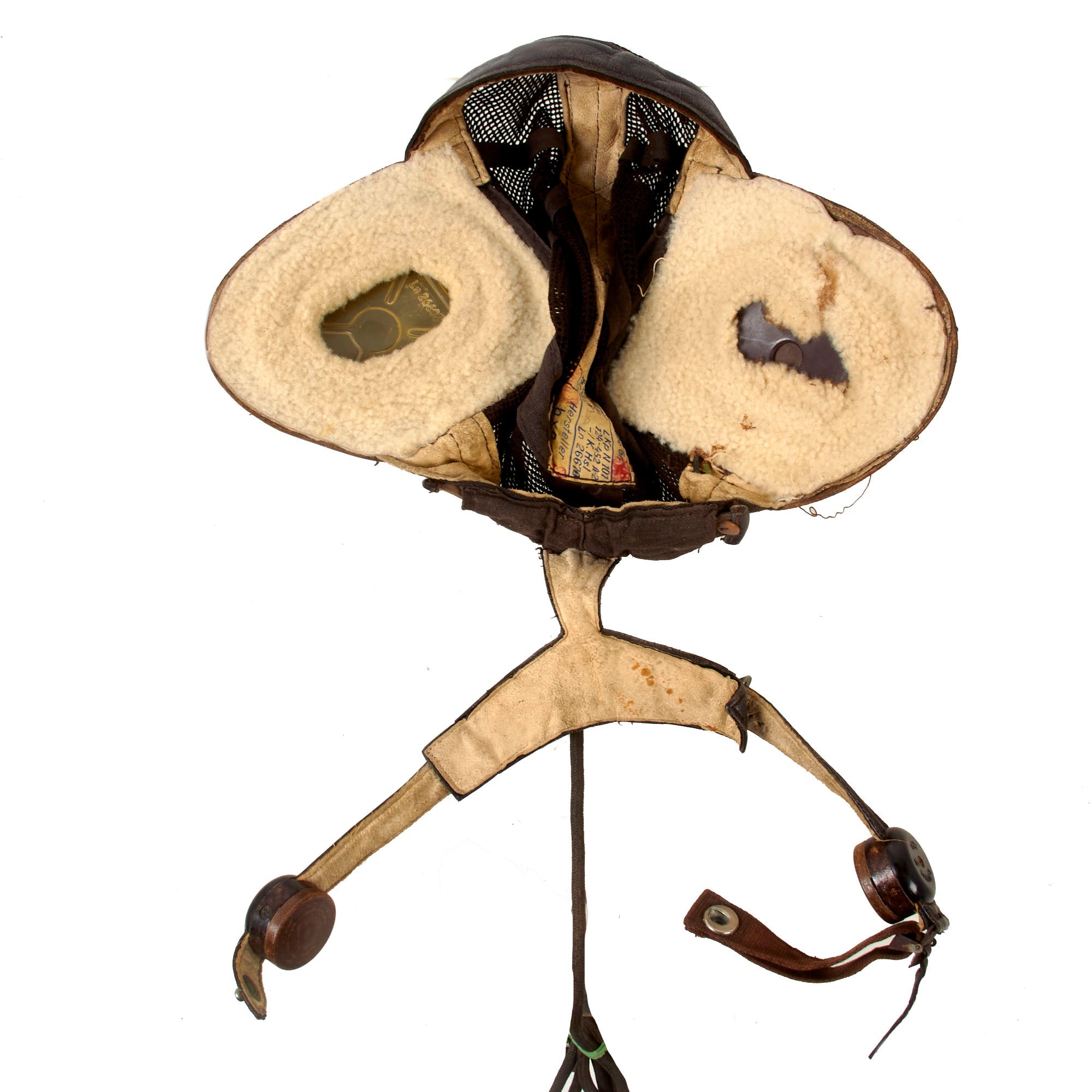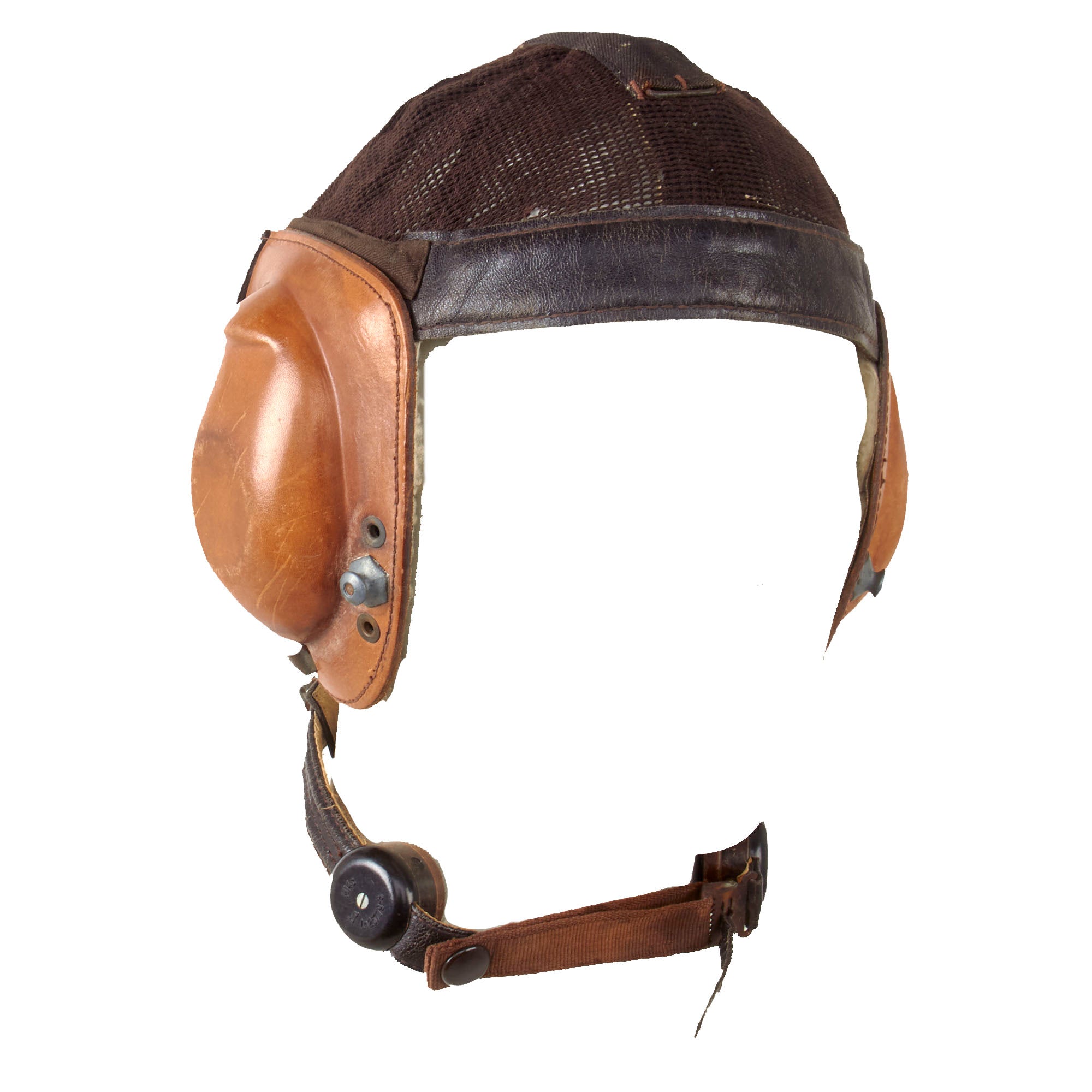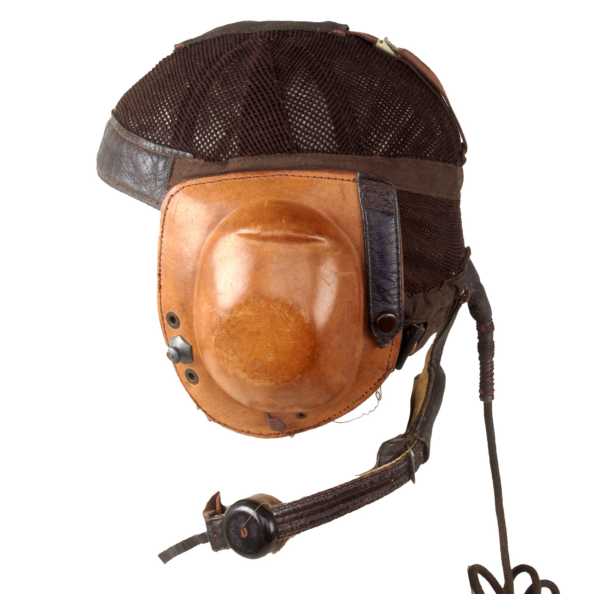 Original Item: Only One Available. The famous net-top helmet proved popular with Luftwaffe pilots as it was designed for comfort and without the restriction of a chinstrap. This classic mesh flying helmet which has become synonymous with Luftwaffe fighter pilots in WW2. This example has a manufacturers label coded hdc indicating it was produced by the firm of Luftfahrtgeraetewerk Hakenfelde GmbH, Berlin-Spandau. Overall condition is good with some tearing in the net as shown. This example includes the original Avionics.