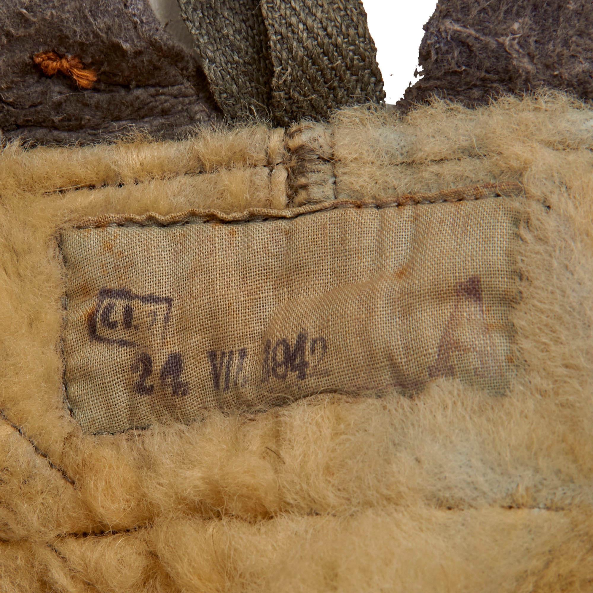This likely denotes July 24th, 1942. The snaps and zippers appear all retained with the small cloth straps at the pant holes retained as well. The primary zipper on the trousers is marked “RITSCH”.