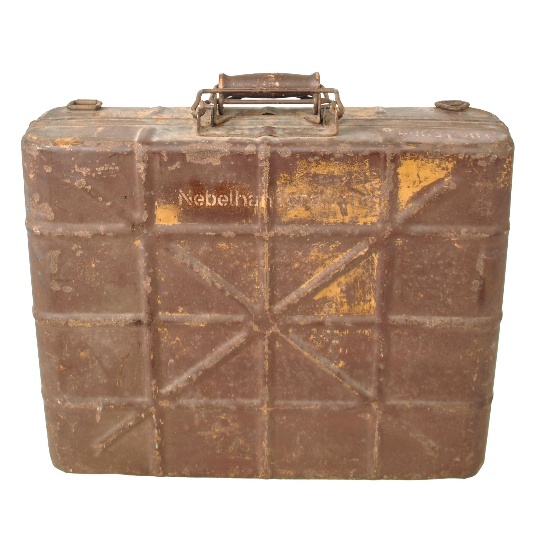 There is no internal rack, and there is only one Replica Nb-Hgr 39 Inert Smoke Stick Grenade inside. The side of the container is marked Nebelhandgranate which would denote that it was meant for smoke grenades.
