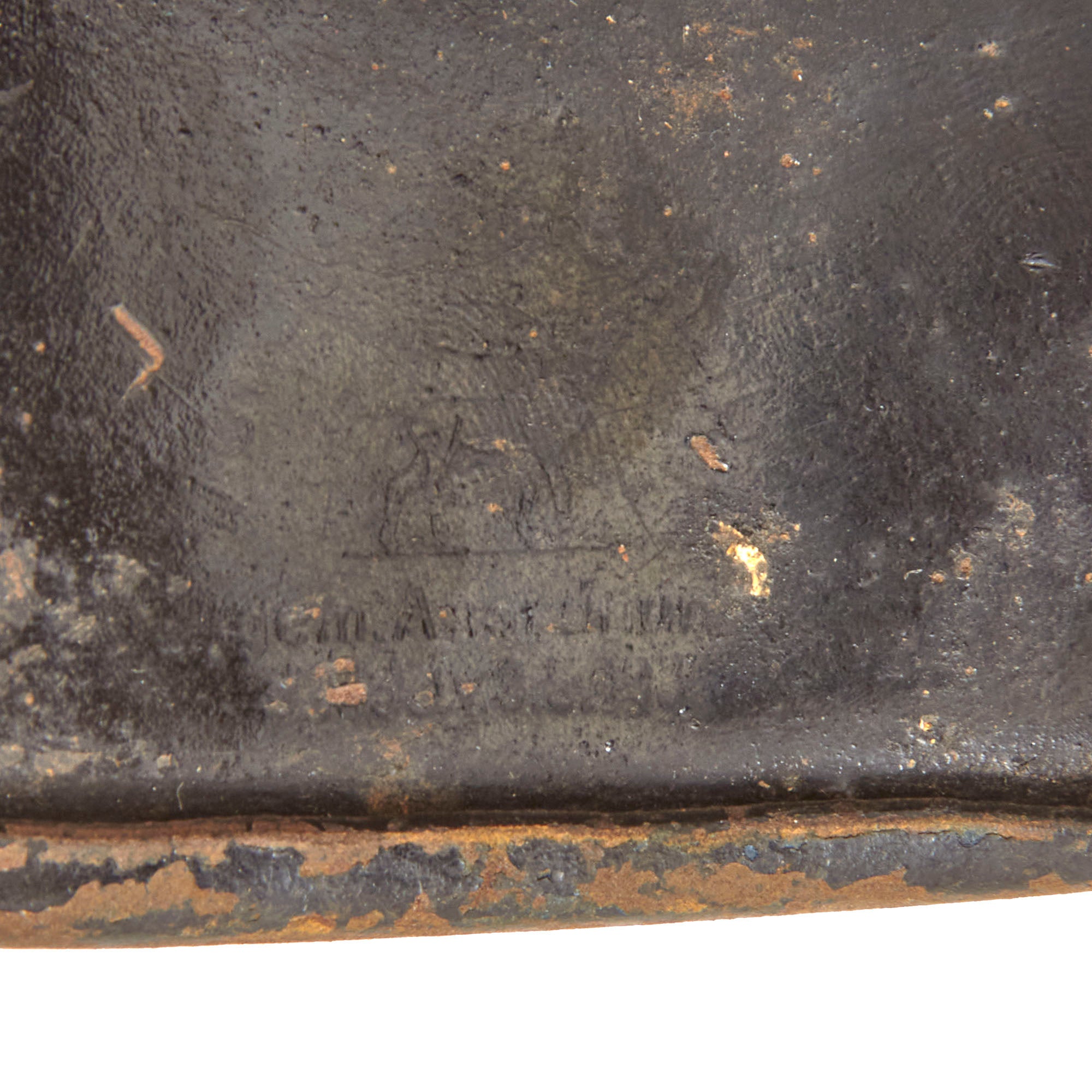 The inner skirt over the left ear actually has a fairly large maker mark of a "Stag", surrounded by the following: