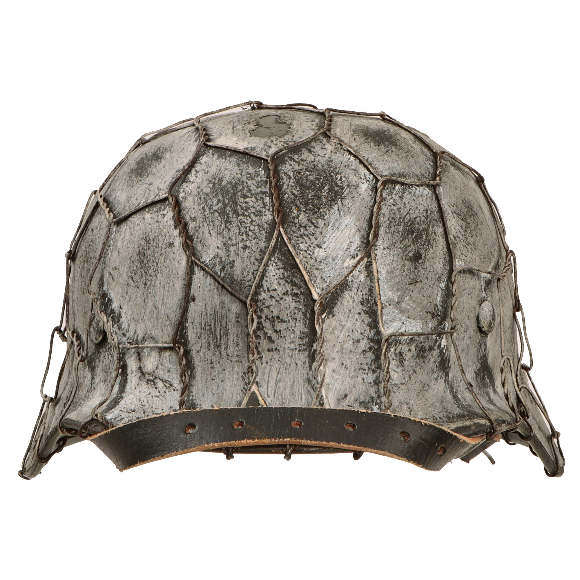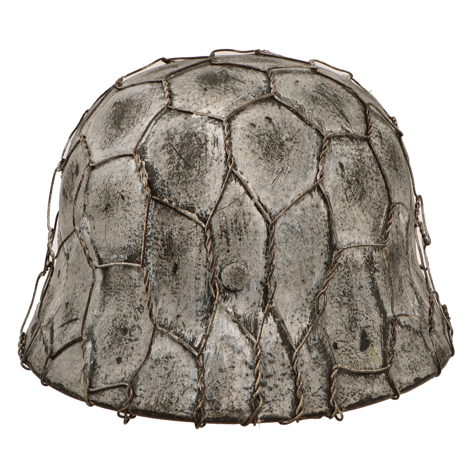 Original German WWII M40 Refurbished SS Late Winter Textured Camouflage Chicken Wire Helmet - Stamped EF66