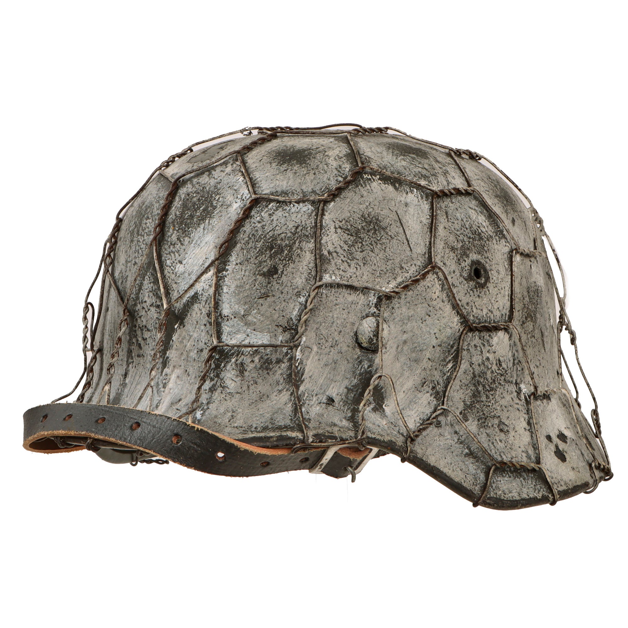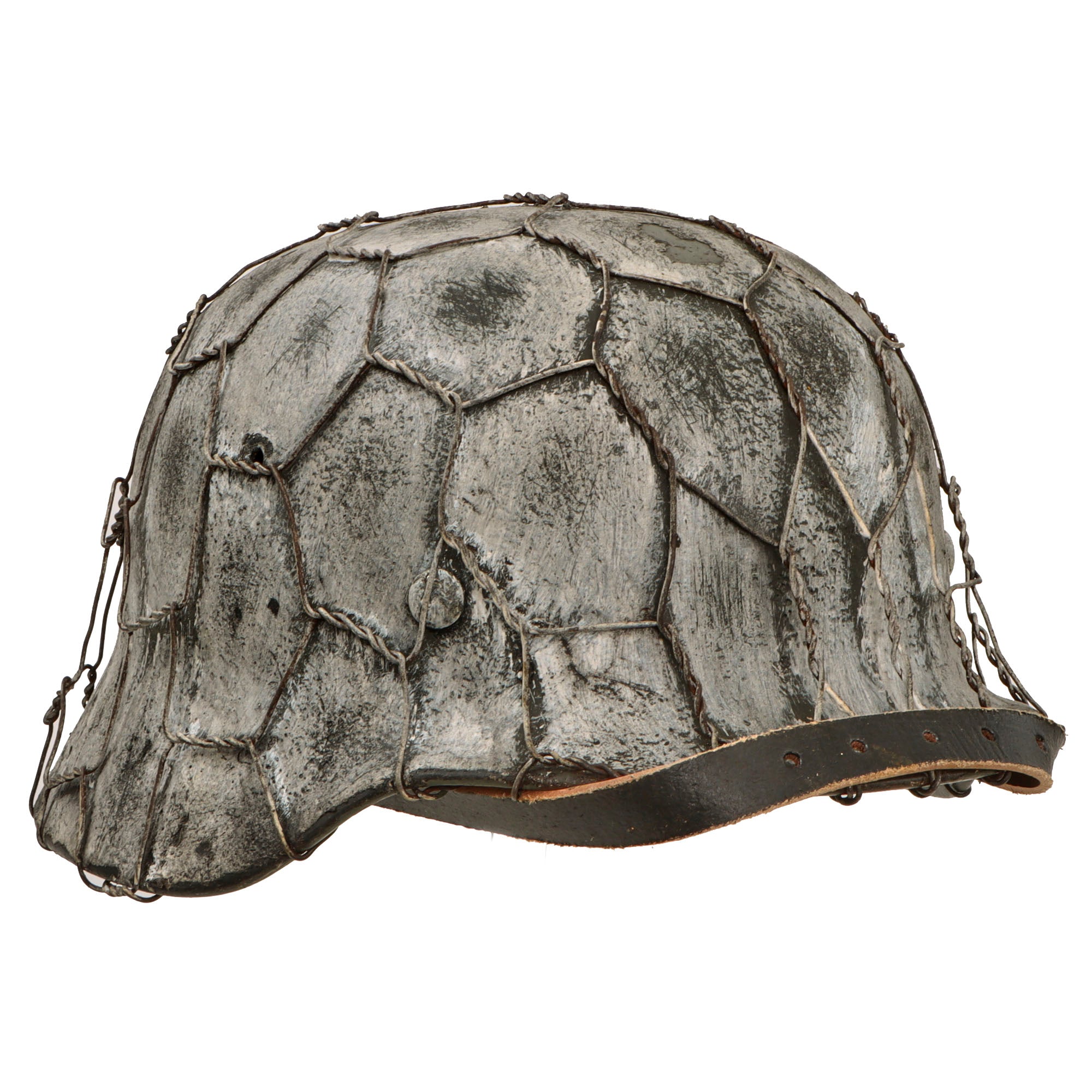Notable history of the WWII M40 SS Late Winter Camouflage Chicken Wire Helmet: