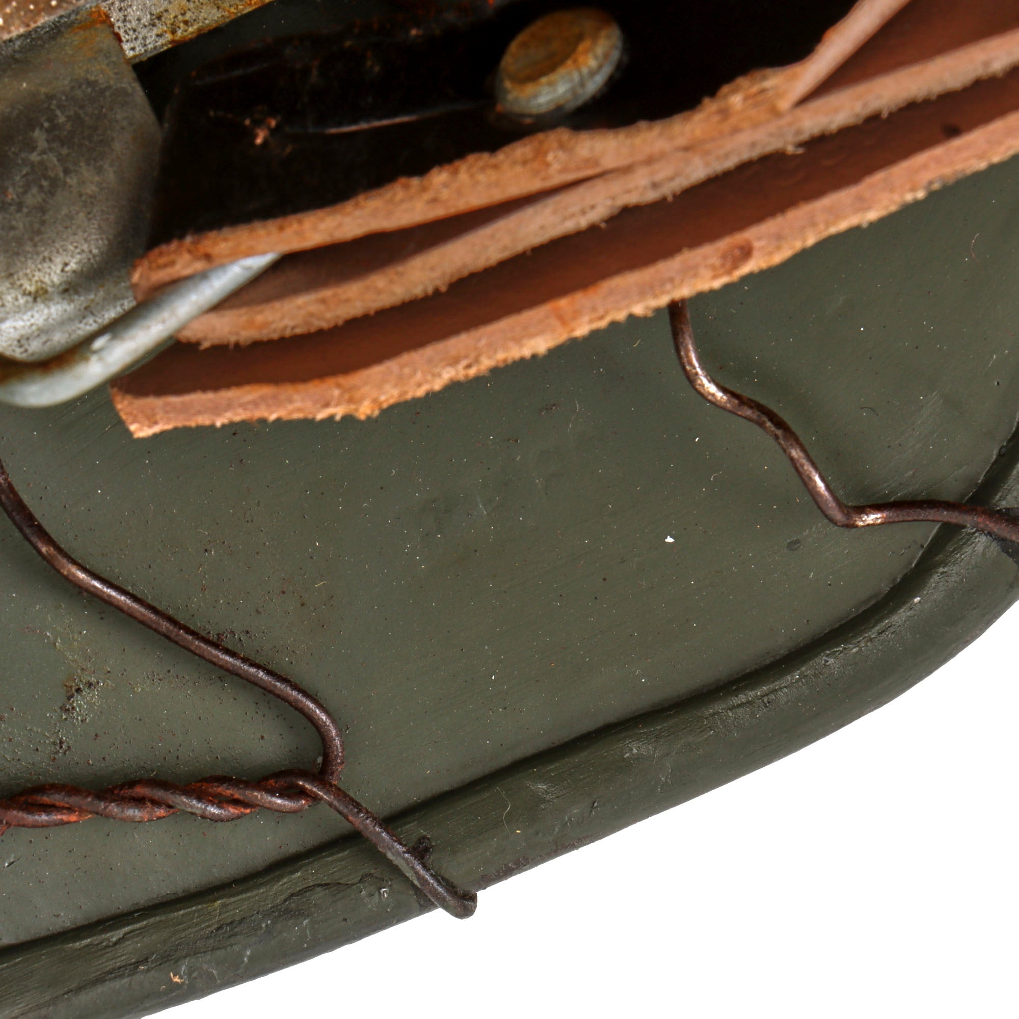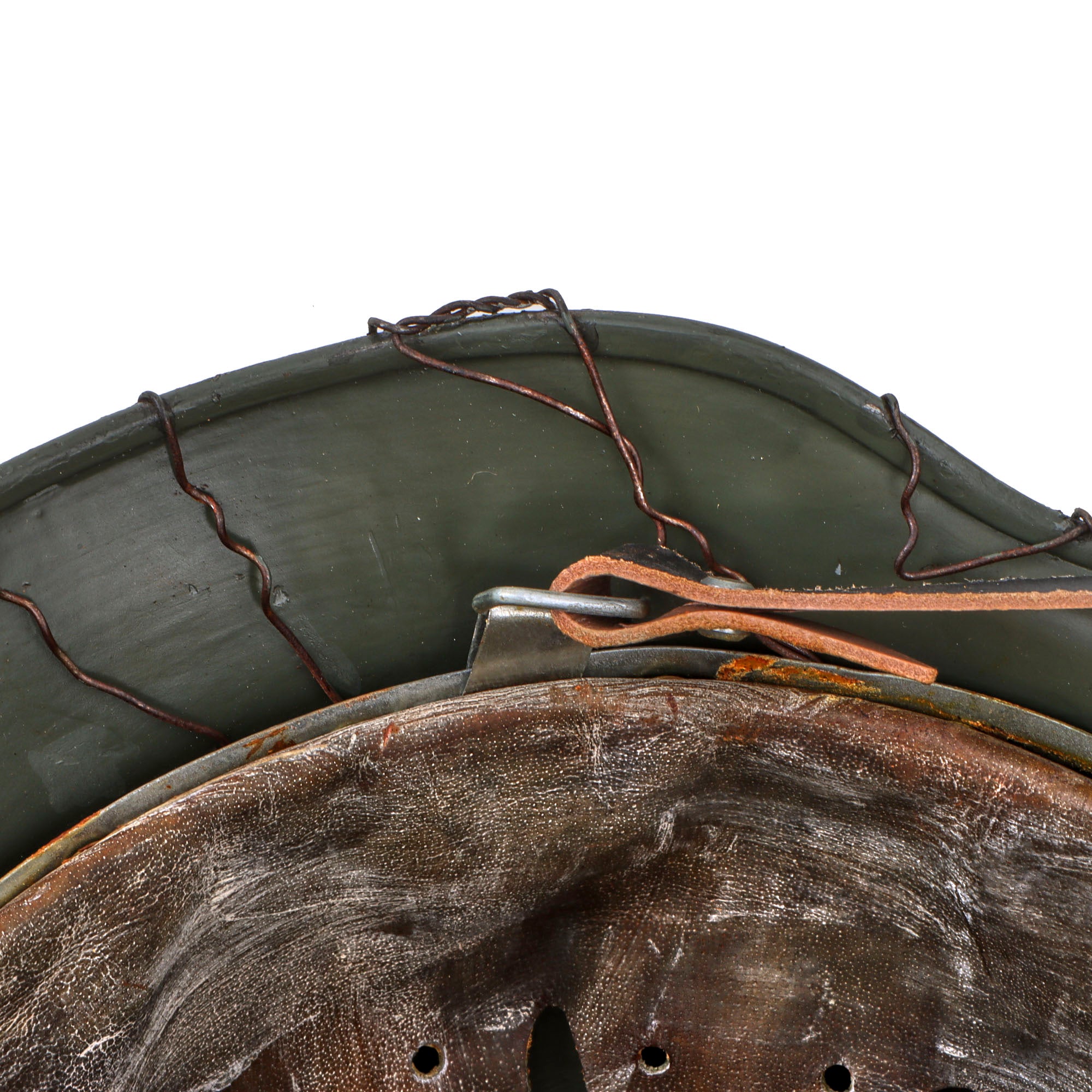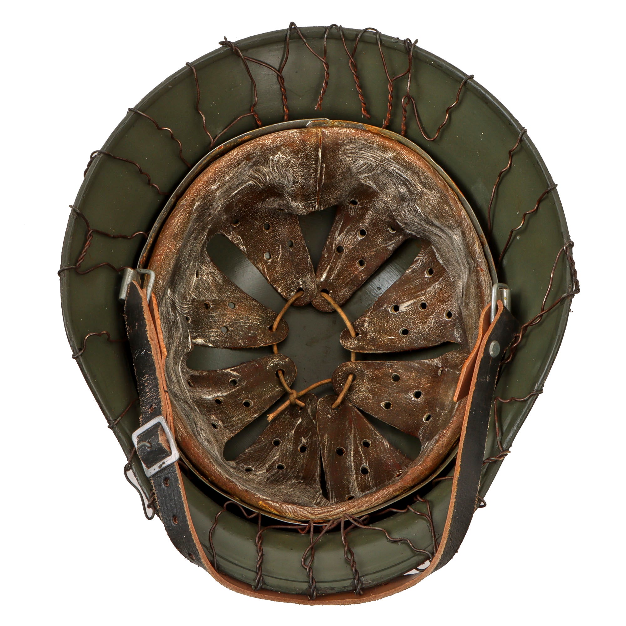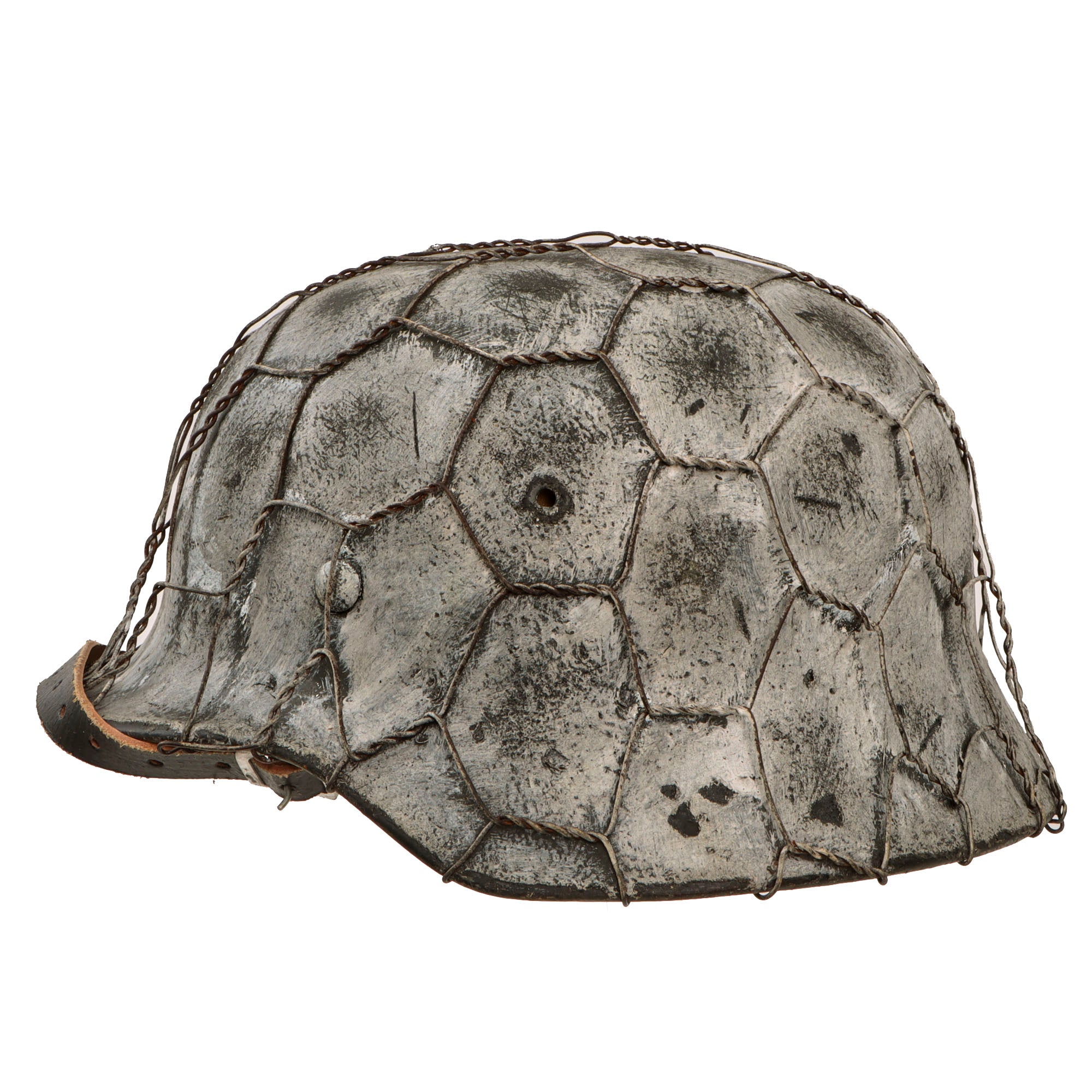 - The chickenwire that had covered the helmet all summer was not removed, but over painted as well. The chickenwire on this example is exactly replicates the same European wire found in Normandy in 1944. The twist in the wire varies by country and by time. So many helmets out there use wire that is not correct for the period.