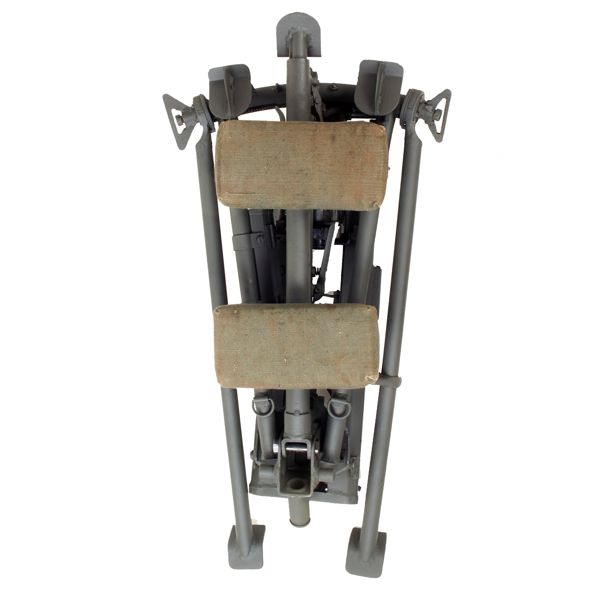 Original Item: Only one available. This fantastic MG42 Lafette (German for Gun Carriage) ground tripod is an original World War II German manufactured mount, which like many was reconditioned postwar in Eastern Europe, most likely in Yugoslavia, where it was repainted apple green, as with most items they used. They also added a new data plate on the top rear area, over the original markings.