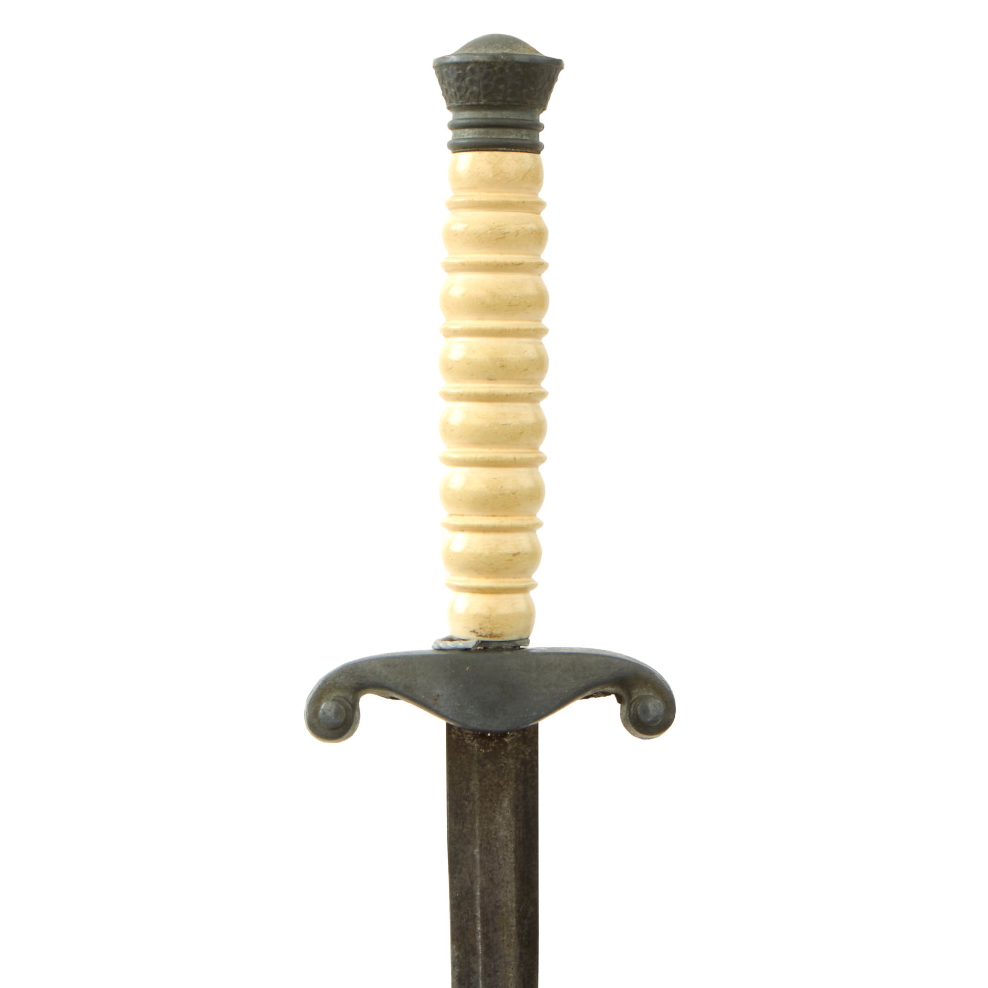 The German Army (Heer) first carried a dagger beginning in 1935. The weapon was worn in lieu of occasions not demanding the wearing of a more formal sword. The dagger design was quite attractive featuring silvered heavy fittings with white or colored grip. The crossguard depicted a Wehrmacht open-winged eagle clutching a wreathed swas.
