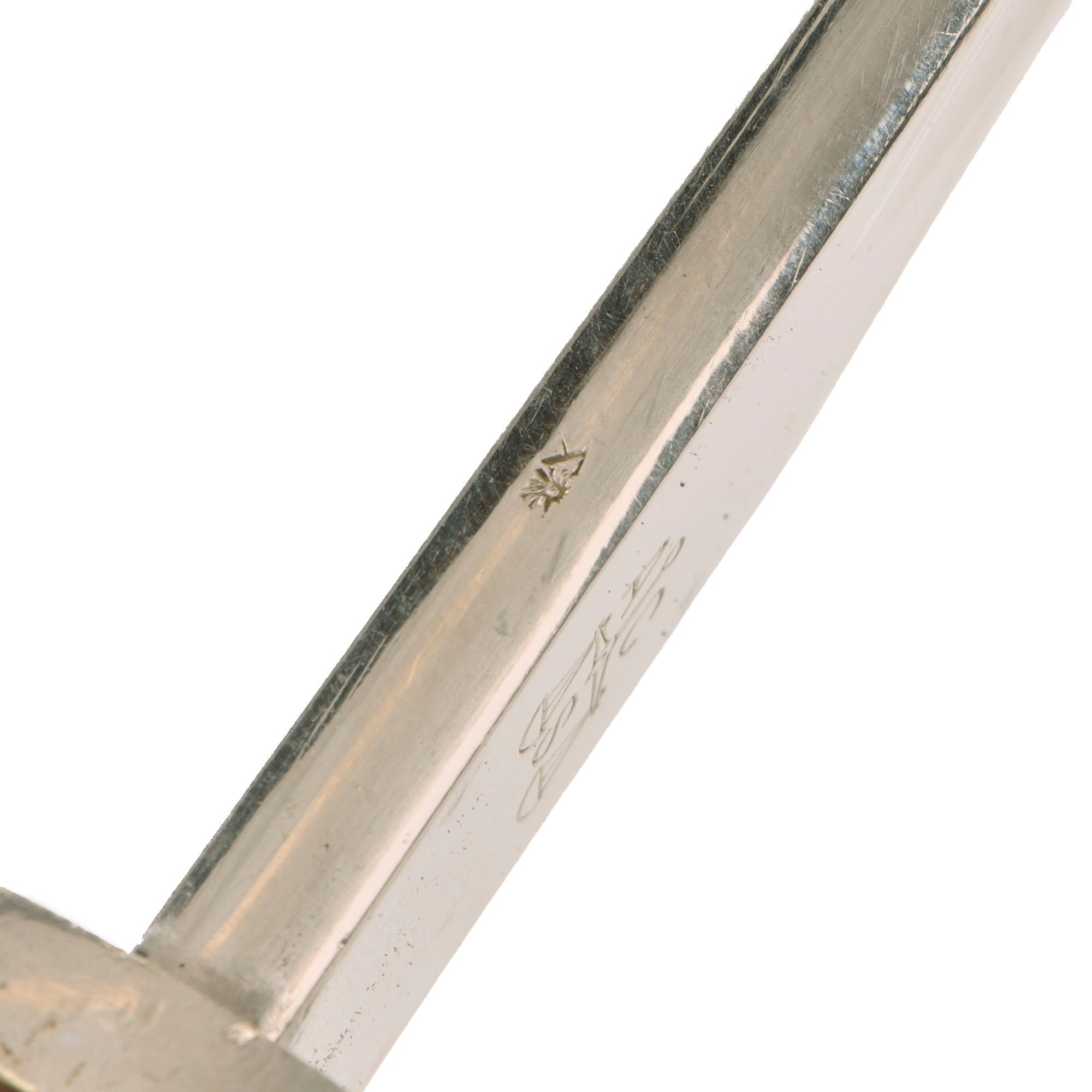As with most police bayonets, there is a unit marking on the reverse guard of the bayonet: