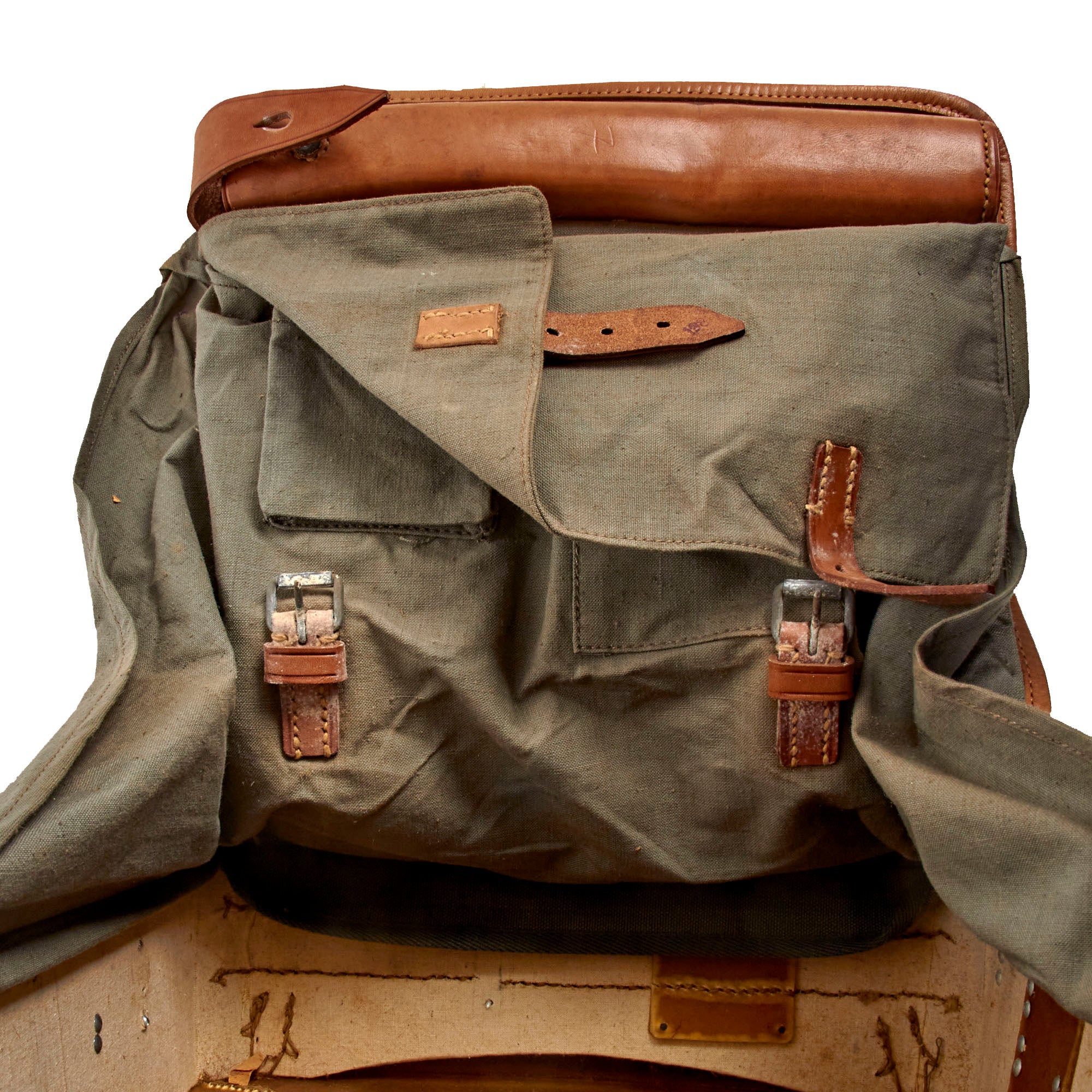 Original Item. Only One Available. This is a very nice original German WWII Radio Signalman cowhide backpack, known as Fernsprechtornister (Telephone knapsack). The design is based on the M39 "Tornister," but it larger and with dual closure flaps. It also folds out somewhat like a medical back pack or field desk, so that the entire interior is accessible at once.