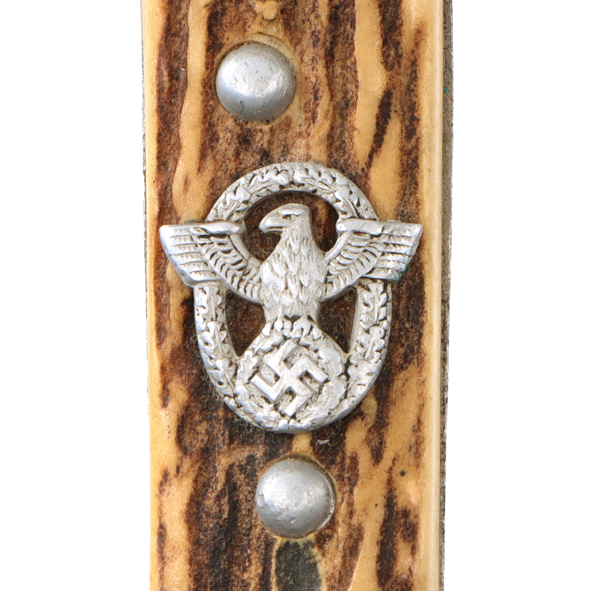We unfortunately were not able to find much information on the unit names of the Rural police units in WWII Germany, and leave this as an excellent research opportunity. The same unit marking is stamped onto the back of the scabbard, which we were not able to photograph.