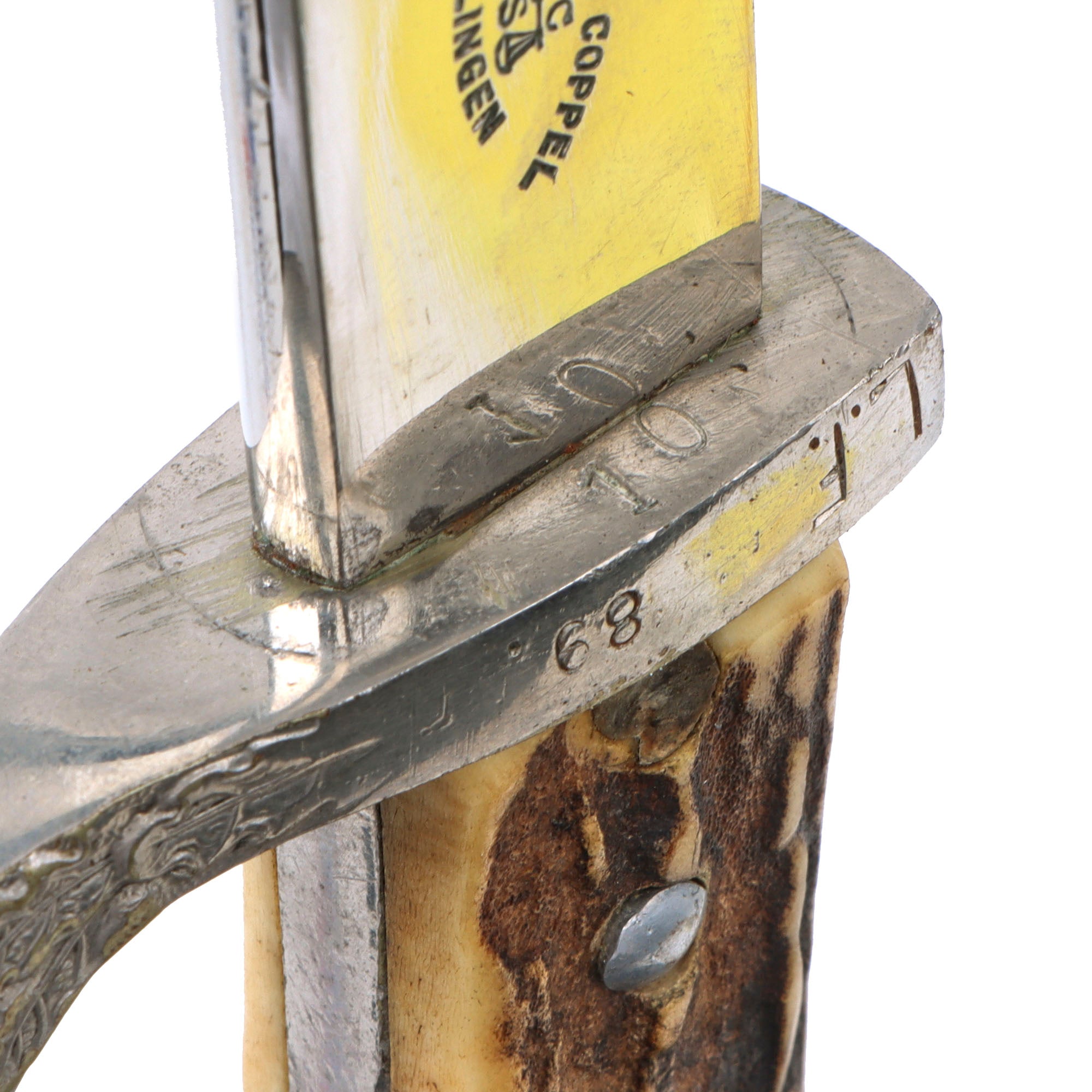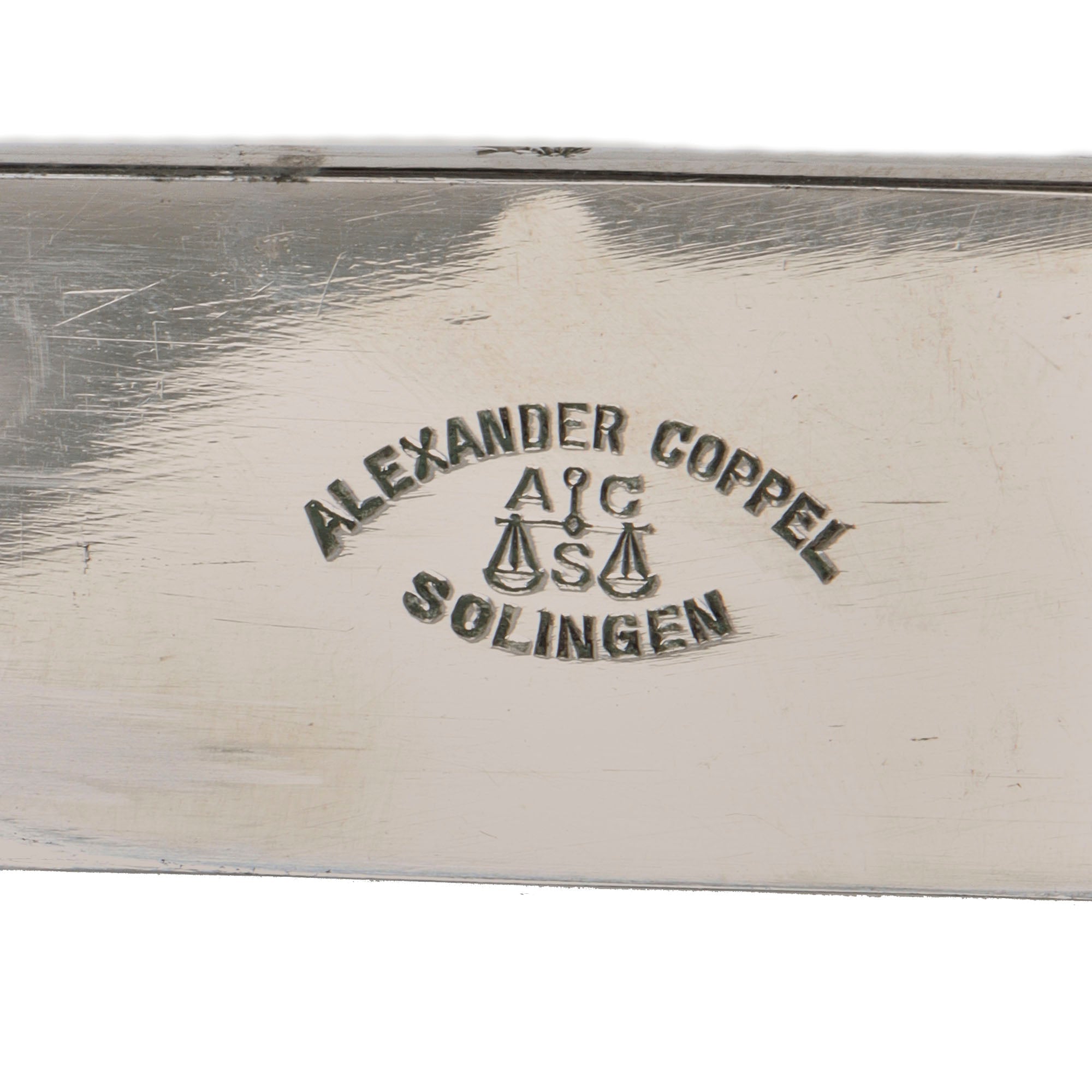 Alexander Coppel & Co. KG, Stahlwarenfabrik, was located in Solingen, the legendary German "City of Blades." The company was a major manufacturer of edged weapons and tools from the end of the 19th century up until the WWII period. Unfortunately, as NSDAP-control increased, brothers Carl Gustav and Dr. Alexander Coppel, the Jewish owners of the firm, were forced out. In 1936 the firm had been "Aryanized", and started using the name ALCOSO to hide the Jewish family name. By the end of 1936 the brothers were ejected from their Solingen offices, and by 1940 the brand trademark initials ACS were changed to AWS to reflect the change in ownership and name: Alexander Coppel Solingen to Alcoso-Werk Solingen. Carl Gustav Coppel committed suicide in Solingen in 1941, and Dr. Alexander Coppel was arrested in 1942 and sent to Theresienstadt Prison camp, where he died August 5th 1942.