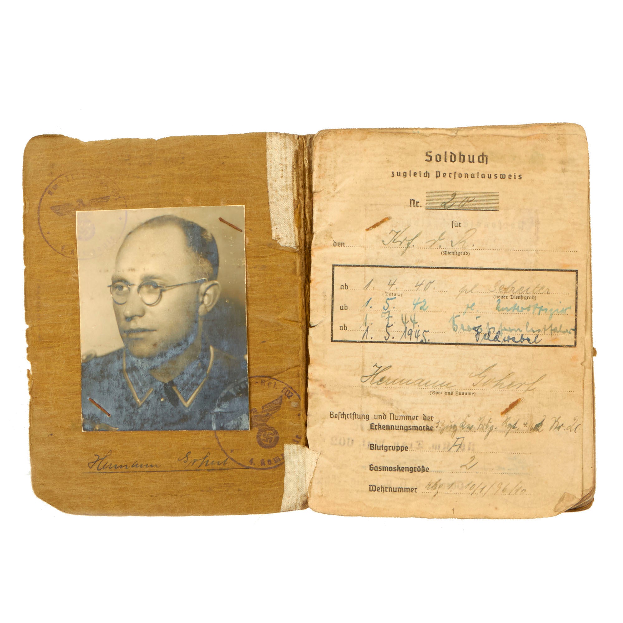 The Soldbuch served the soldier as a personal identification document in wartime and as an authorization to receive pay from his own or outside pay-stations. In addition, it was identification for rail travel, detached service, leave, and for receiving mail. The Soldbuch was always carried by the soldier on his person in a tunic pocket. Leaving the book in one's baggage or in one's quarters was not permitted. The careful preservation of the book was in the best interest of the owner. The Soldbuch had to be kept in an orderly fashion. The owner must see to it, that all changes in pay due to transfer or promotion are immediately entered by his responsible duty station. The Soldbuch was an official document. Entries were only to be made by a Wehrmacht duty station. Making unauthorized changes is punishable as falsification of official documents. The loss of a Soldbuch was to be reported as soon the loss is discovered to the holders unit or duty station, and the issue of a new Soldbuch will be requested.