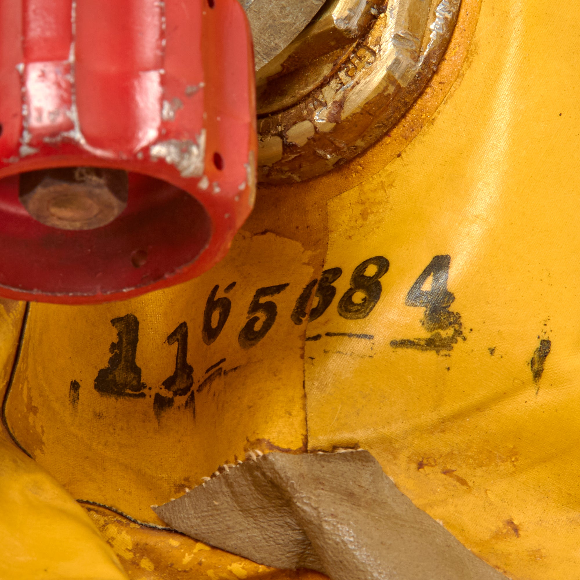 Also with the boat are the items Fl. 415007 & Fl. 415006, or the Bailing Bucket and Drift Anchor. Most of the rigging appears intact and in good order. The red CO2 cartridge cylinder is in good order and retains markings.