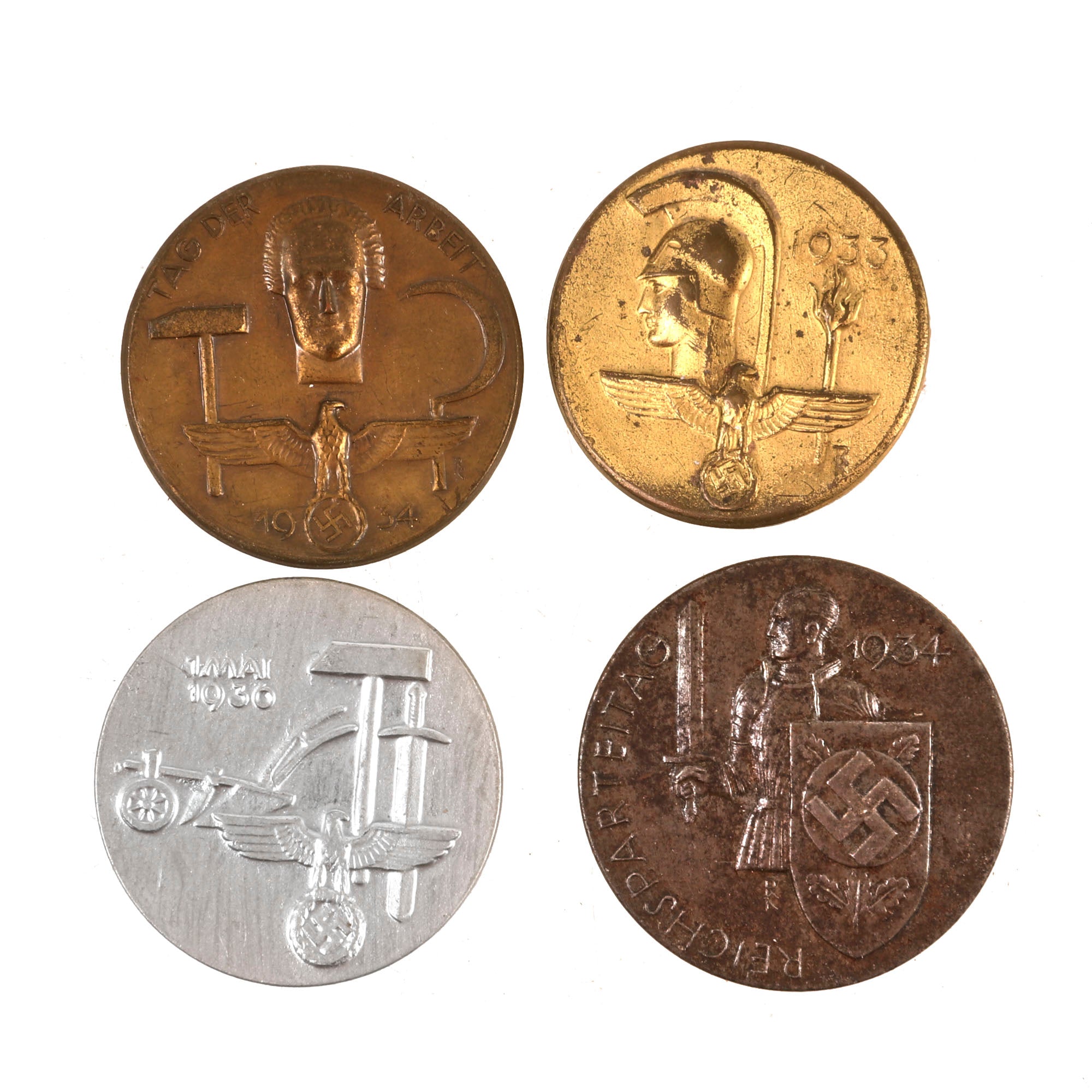 - FOUR 1 MAI Tinnies, one from every year from 1936 to 1939. These celebrated May Day / Labor Day in NSDAP germany.