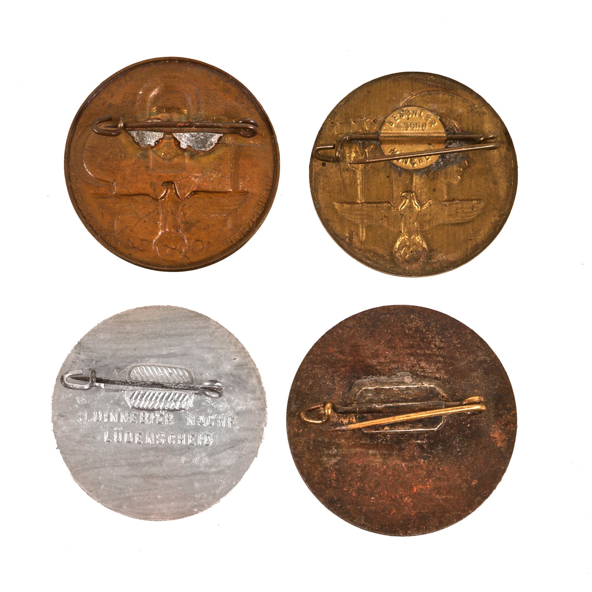 "Tinnies" (Veranstaltungsabzeichen - Event Badges) are small commemorative pins or medals, acquired when one attended a specific event held in Germany. They were often made of thin stamped metal, bakelite, or even pressed paper. Many of these were given out as part of the WHW (Winterhilfswerk - Winter Help Work) Organization, which often involved Germans traveling quite a bit to help out the war effort. Many others were given for the annual Reichsparteitag (Reich Party Congress), otherwise known as the Nuremberg Rallies.