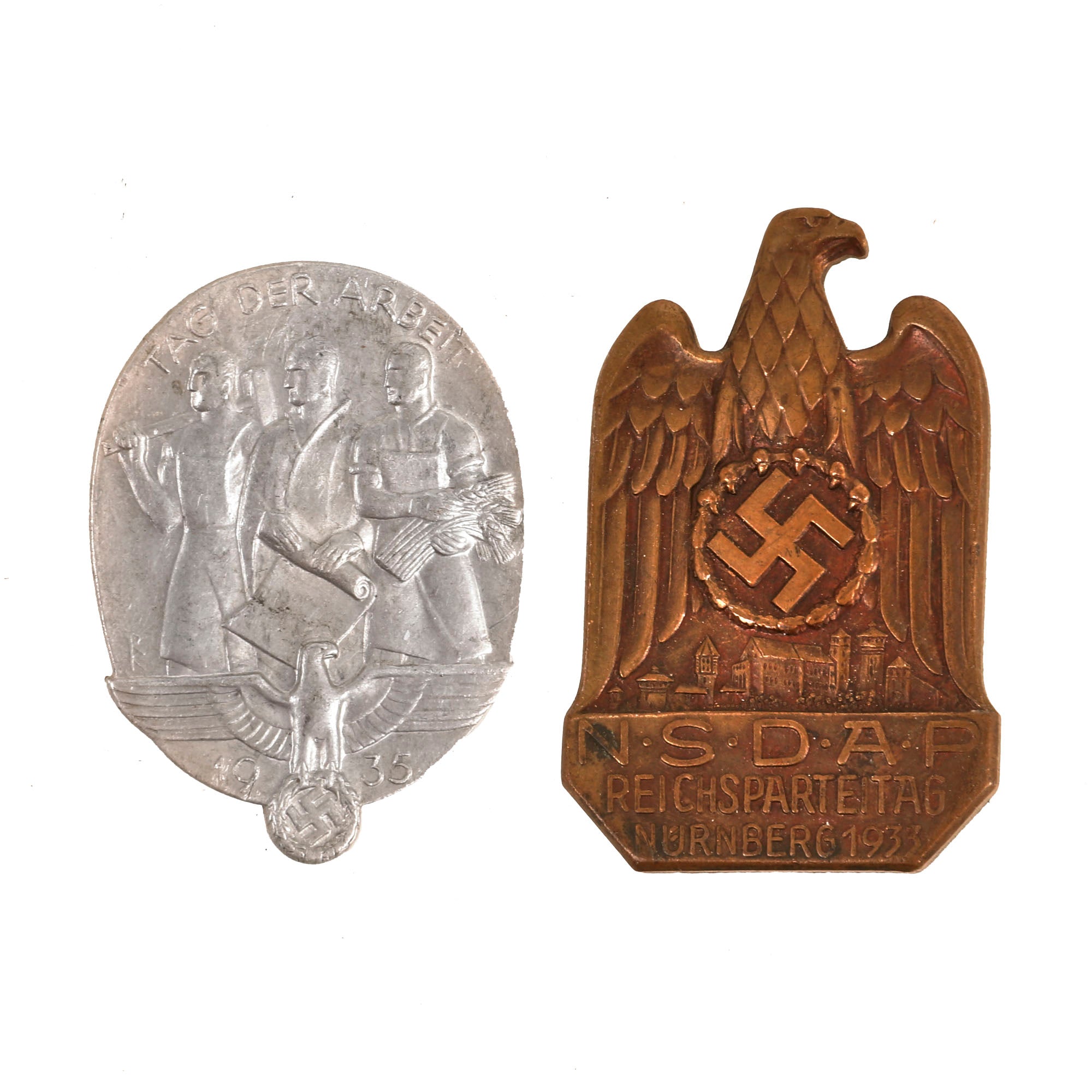 - TWO TAG DER ARBEIT Tinnies, dated 1934 and 1935. These were for the annual labor day celebration in NSDAP Germany.