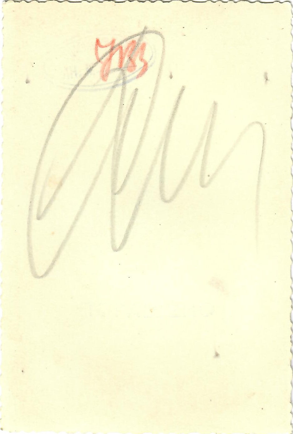● 5 1/4" x 3 7/8" signed recent photograph of Lt. Gottfried P Dulias, which lists JG 53 "Pik As" 1944/45 on the front of the photo. The image on the photograph however has been determined to almost certainly be a fabrication, and it looks like much of Dulias' claimed service record probably is as well. He even co-wrote a book about his time as a pilot and as a P.O.W. in a Soviet gulag, but almost all of the information regarding this dame from Dulias himself. Researchers of JG53 have not been able to find any in information about him having been in the unit. Far more is known about his post war activities, having been heavily involved with numerous veteran's events and air shows, where this photograph was acquired.