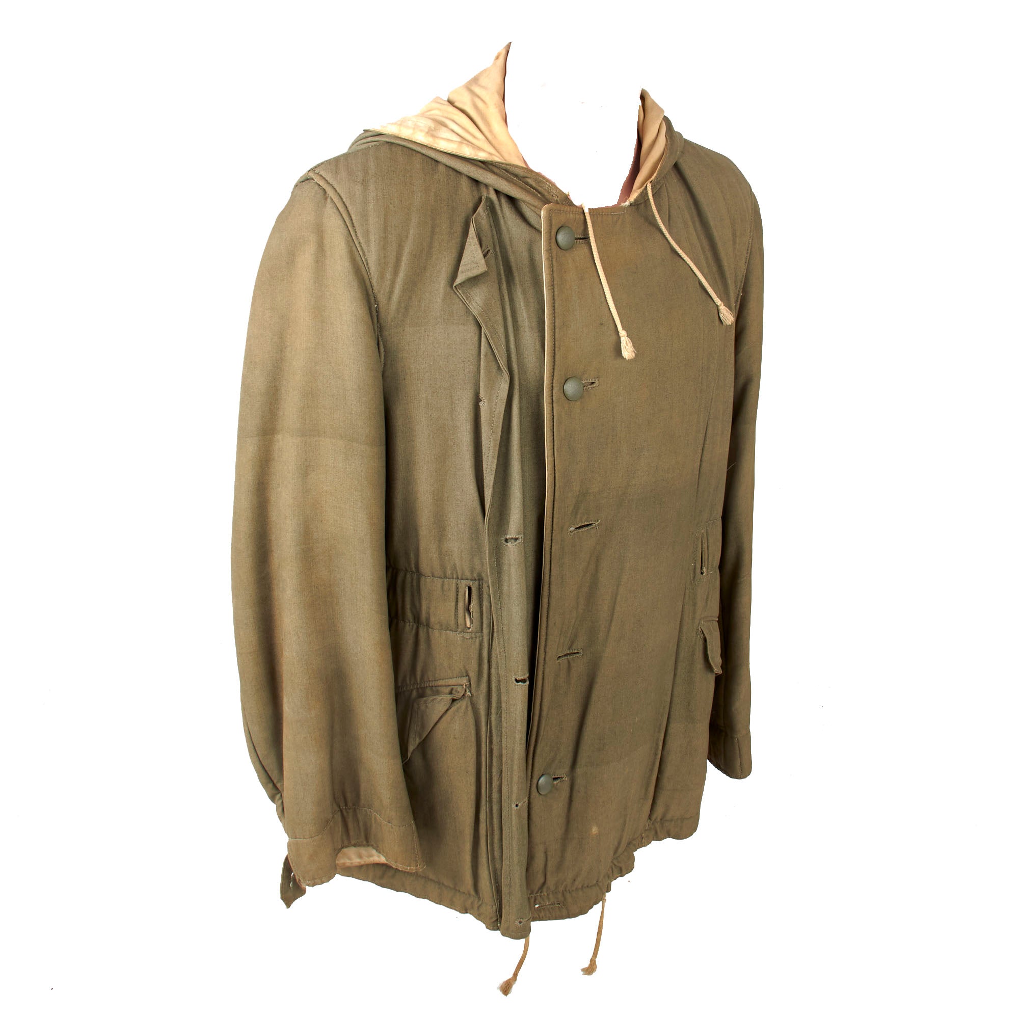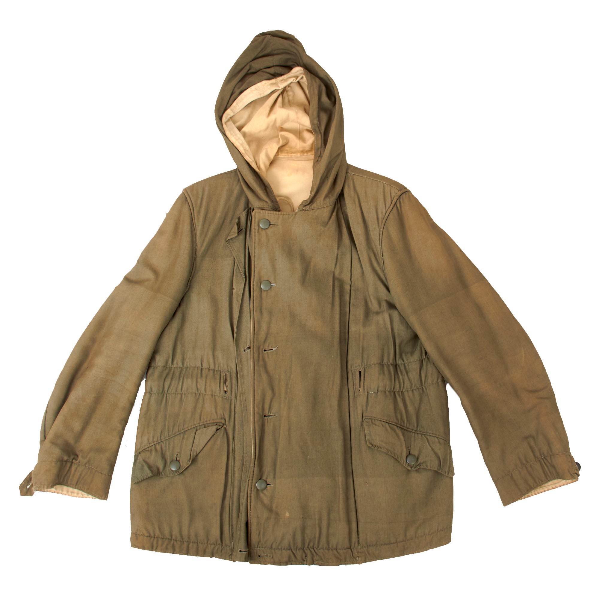 Overall condition is very good, especially considering that many of these would see post war service with the Bundeswehr or private individuals. There is wear and staining, but we do not see any major damage or repairs, just some missing buttons. A very rare and hard to find original World War II German reversible camouflage winter parka. Comes more than ready for display!