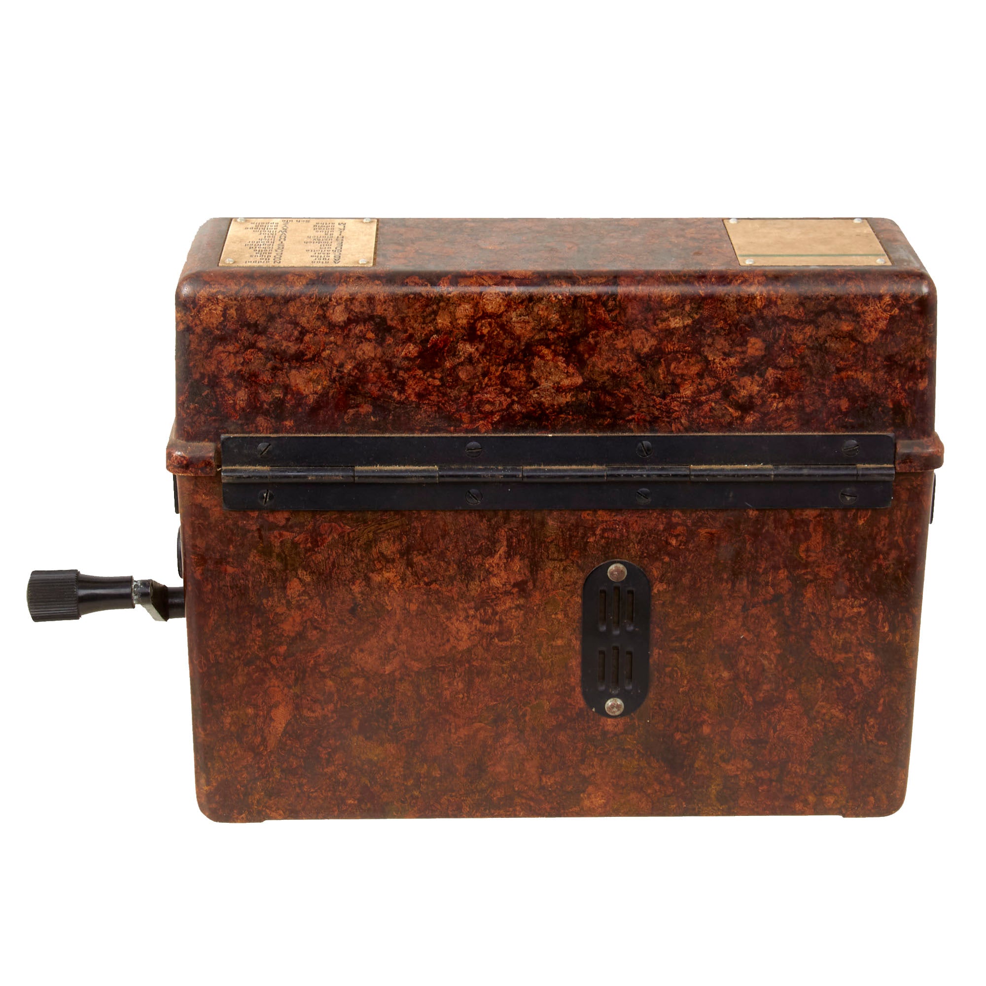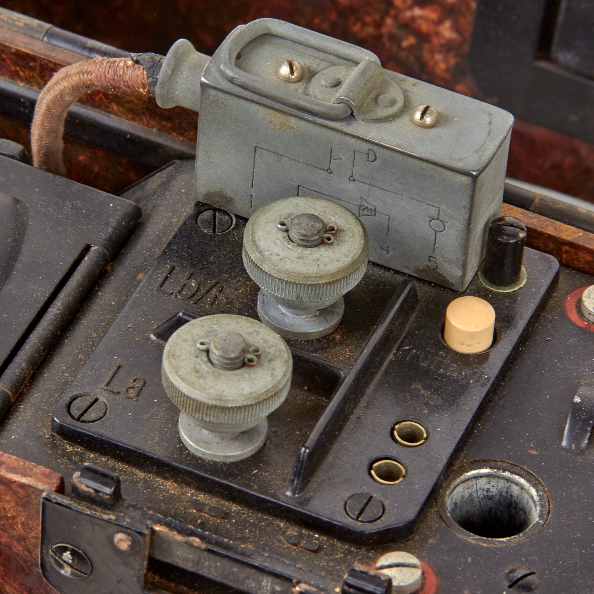Ingeniously designed with what appears to be one traditional wartime style handset, the lid interior of one has built in electrical circuit schematics for informational purposes. Used by the German Army throughout WW2 and continued in service for another 25 years into the Cold War era.