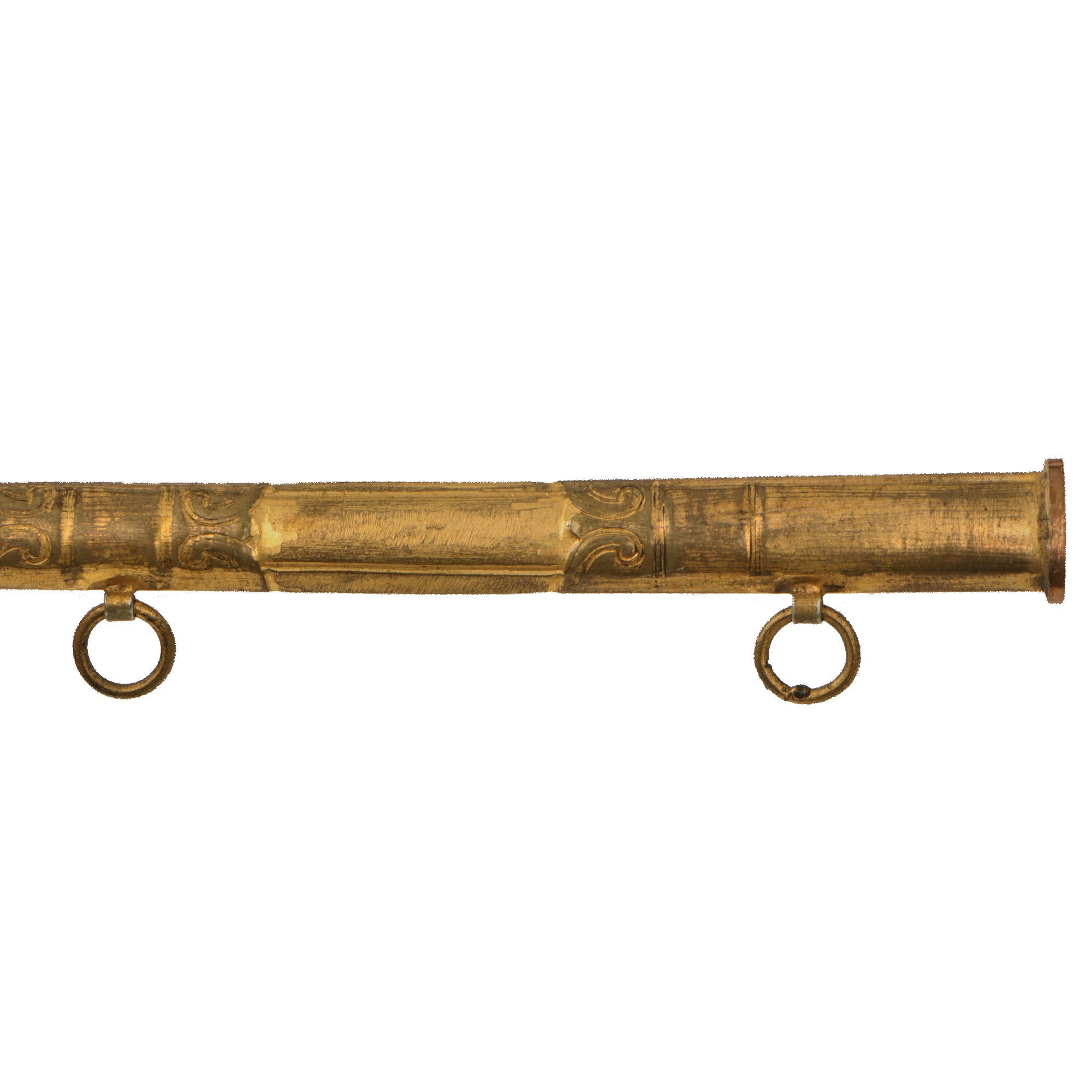 There are no markings on the ricassos, and the blade is a small bit curved. The scabbard is in good order with both suspension rings.