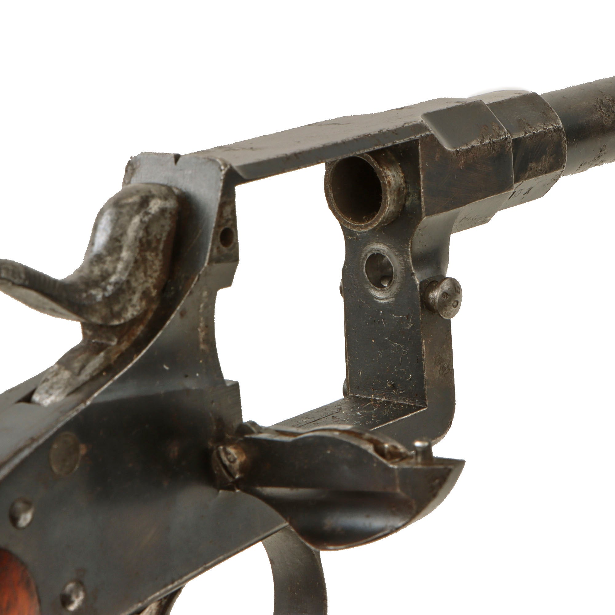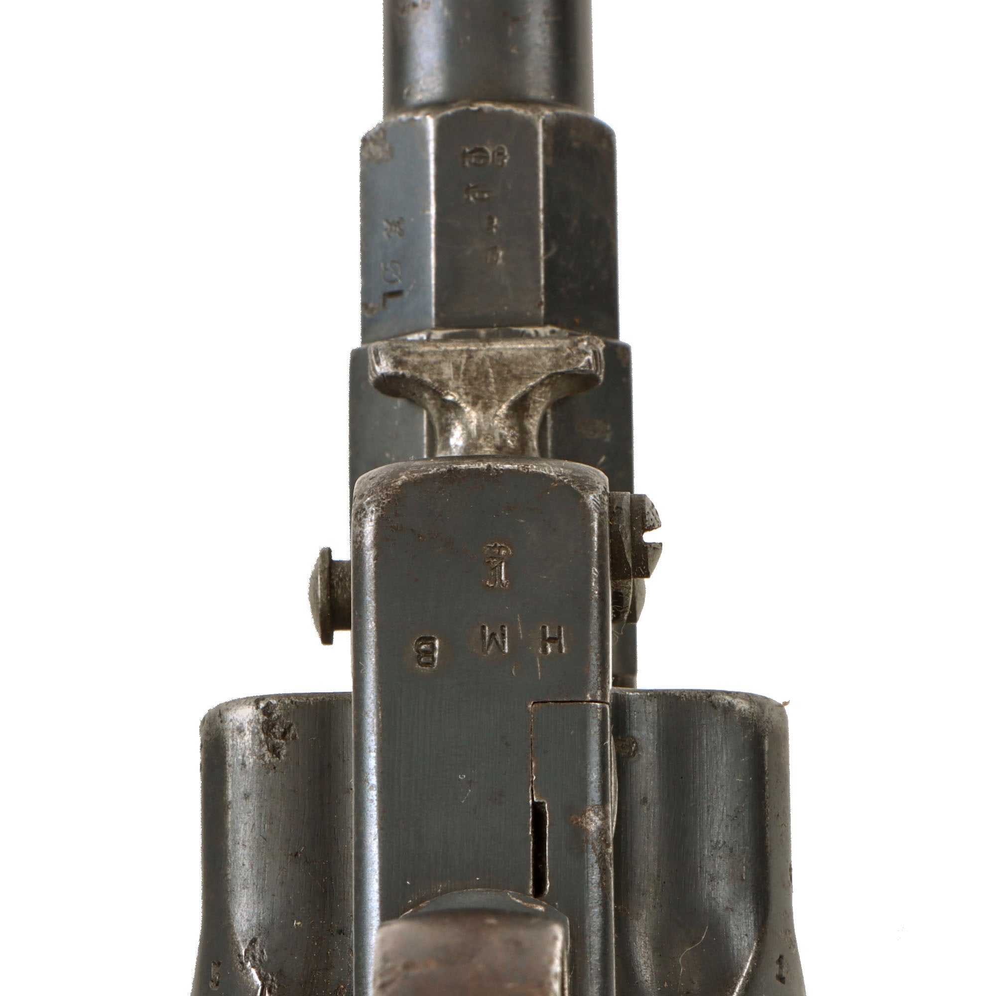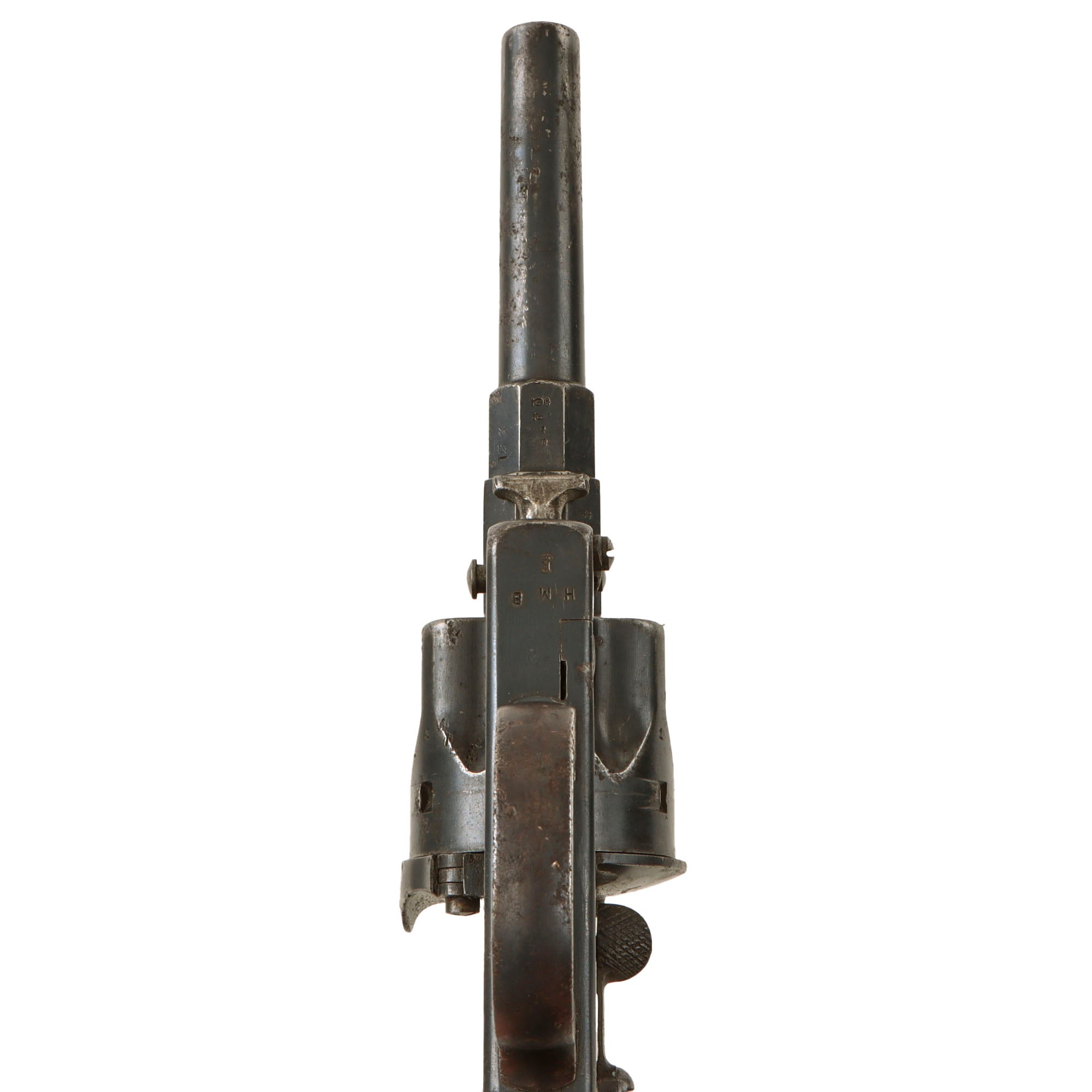 Original Item: Only One Available. This is one of the great romantic era Imperial German Army Revolvers! The M1879 and M1883 Reichsrevolvers, or Reichs-Commissions-Revolver Modell 1879 and 1883, were service revolvers used by the German Army from 1879 to 1908, when they were superseded by the Luger. The Model of 1879 was issued with a 7" 10.6mm x 25R mm Barrel, which sported a rather fancy ring to the muzzle. In 1883 they introduced a shorter barrel version that had only a 5" barrel, the M1883. Although the design was dated, the weapon was extremely robust, and they were still used through World War I. The M1879 is referred to as the "cavalry model" and the M1883 as the "officer's model," by collectors, which were not official designations.