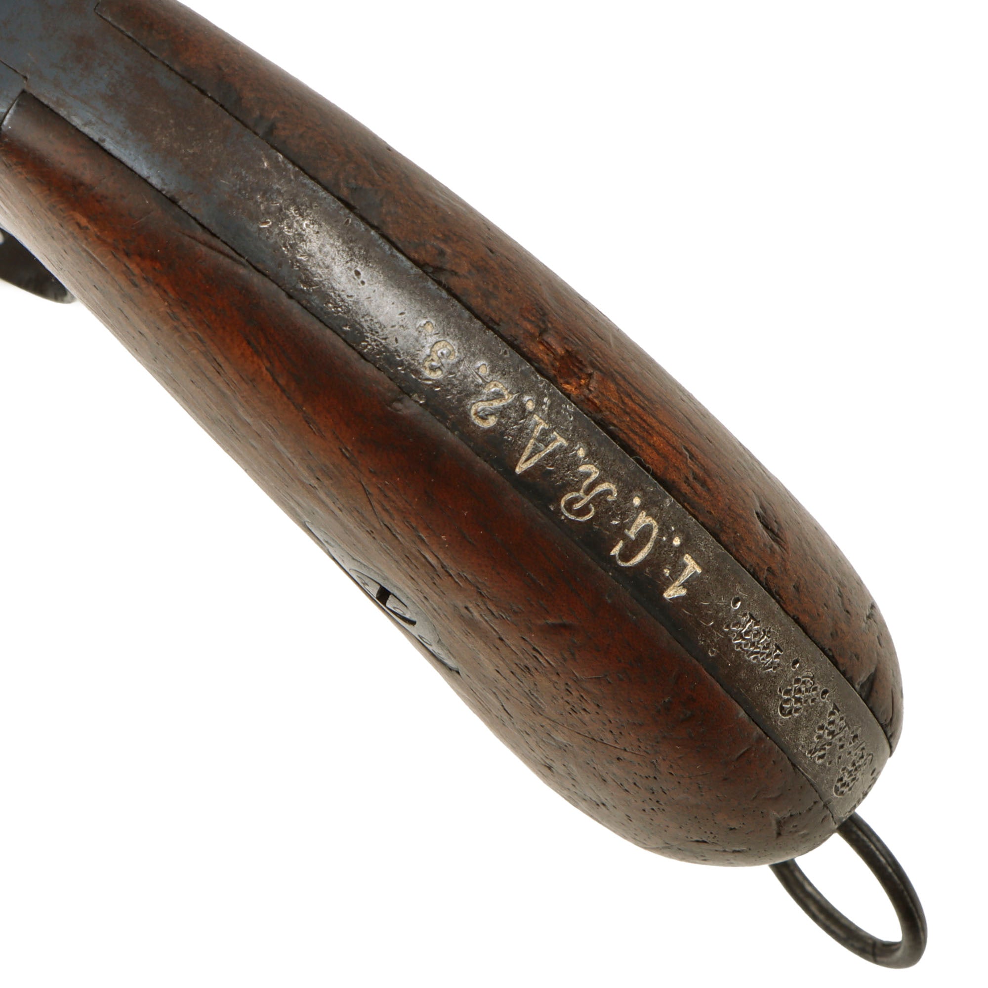 These antique guns are not sold in "live" condition, and are not tested for the the ability to feed or load any type of cartridge. They are sold as collector's items or as "wall hangers" not for use, and we make no guarantees regarding functionality aside from what is stated in the description. Any attempt at restoring an antique gun to be operational is strongly discouraged and is done so at the risk of the customer. By purchasing an antique gun from IMA you thereby release IMA, its employees and corporate officers from any and all liability associated with use of our Antique guns.