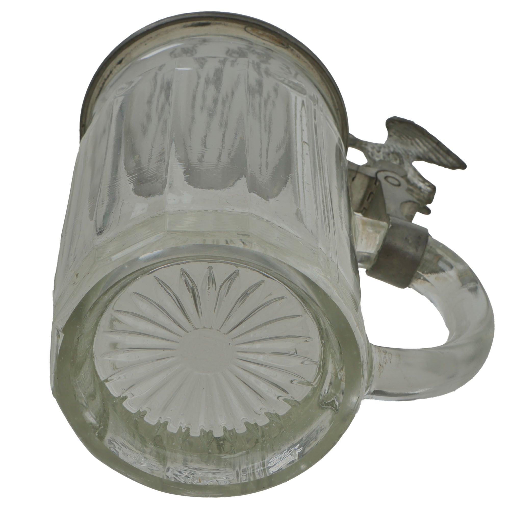 There is no maker mark on the bottom of the stein, however that is not uncommon. The lid is in great shape, and the joint with the hinge is still solid. The hinge has a great Imperial eagle perched upon it.