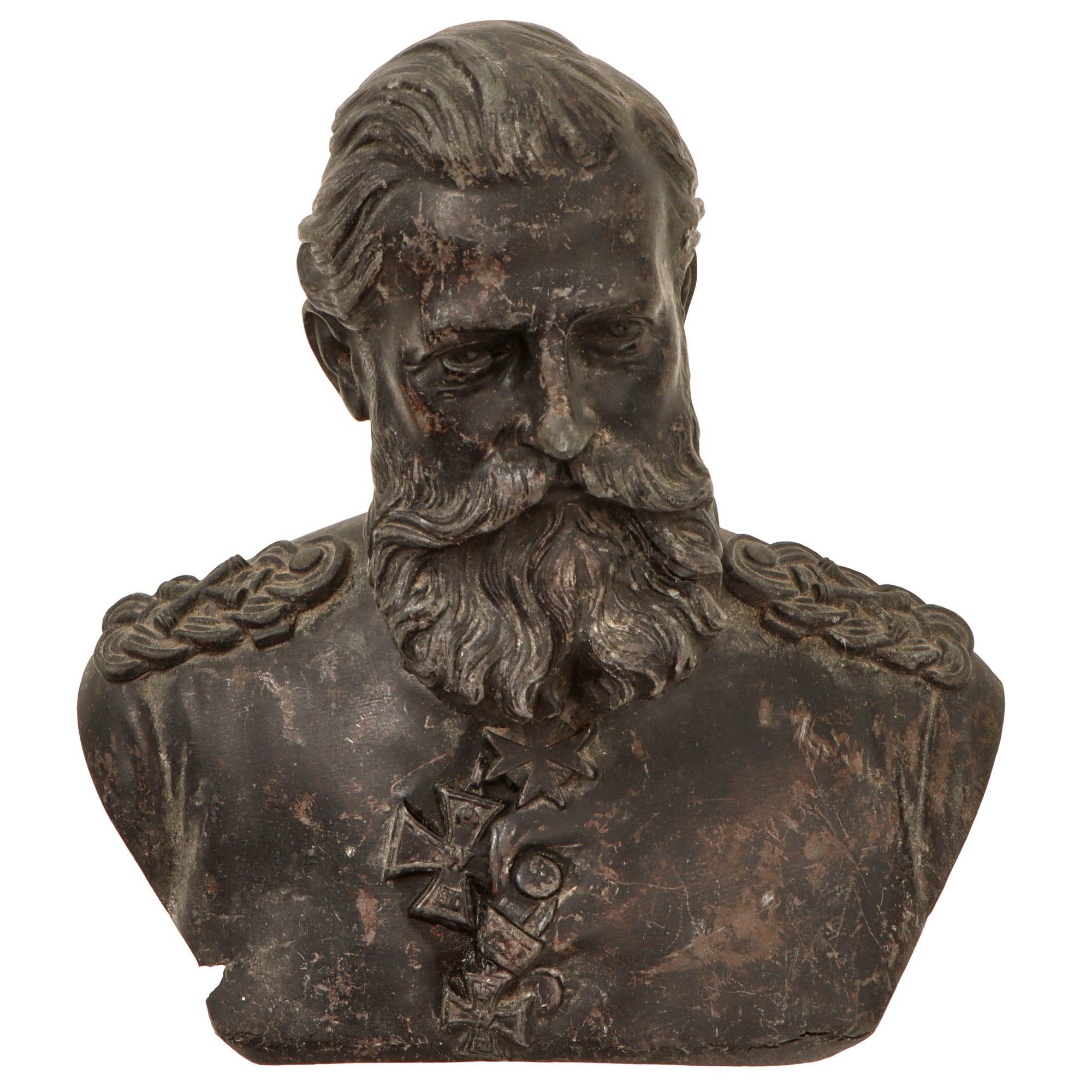 Original Imperial German Pre-WWI Frederick III German Emperor Bronze Bust - Numbered 1563 - 6 3/8” Tall