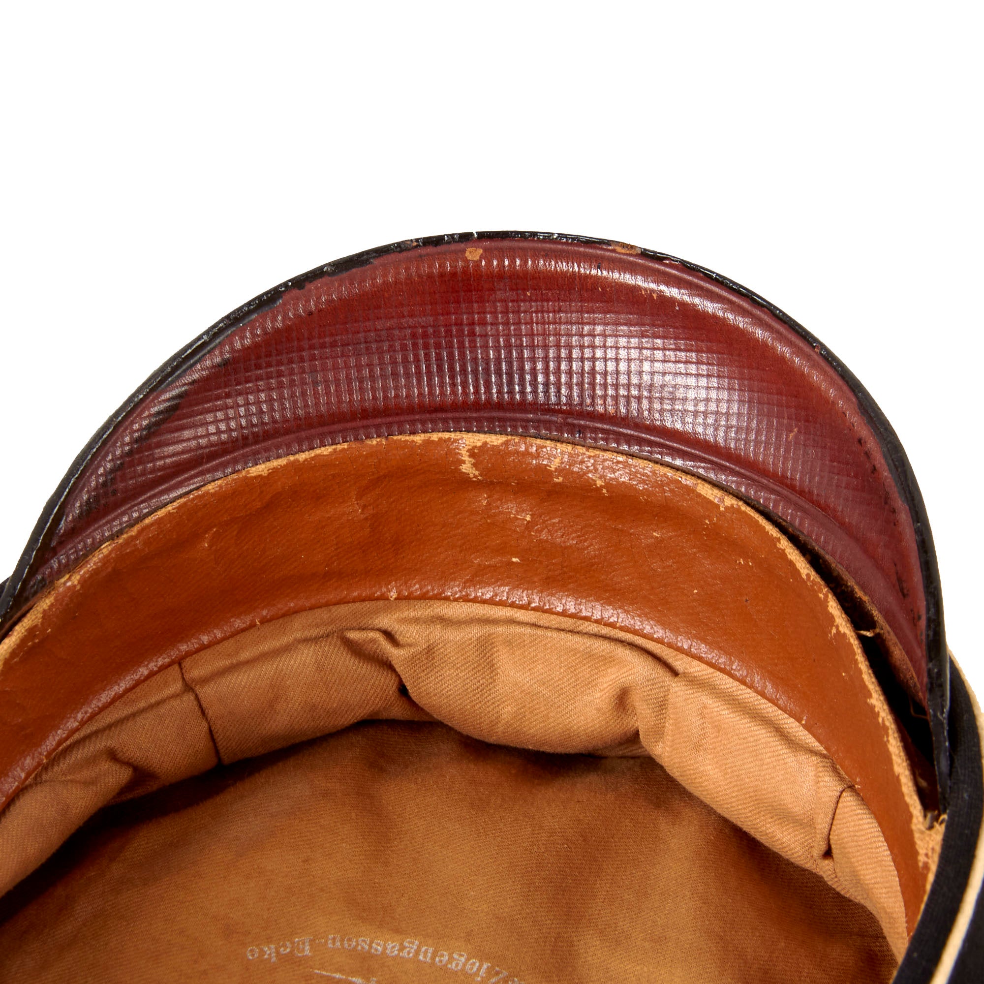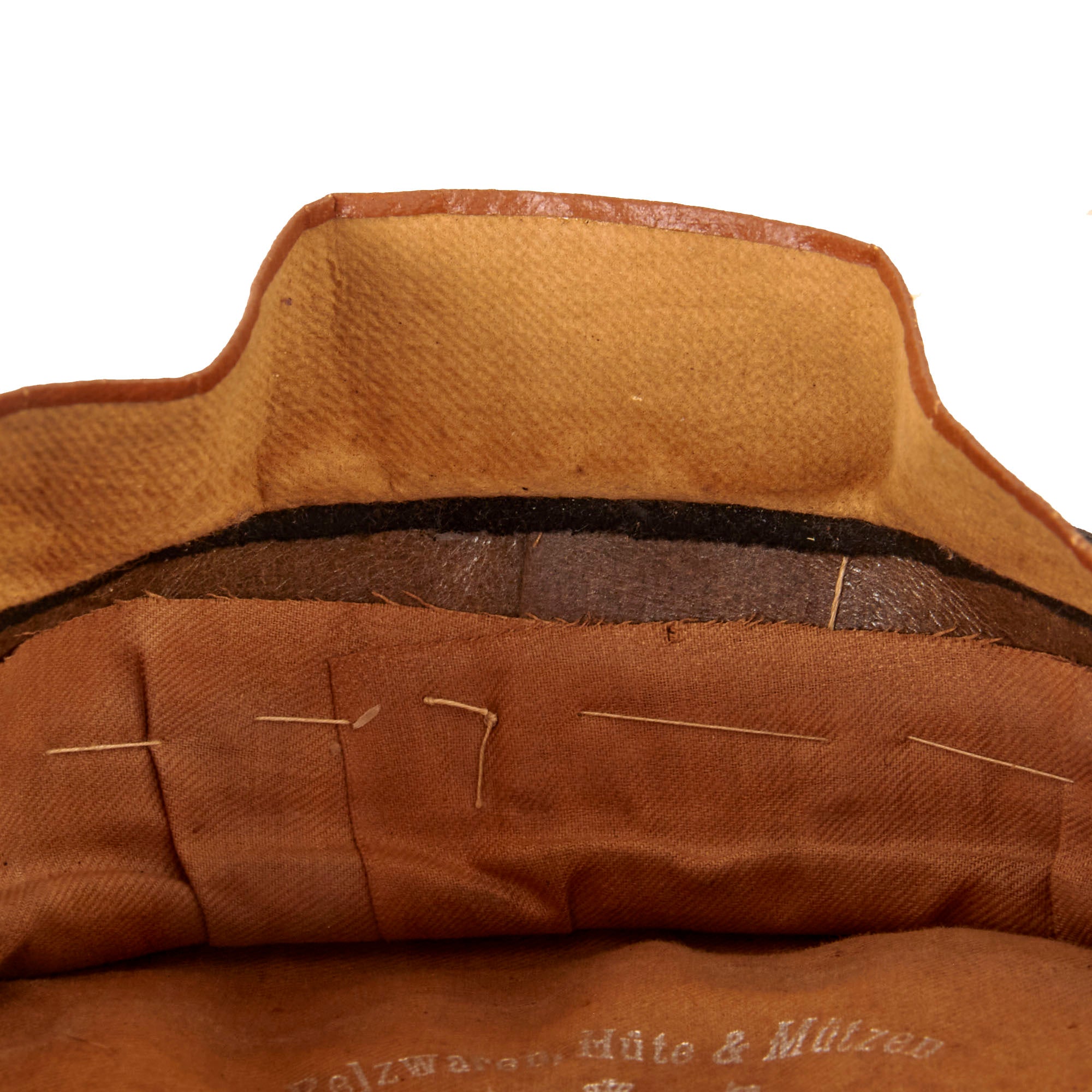 The interior is lined with tan cotton material, and retains a large maker’s marking: