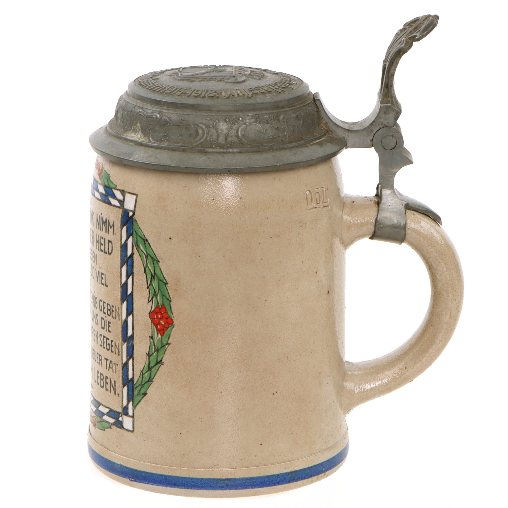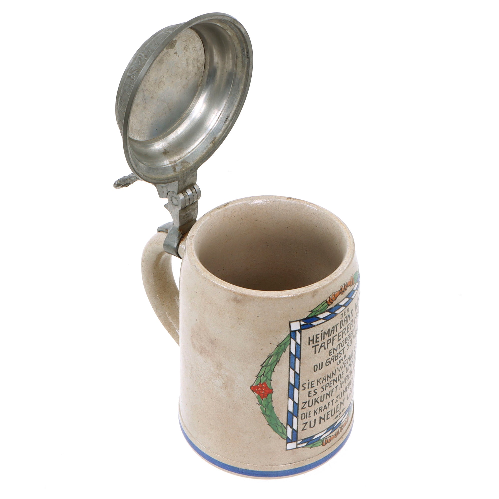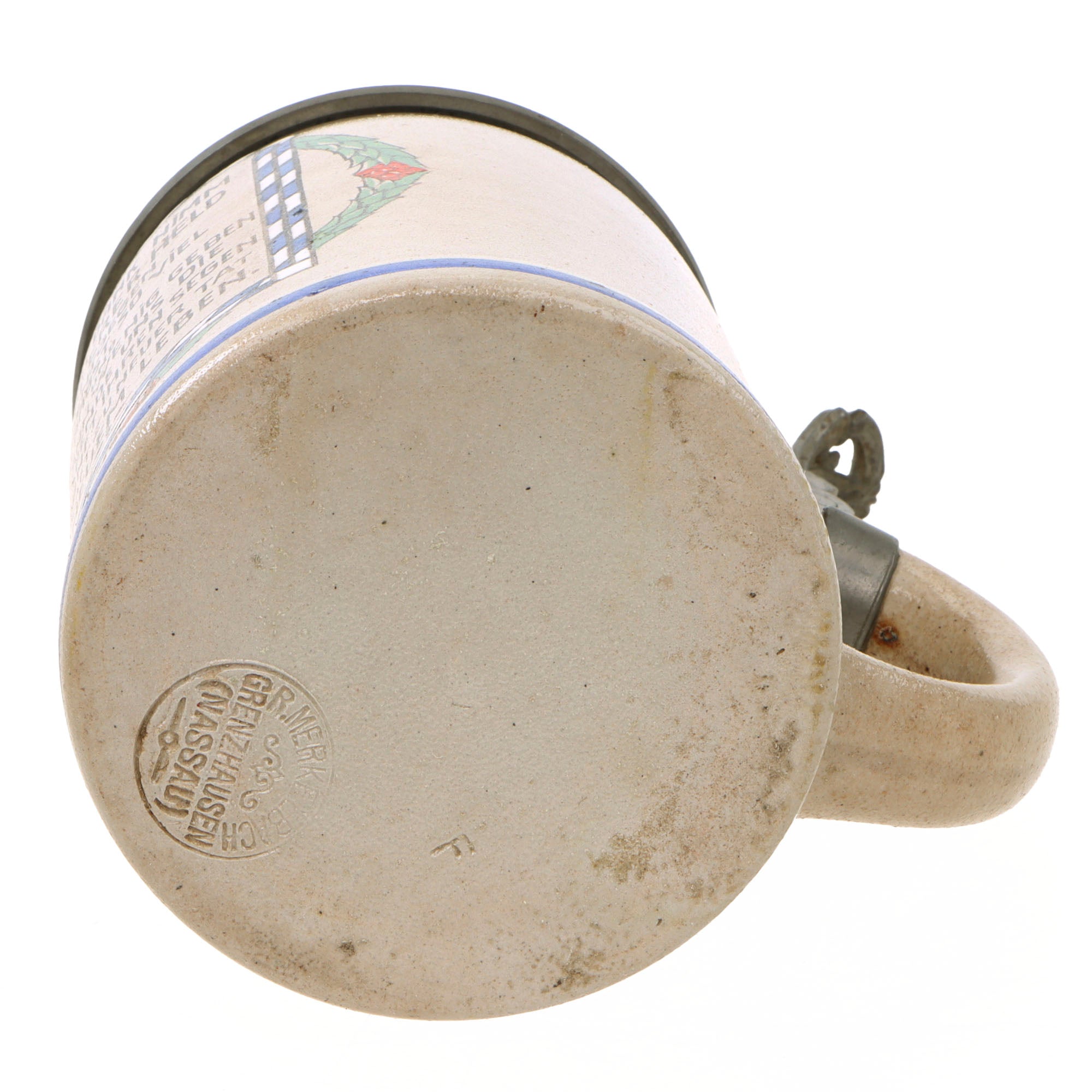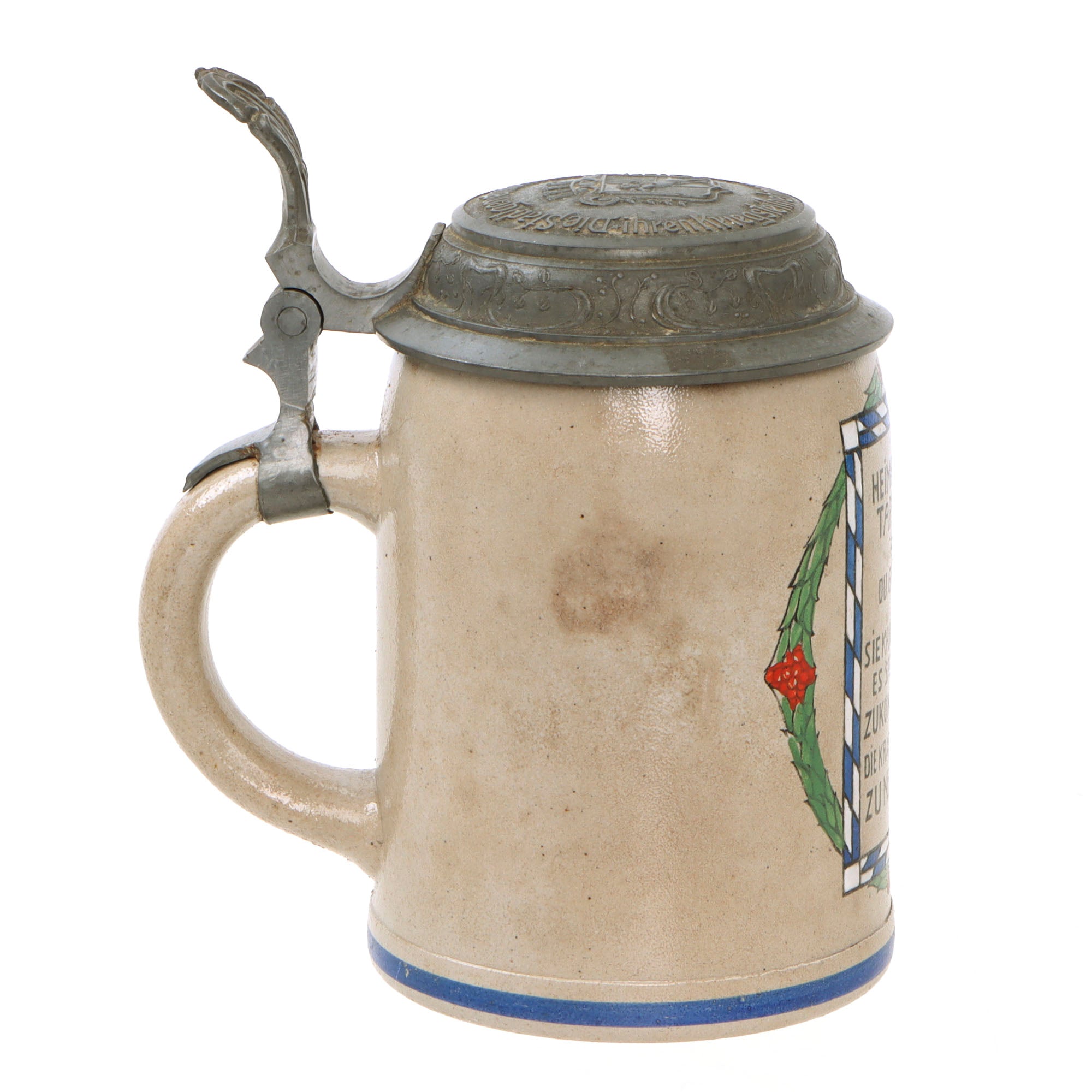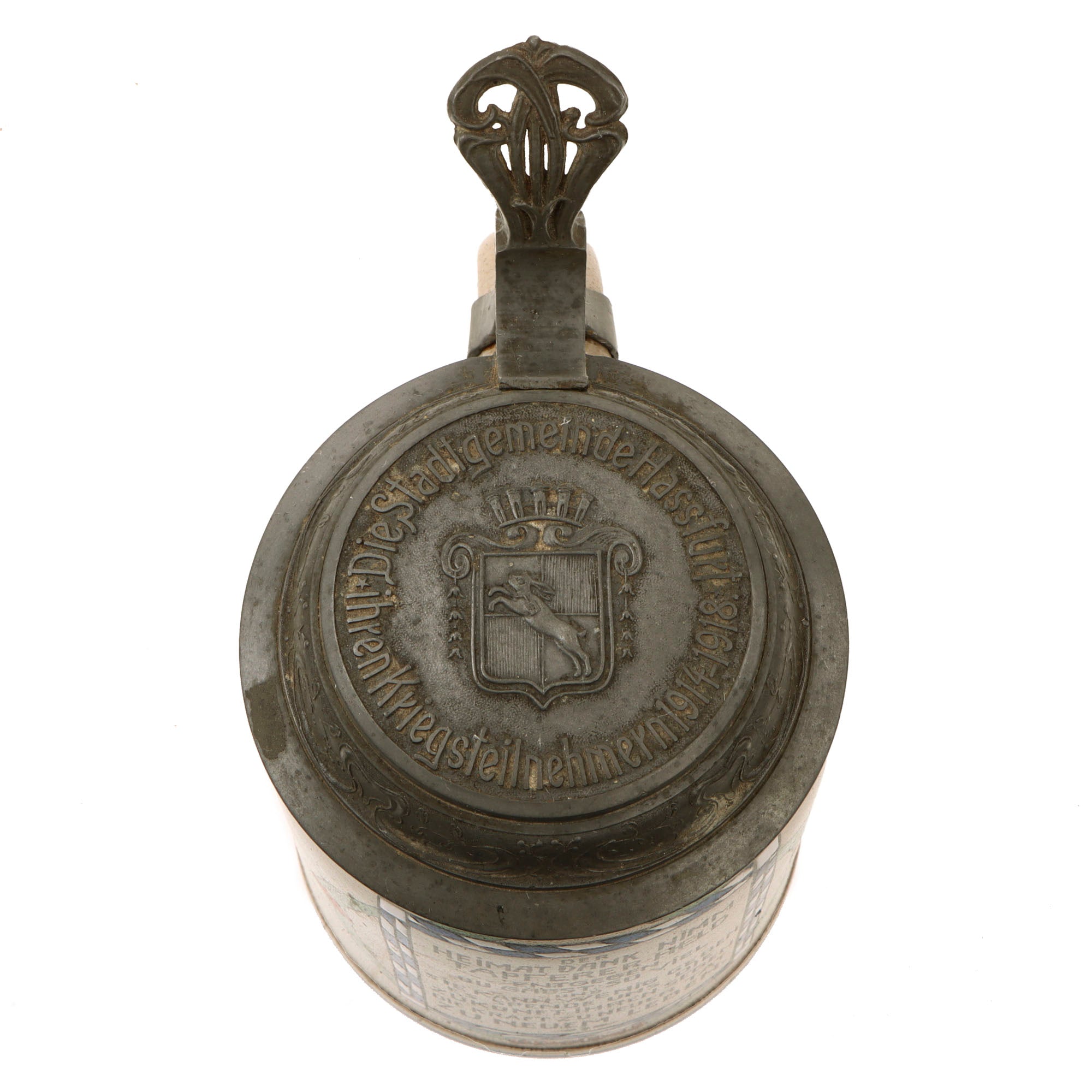 Original Imperial German WWI Hassfurt Municipality Soldier Lidded Beer Stein with Maker’s Mark