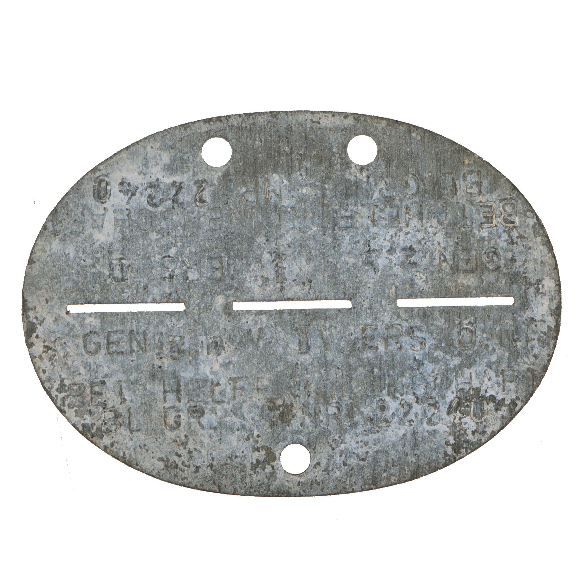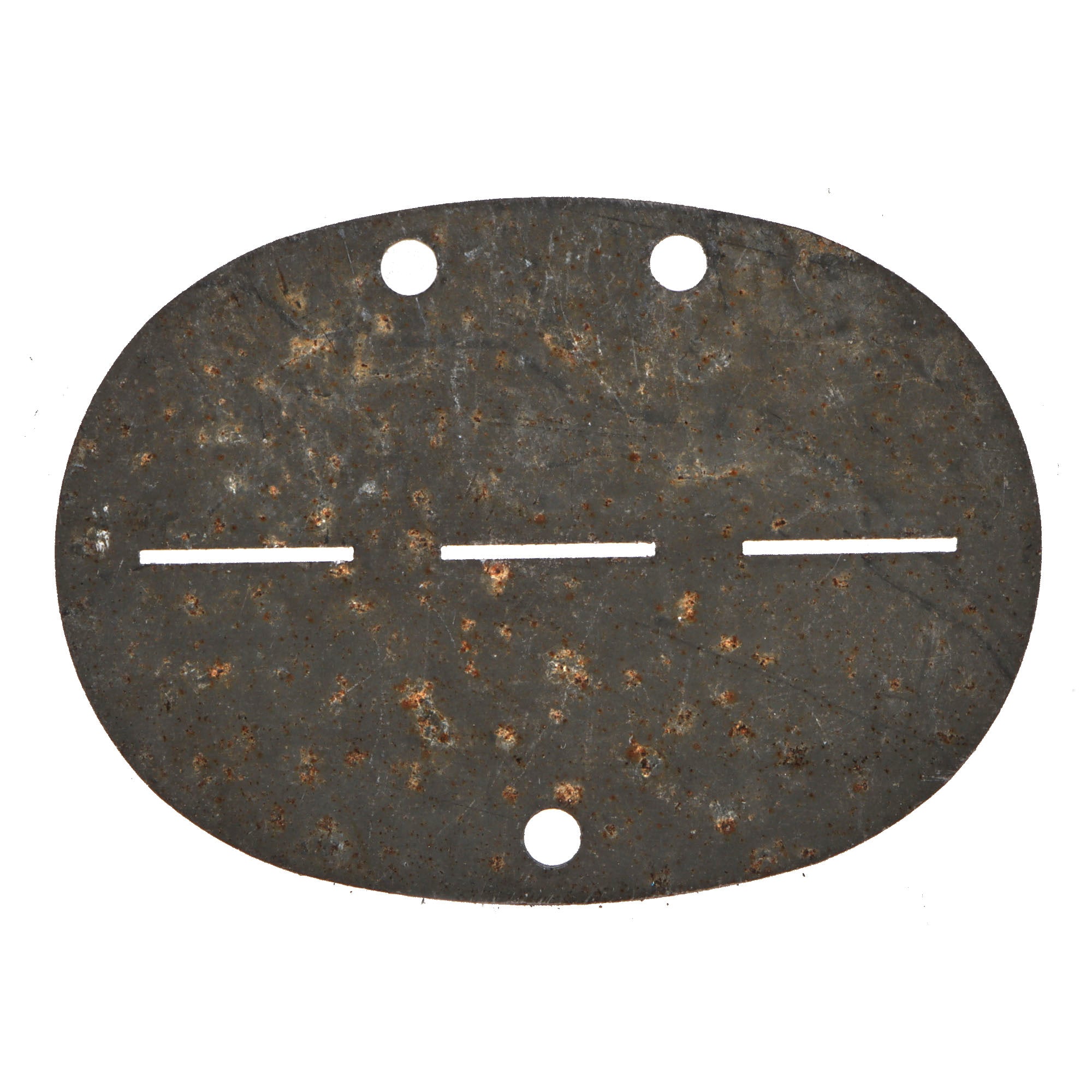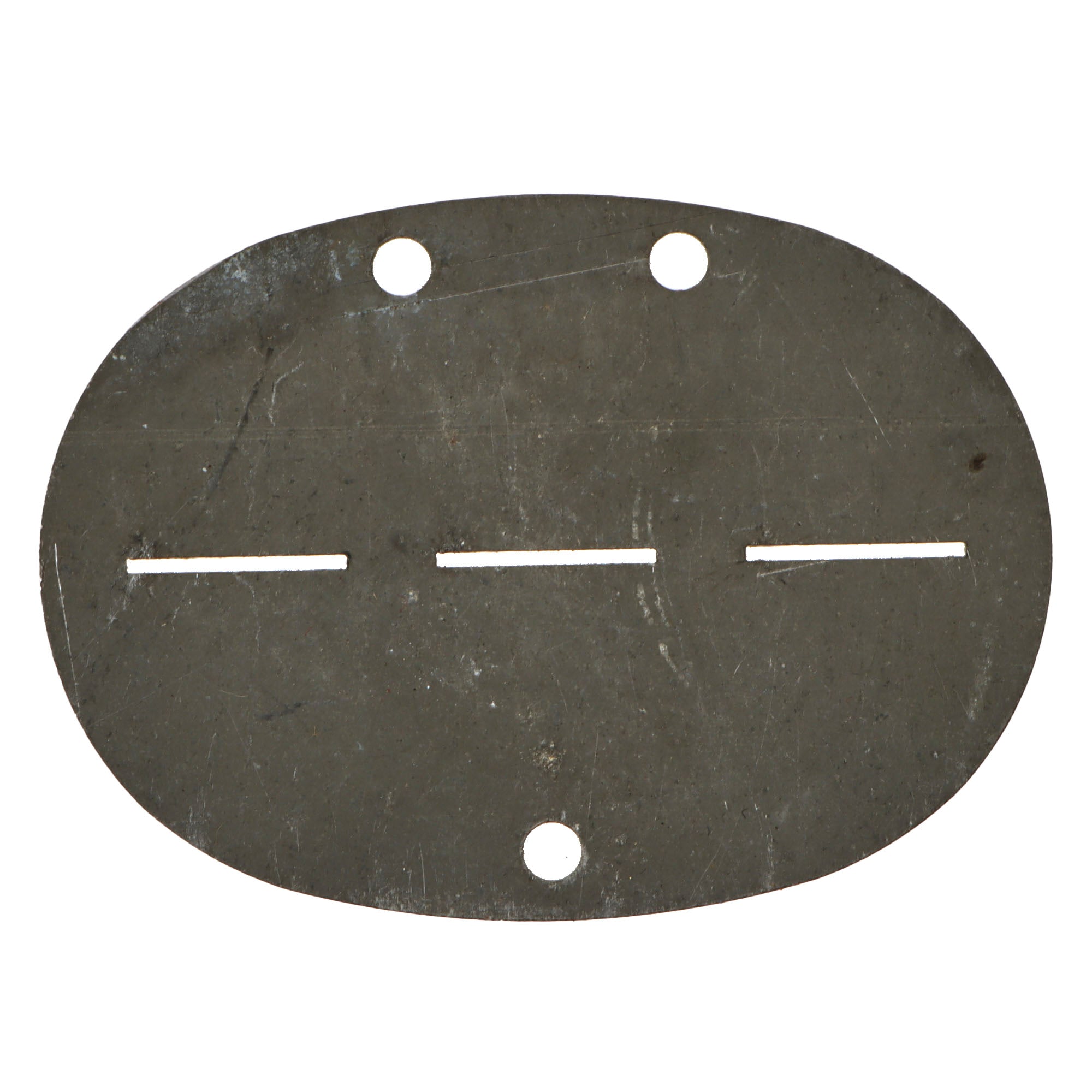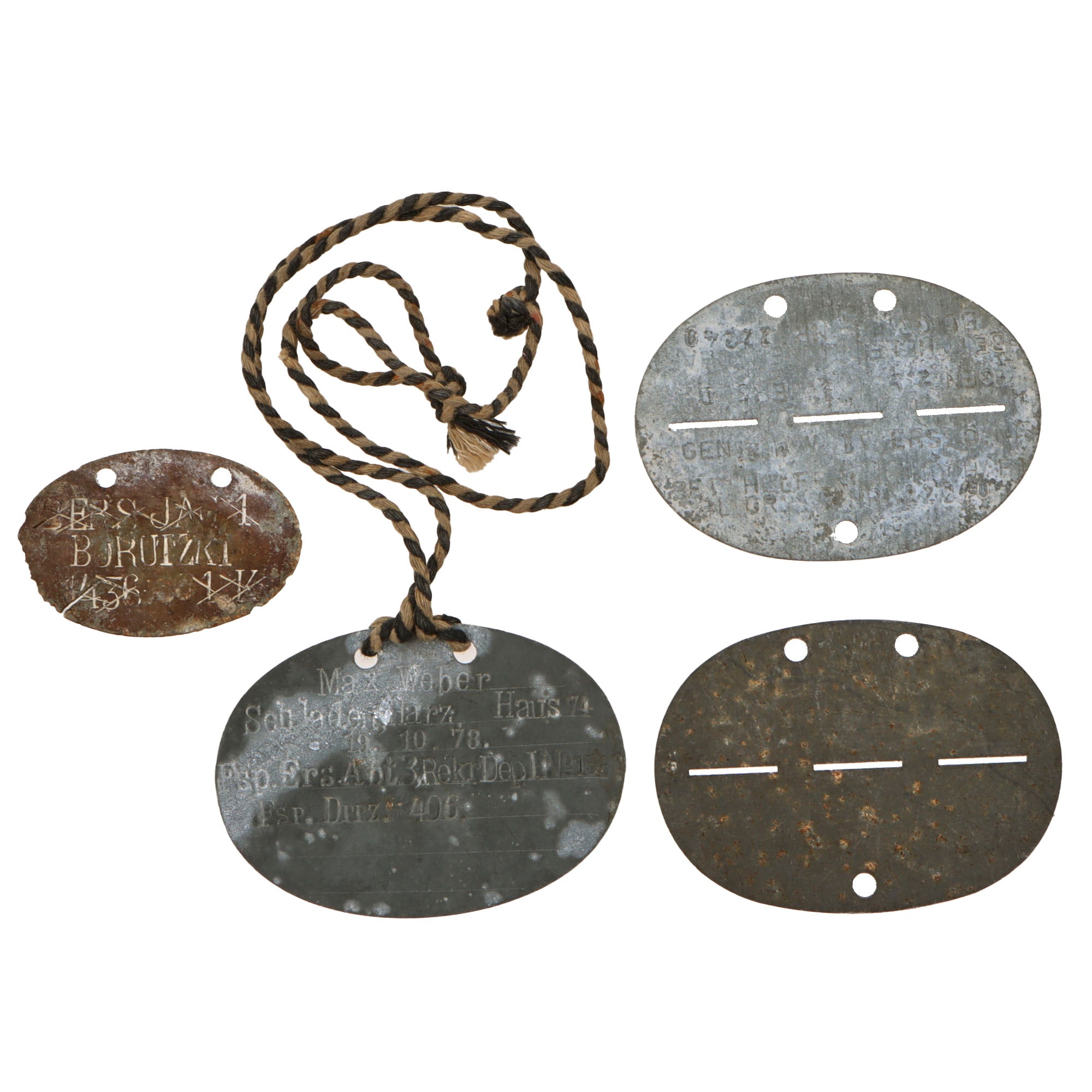 Original Items: Only One Lot of 4 Available. This is a wonderful opportunity to add (4) crucial items to a soldier's kit, the dog tag also known as an identity disc. All 4 are in good condition with their respective stamping/markings still identifiable on three of them, while the fourth is a blank example. No collection is complete without a few of these and they make for wonderful research projects!