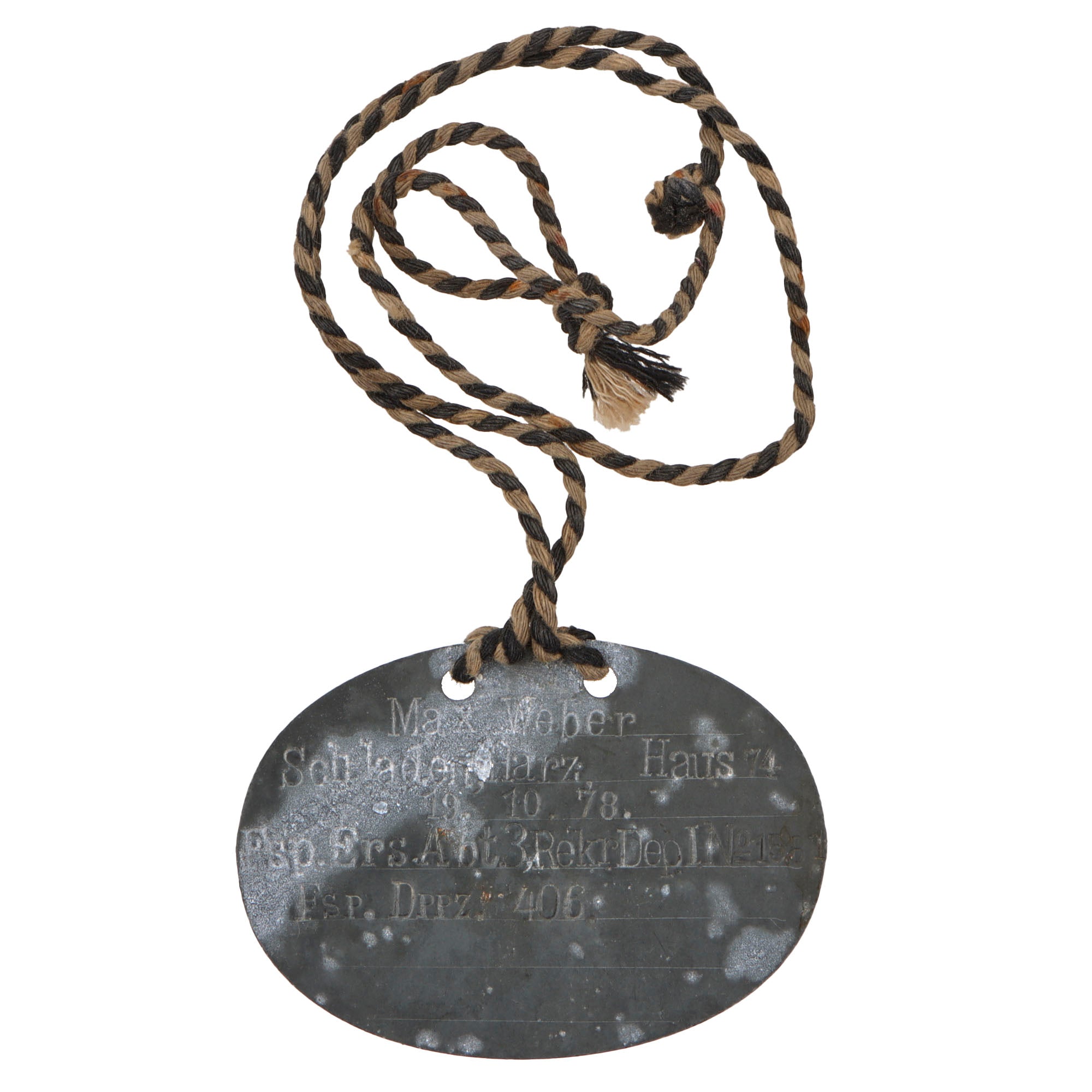 The best of this lot is the tag with the original Prussian white & black braided neck cord named to a Max Weber!