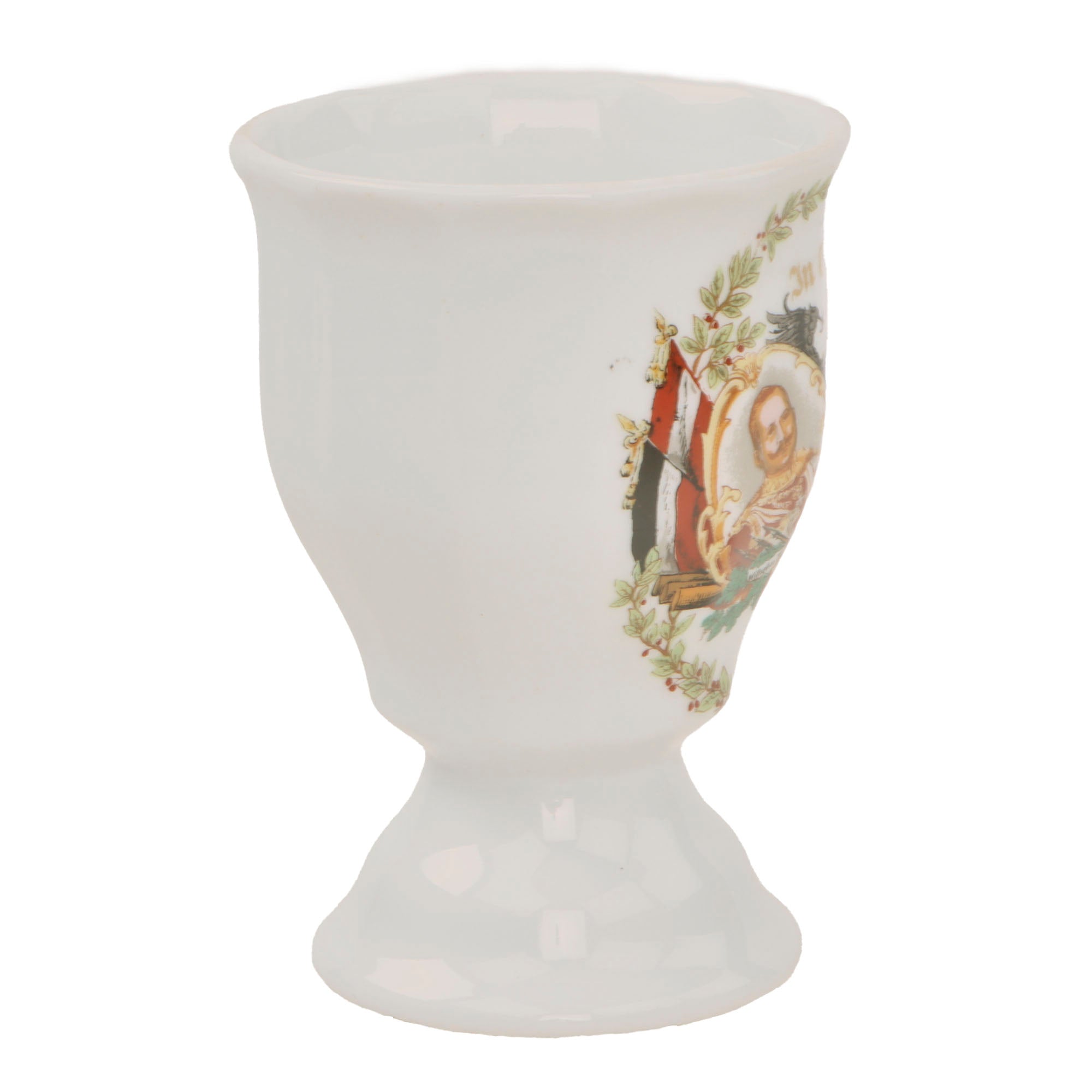 Original Item. Only One Available. This is a lovely WWI-manufactured porcelain goblet bearing a glorious motif of Kaiser Wilhelm II of Germany and Franz Josef I of Austria Hungary showing the unity between the two empires in the World War.