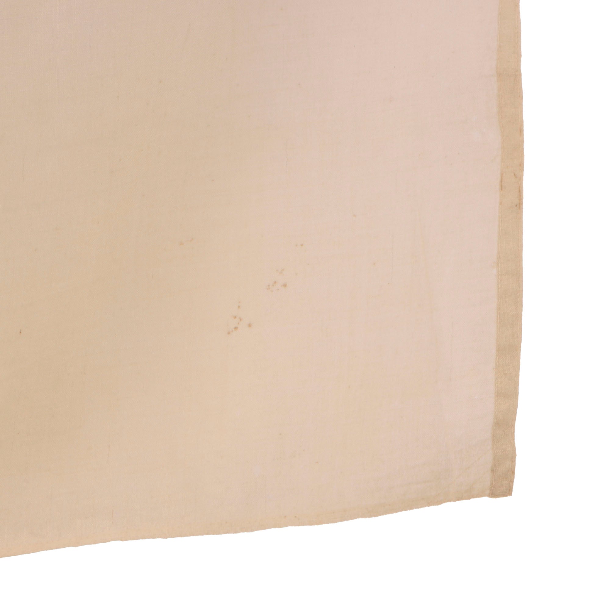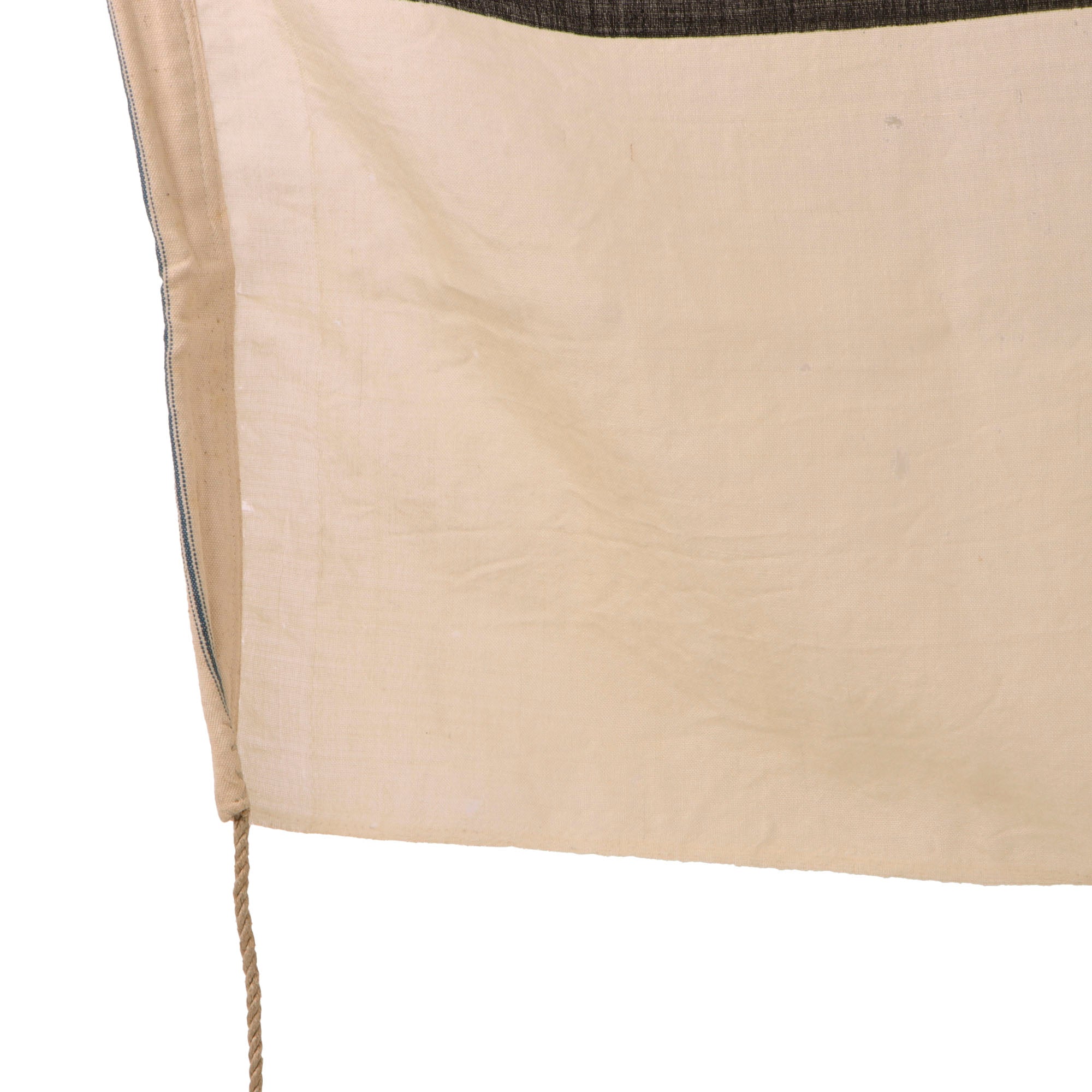 The flag measures 37" tall and 59" across, one of the larger sizes used. The flag header is canvas, unmarked and with a rope halyard to both sides. Based on the size of the flag, it was most likely for a sizable ship, though it is not big enough for a capital ship. Those were so large that they are quite hard to display indoors.