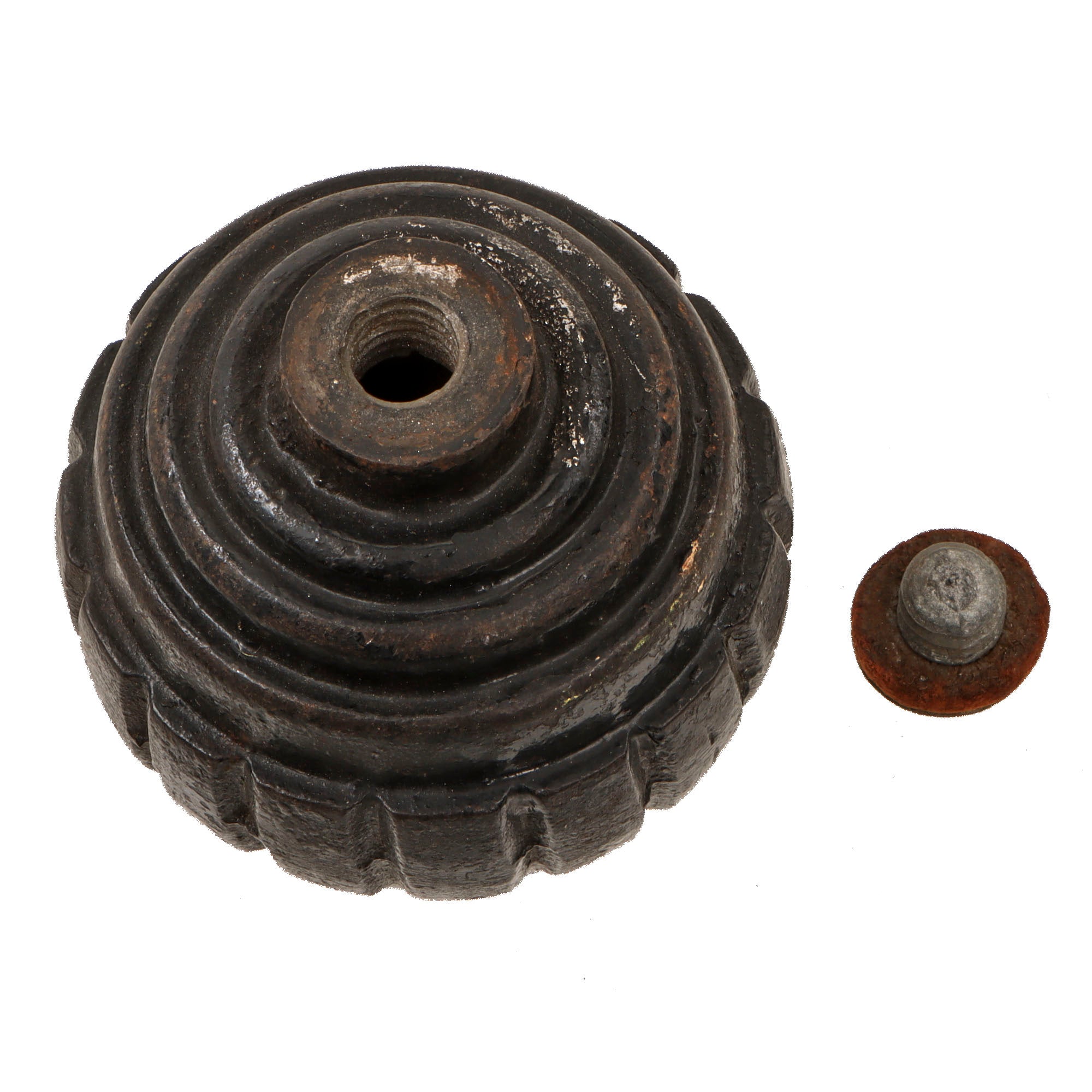 As they were not made in any large quantities, German Ball Grenades are rare in any condition. This example is quite nice, and appears to retain the original paint. It features an original zinc transit plug without fuse assembly. A great example.