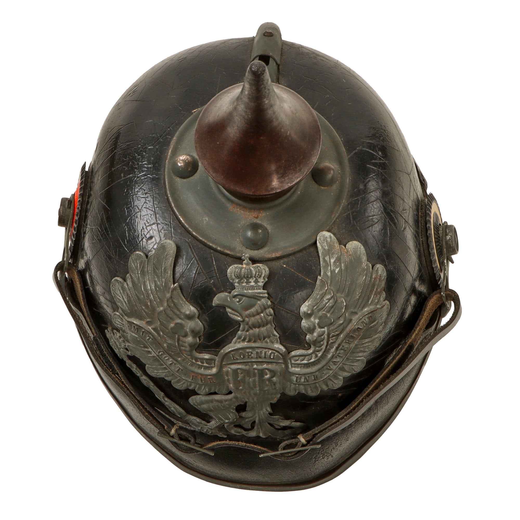 Original Imperial German WWI Prussian Unit-Marked EM/NCO Infantry M1915 Pickelhaube Spiked Helmet Dated 1916 with Reproduction Fittings - 21st Pionierbataillon “Combat Engineer” Size 56