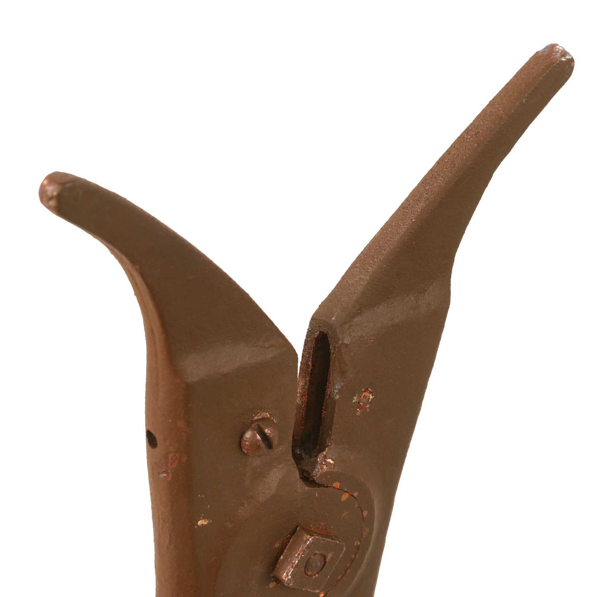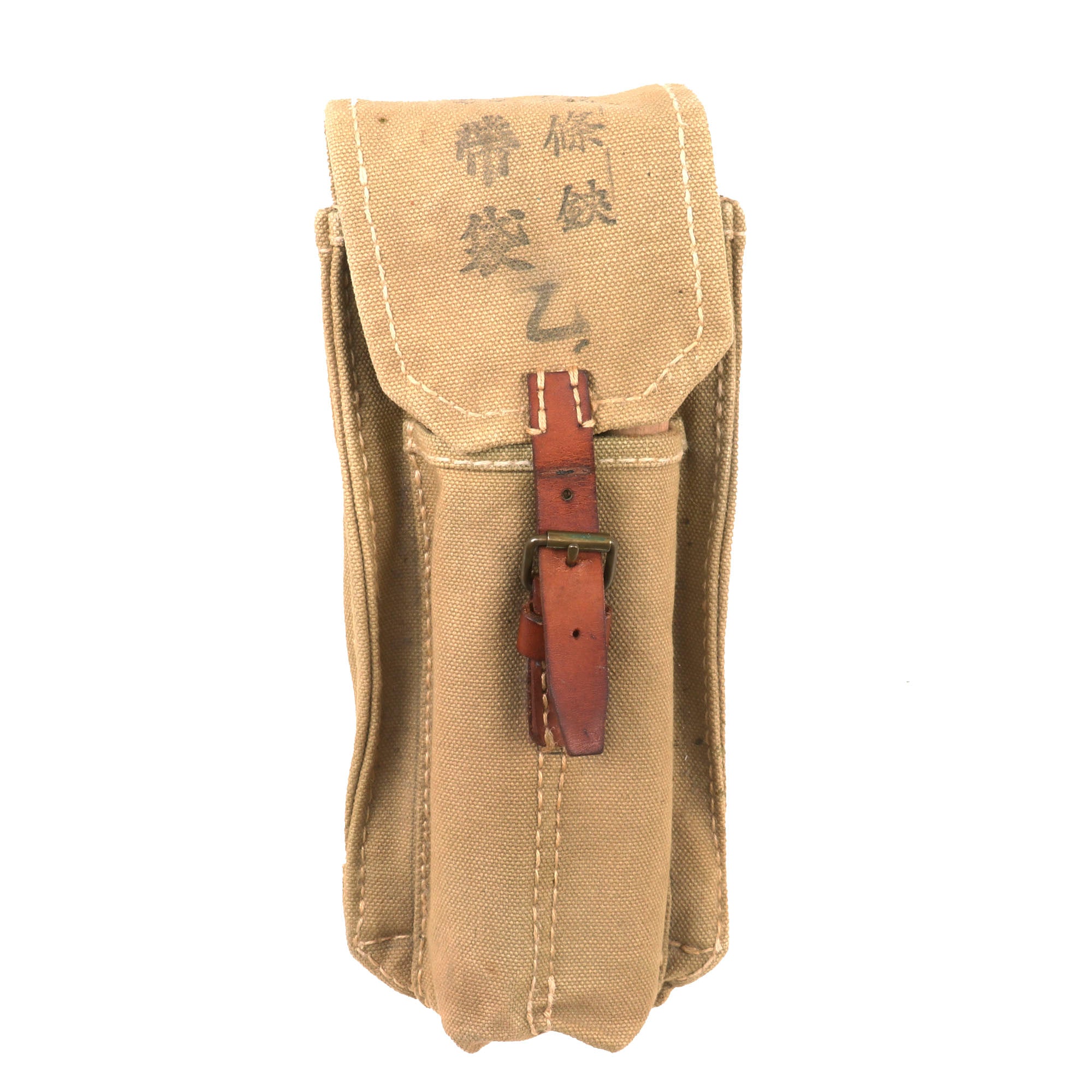 The wire cutters come complete in their original case, which is in great condition with the original leather strap and buckle intact! There are several kanji characters on the front flap, but due to the wear we are unable to translate them properly. Under the flap is what appears to be a Japanese maker’s marking. There is no spare cutter blade in the pouch, but the spot for one is there.
