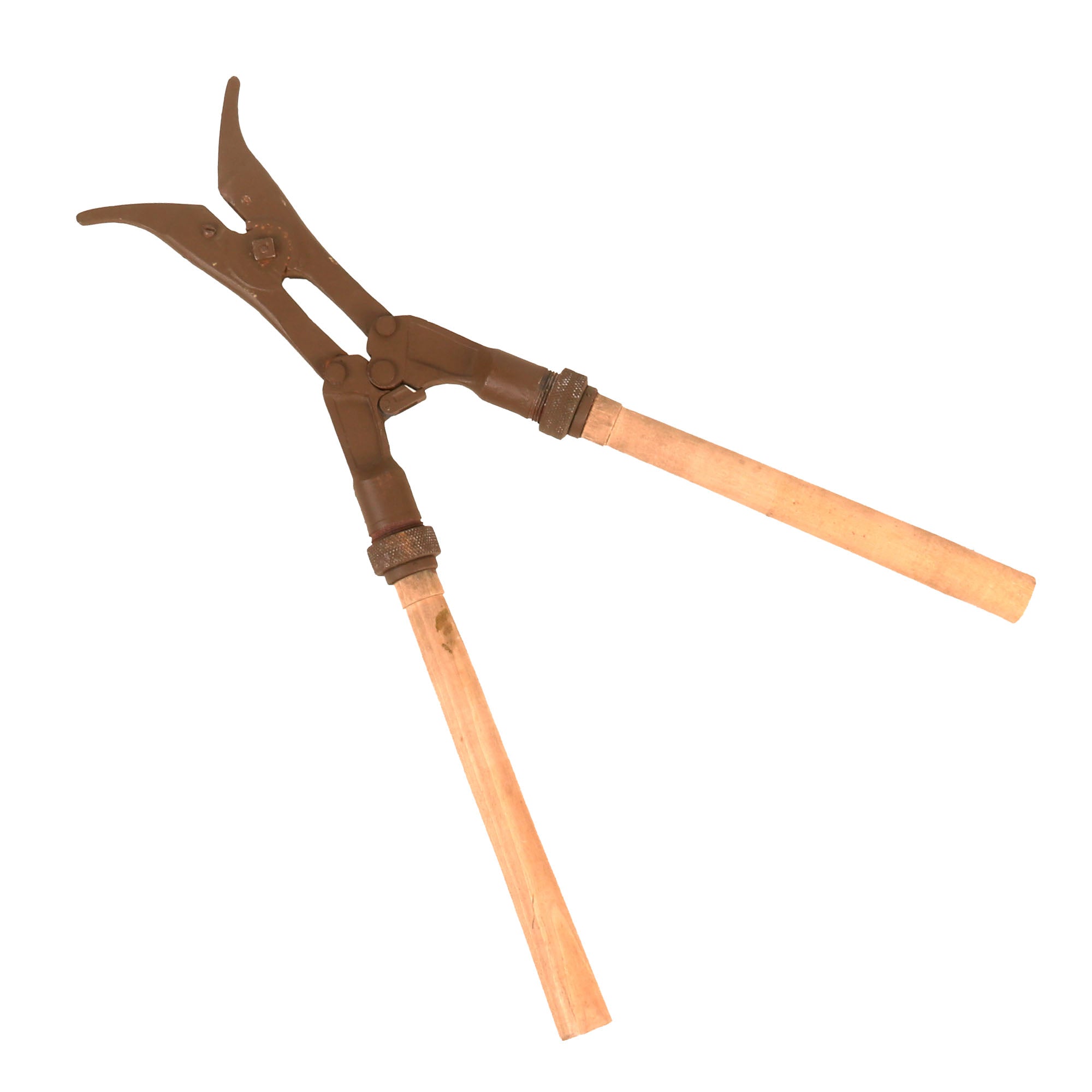 Original Item: Only One Available. This is a very nice pair of Japanese IJA wire cutters with detachable handles, complete in their original marked case. The wire cutters measure 18 inches overall, with removable 9 1/2 inch hard wood handles. The metal portions are painted the standard Japanese ordnance tan. We could find no markings on the handles or cutters themselves.