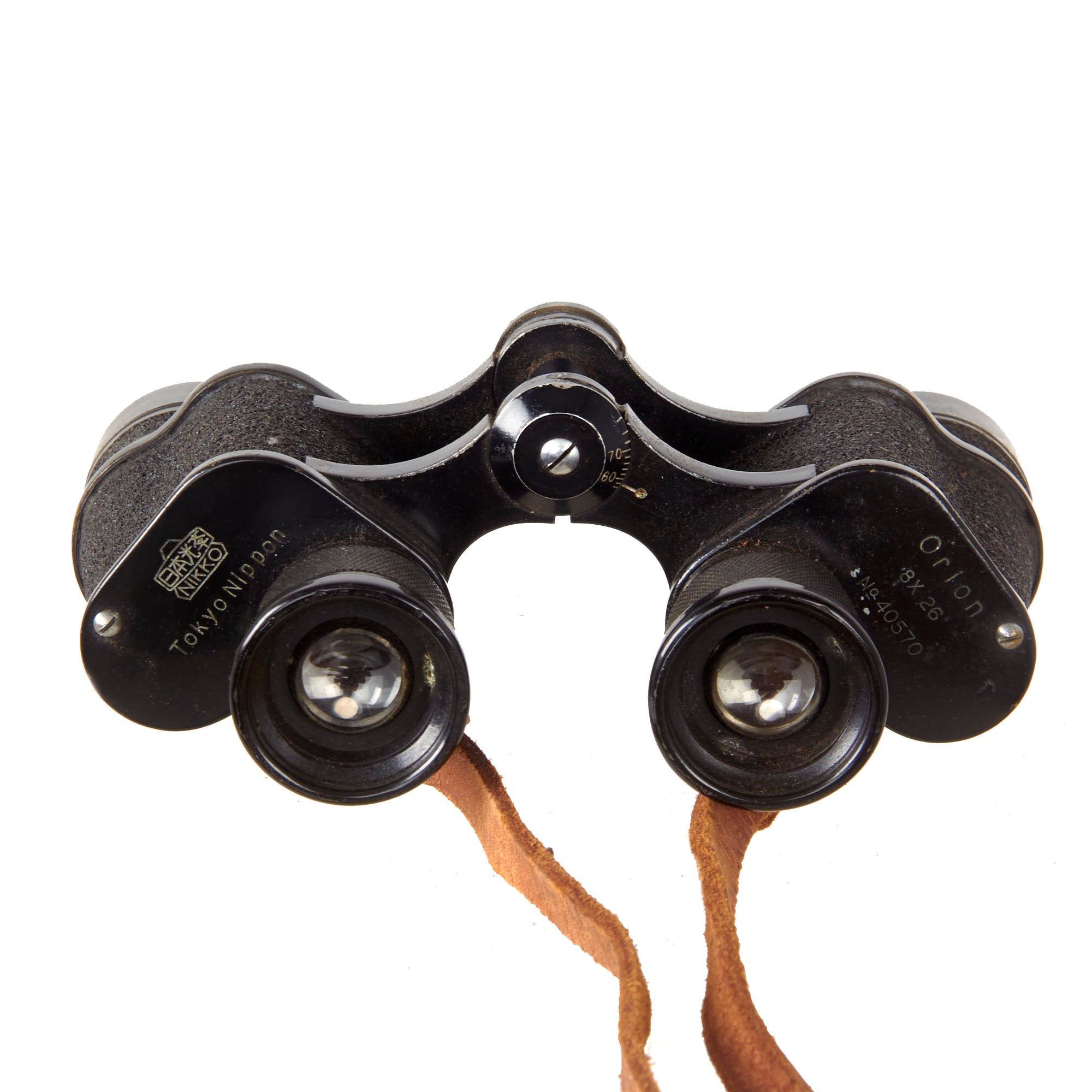 Original Item. Only One Available. These are WW2 issue Japanese army officer binoculars in their original tropical carry case, offered in great condition. The binoculars are fully functional, with each side having an independent focus control. Optics are mostly clear, and able to focus accurately. These bear a manufacturer's logo for Nikko, Tokyo Nippon and serial number No. 40570. Overall condition is very good. The neck strap for the binoculars is leather and is in very good condition with crazing to the leather.