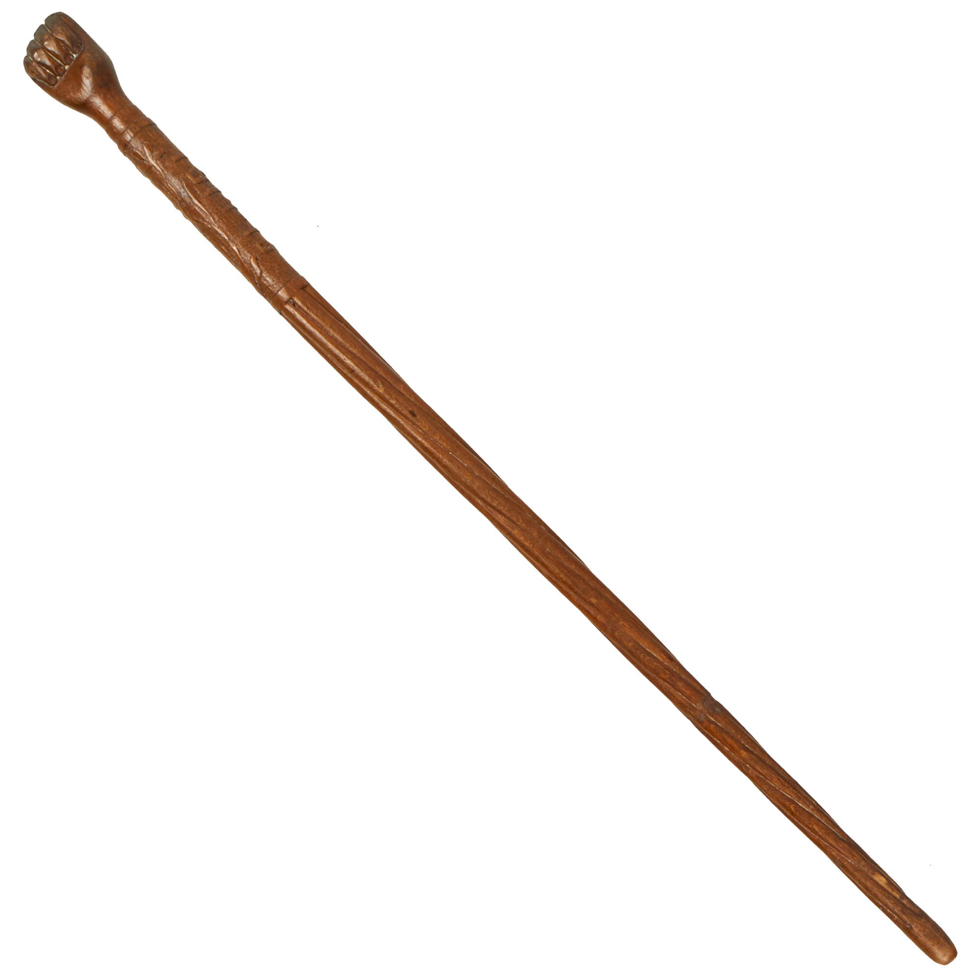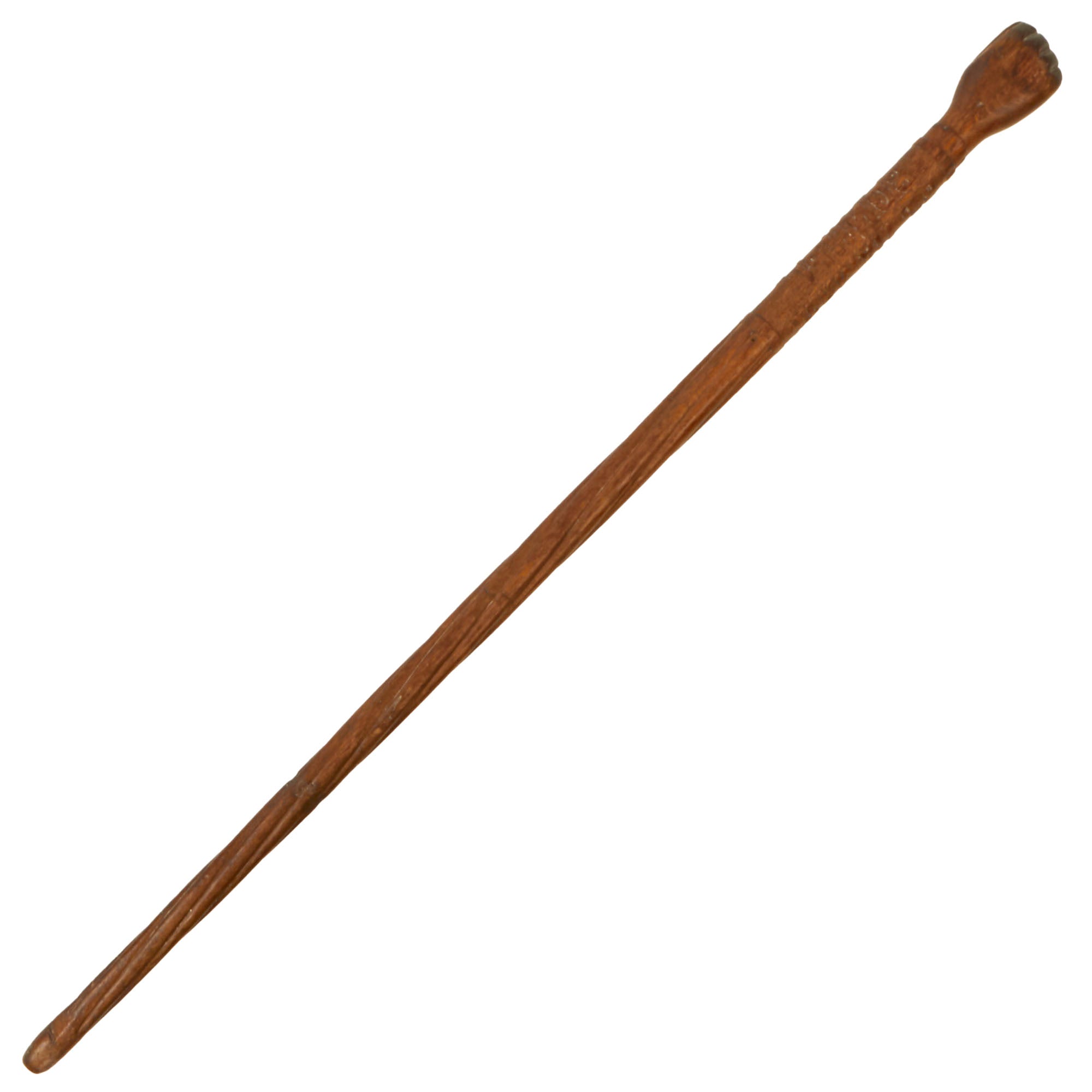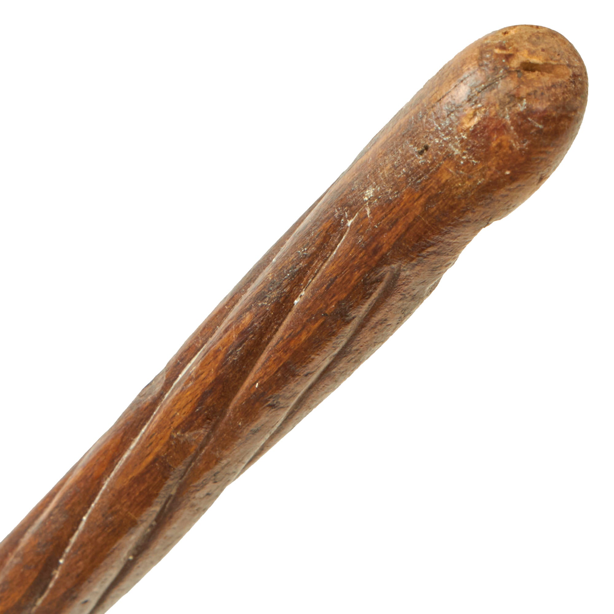 The swagger stick measures 28¾” long and shows heavy service-use, with one large crack in the wood about 8” from the bottom, but it doesn’t affect the structural integrity of the entire piece. This is a really phenomenal piece of Russian trench art from the year after the Battle of Galicia which the Russians won, only to be defeated months later in 1915 during the Gorlice–Tarnów offensive, being pushed back into mainland Russia.