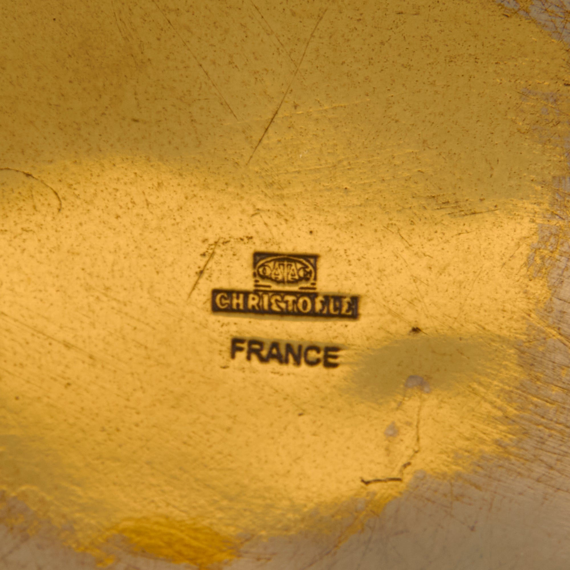The bottom edge of the tray has Christofle's stamping and hallmarks, which read: