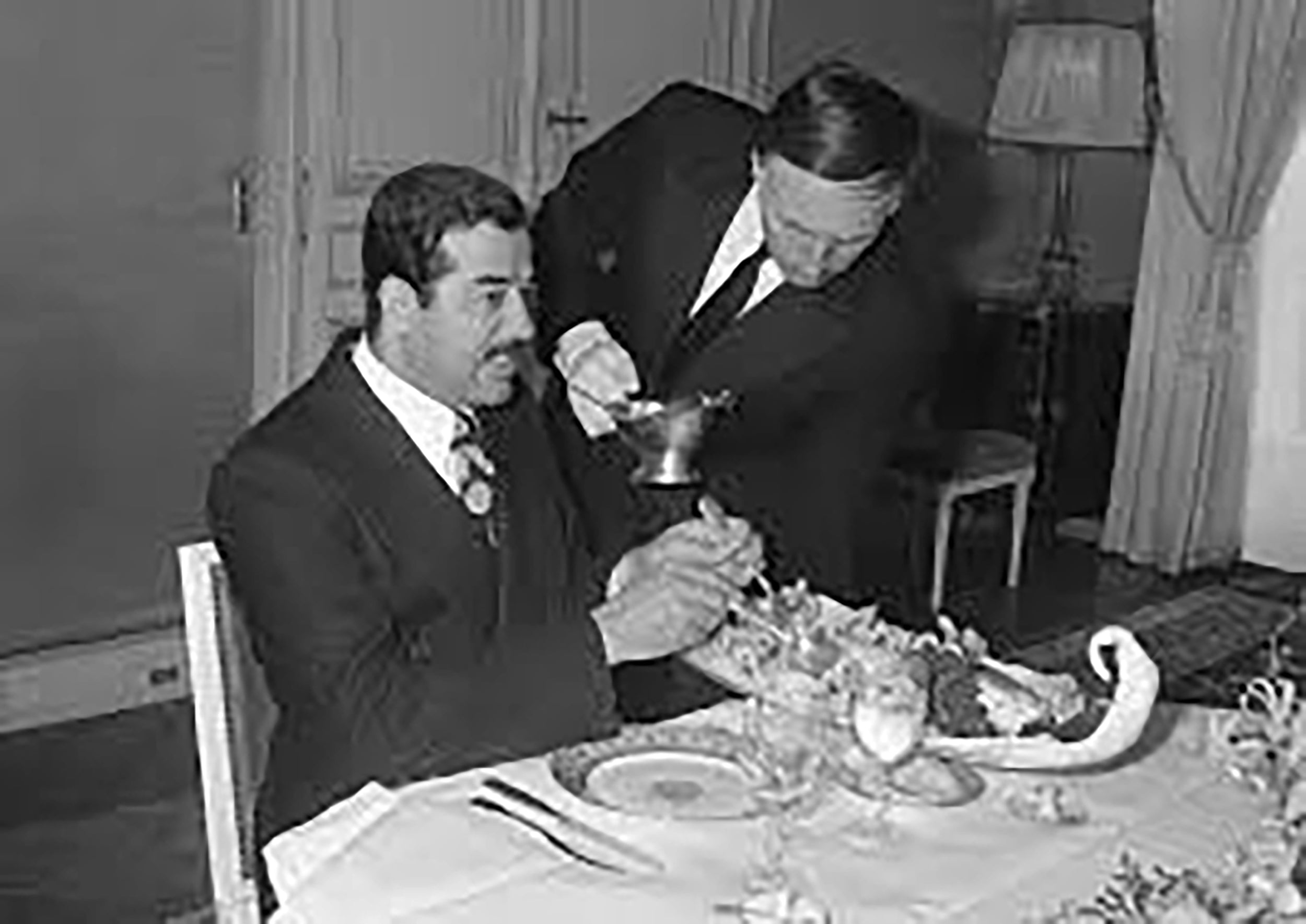 • Original Item: Only One Available. During the invasion of Iraq in 2003, U.S. soldiers captured and occupied Saddam Hussein's palaces. Much of the State Silver was taken by soldiers as "spoils of war" and brought back to the United States. However, some of it remained in Iraq, some was later returned, and those pieces were auctioned off by the Iraqi government many years later.