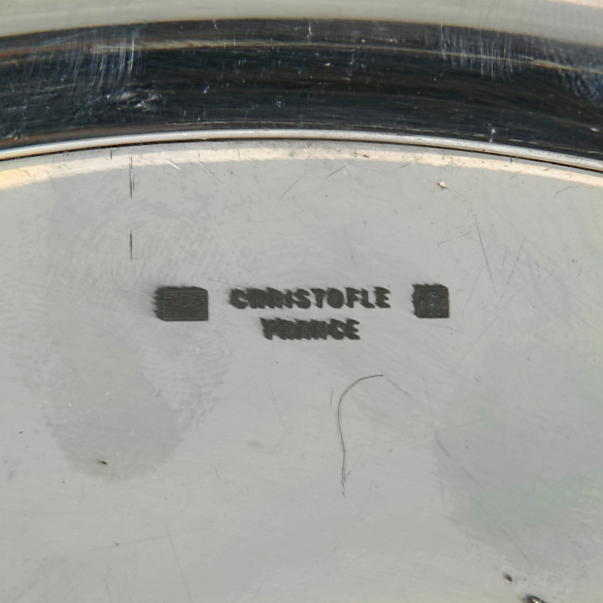 The bottom underside of the tray has Christofle's stamping and hallmarks, which read: